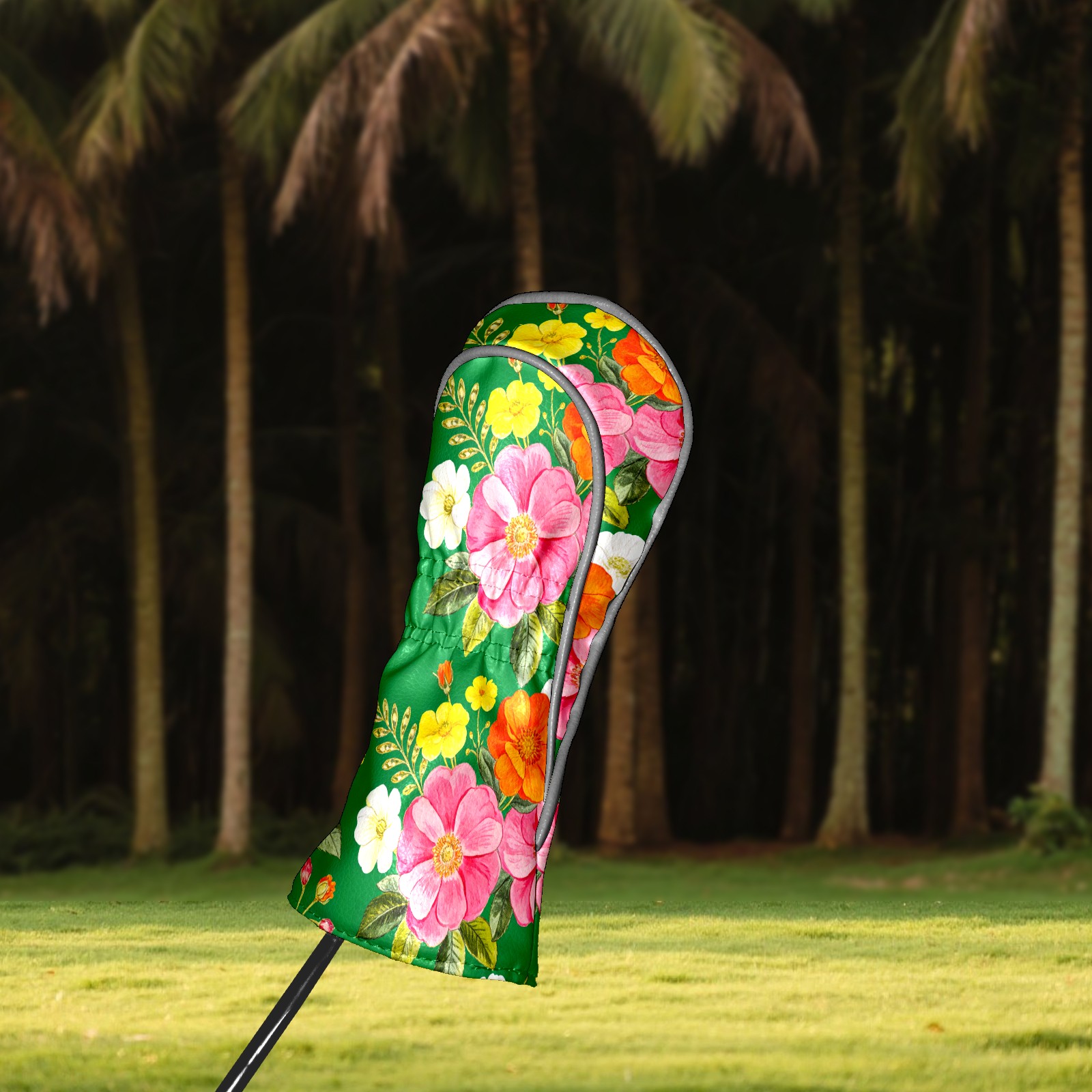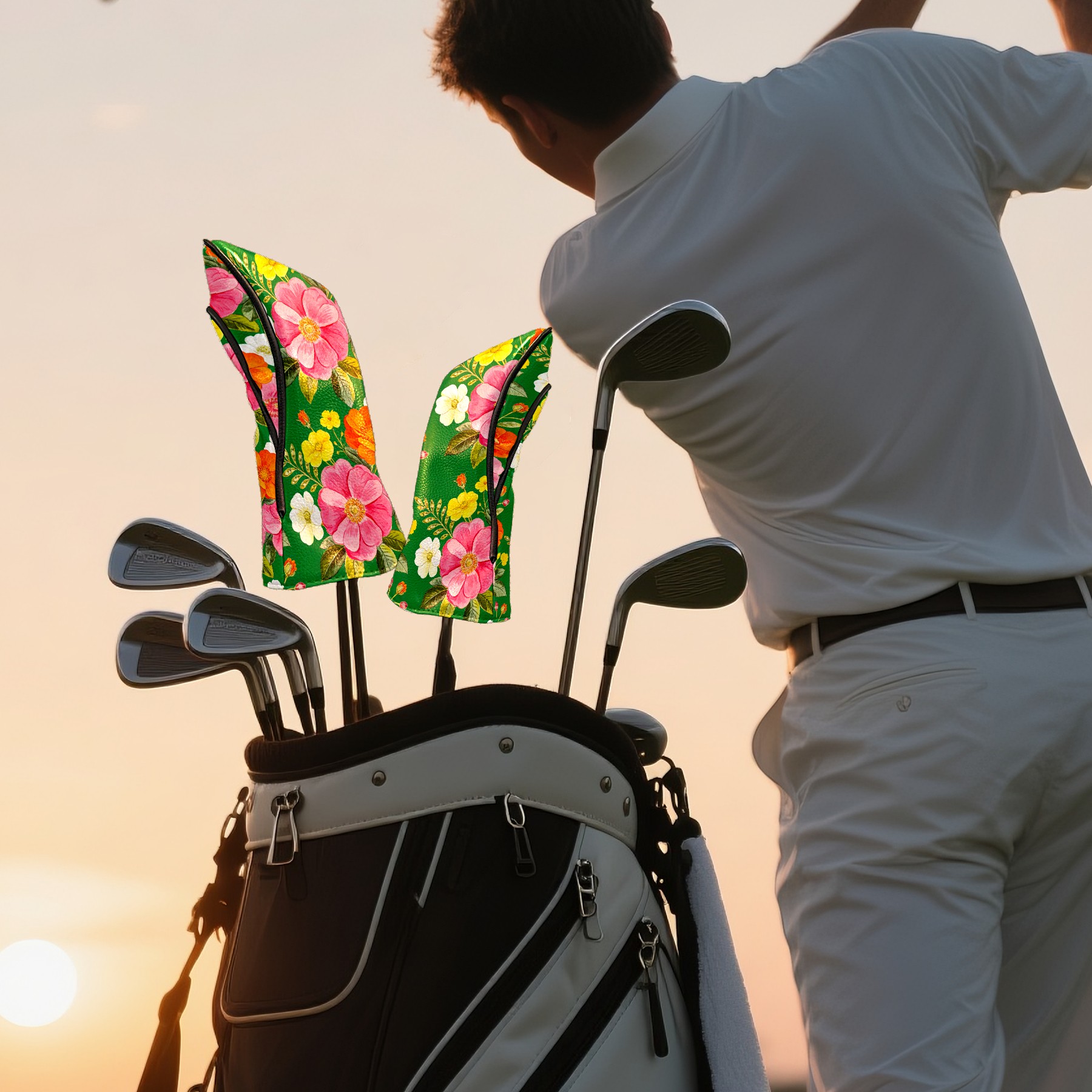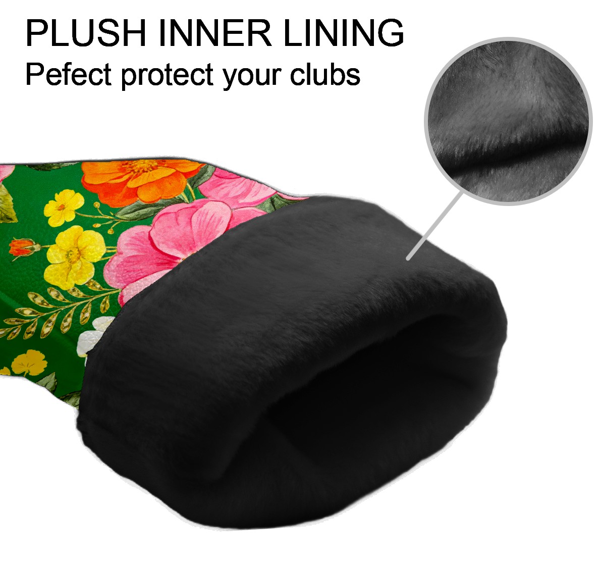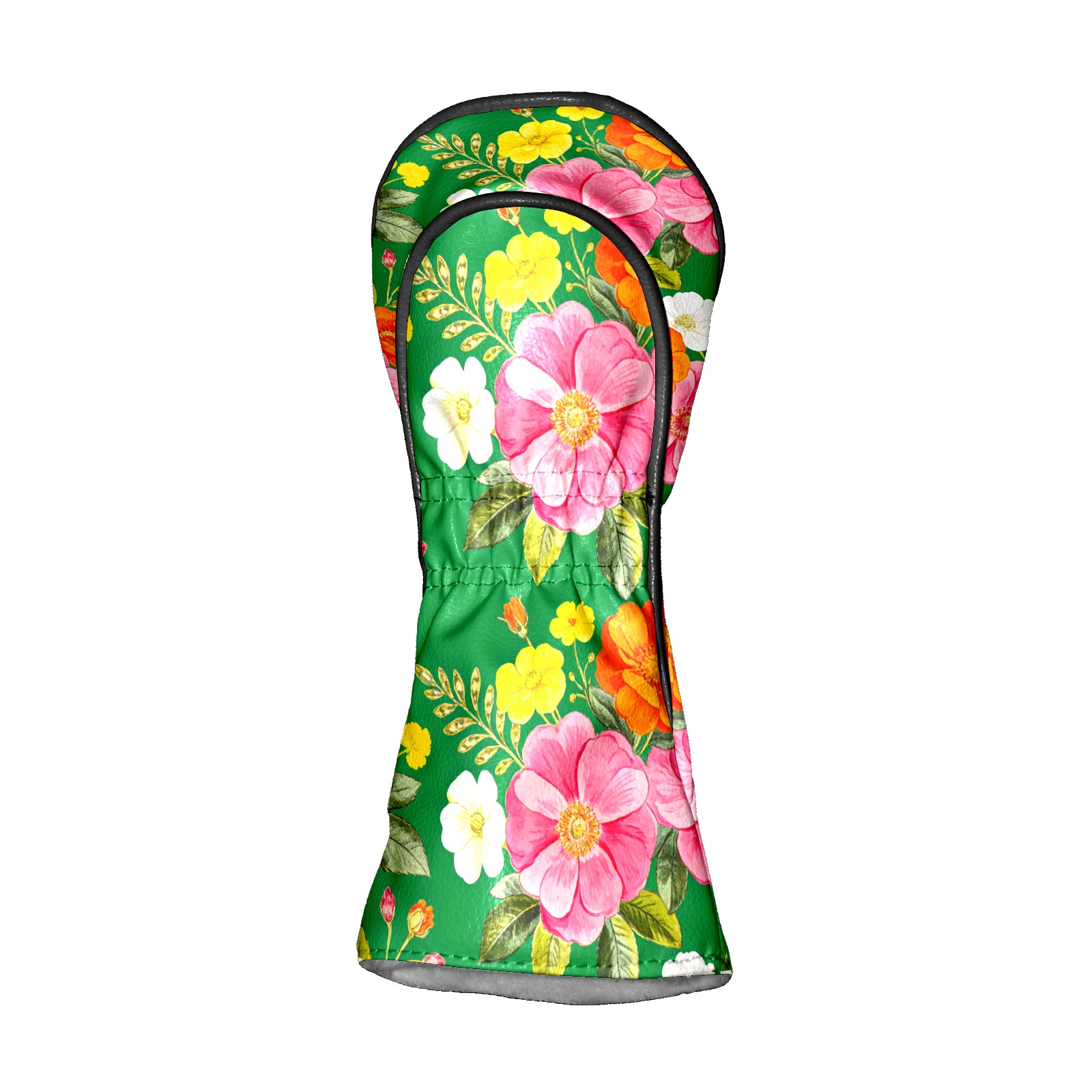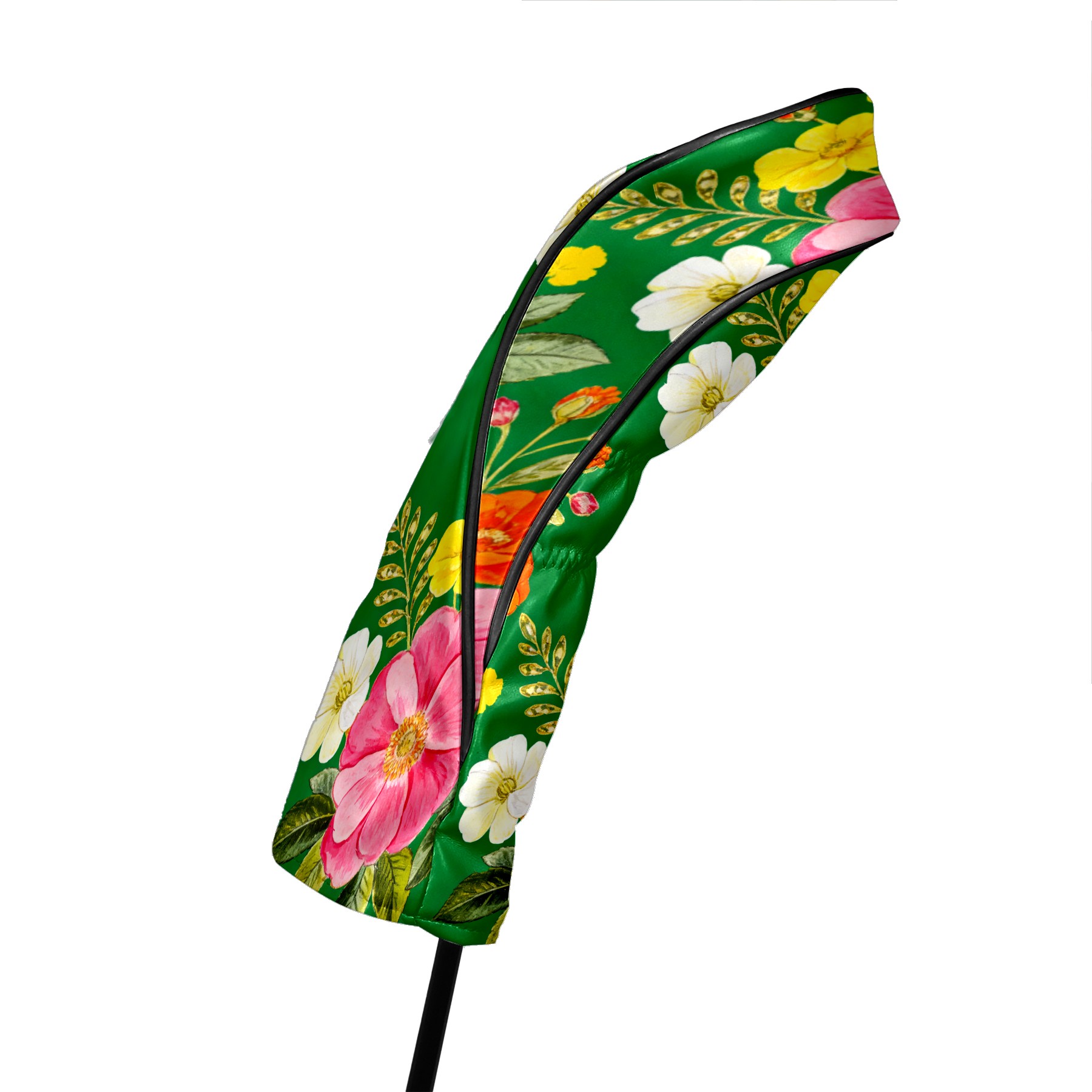 Golf Driver Head Cover Leather Driver Fairway Headcover, Premium Golf Club Covers with Plush Lining Girls Womens Mens Head Cover for Golf Clubs (Flowers On Green)