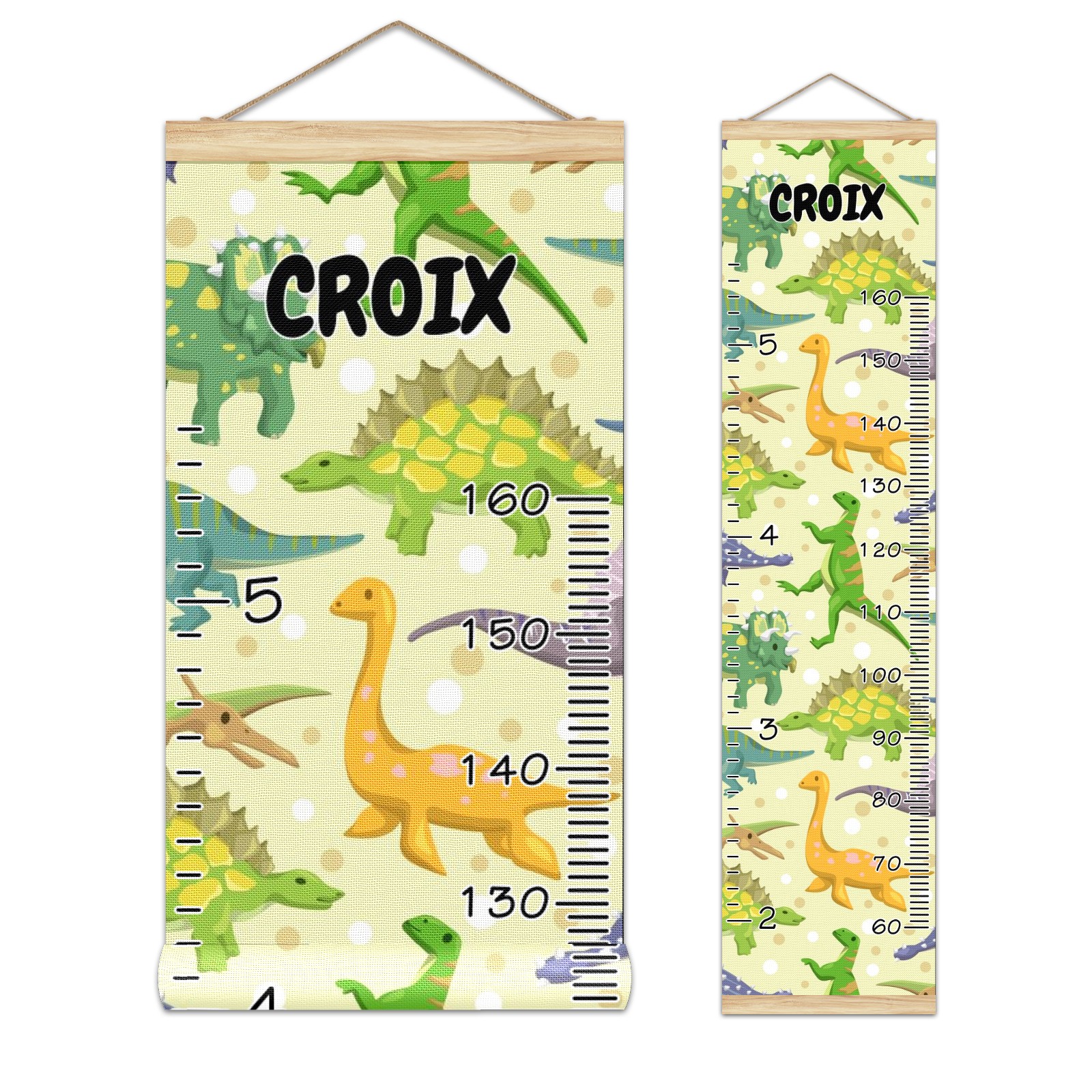 Personalized Kids Name Growth Chart Ruler for Wall Wood Frame Canvas Height Measure Chart 13.4x56 in Hanging Growth Chart Cartoon Dinosaur Animal3.31-1 Boys Girls Room Decor