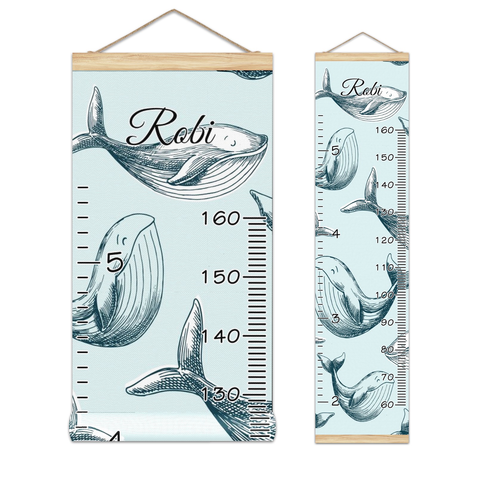 Personalized Kids Name Growth Chart Ruler for Wall Wood Frame Canvas Height Measure Chart 13.4x56 in Hanging Growth Chart Ocean Dolphin Fish3.31 Boys Girls Room Decor