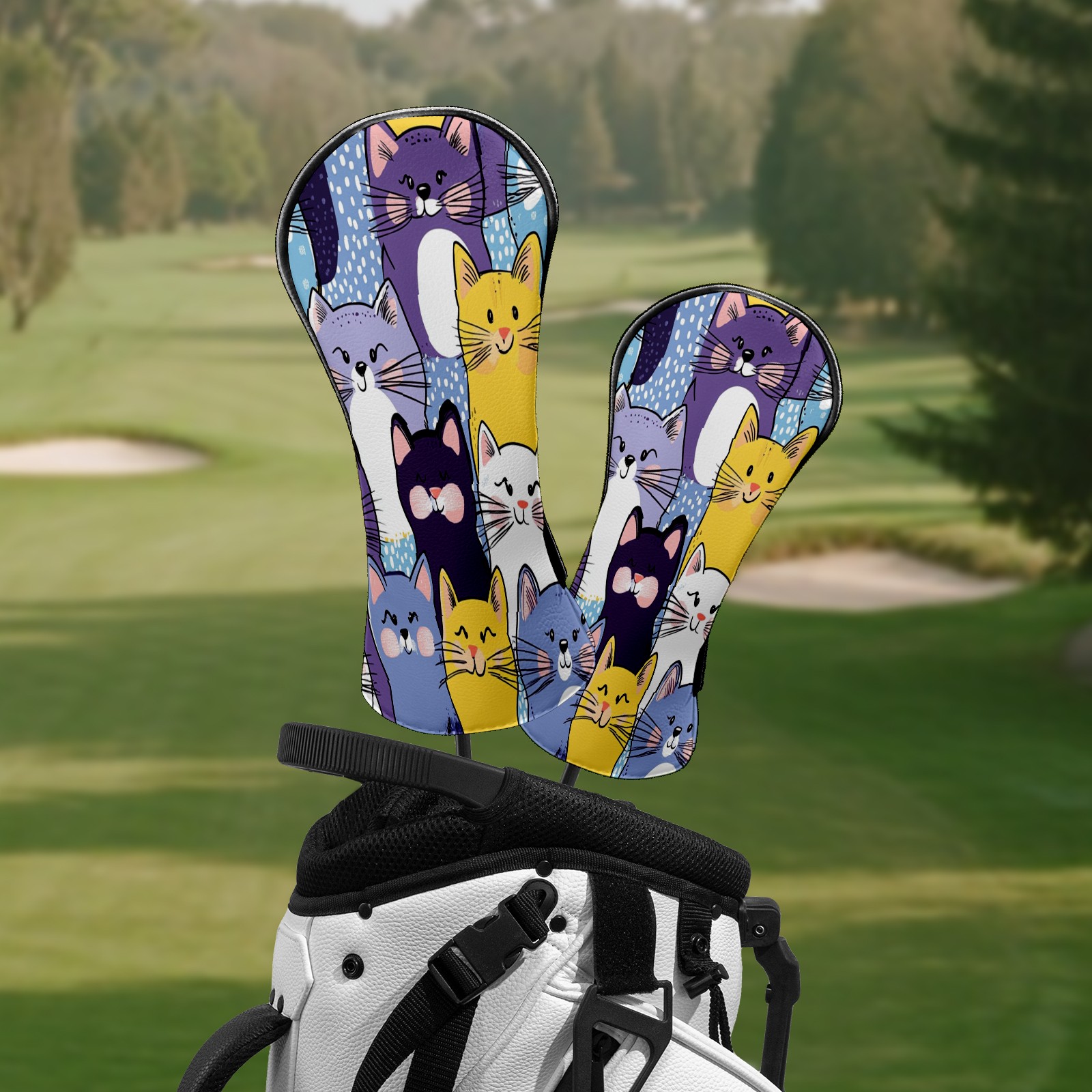 Golf Club Head Covers ColorfulCatBreedsDoodle Premium Plush Velvet Lining, Waterproof Golf Headcovers Driver & Fairway Woods for Scratch Protection Novelty Gift for Men & Women