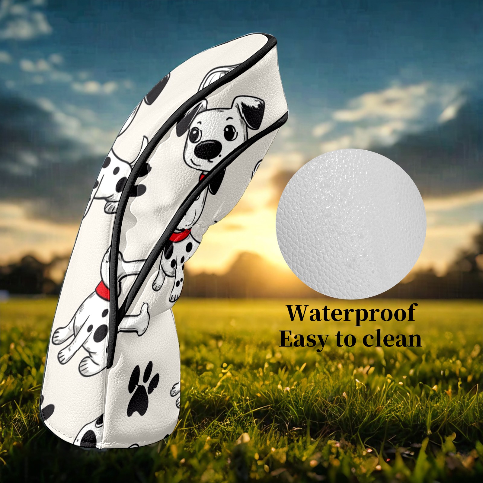 Golf Club Head Covers DalmatianPuppyPawPrint Premium Plush Velvet Lining, Waterproof Golf Headcovers Driver & Fairway Woods for Scratch Protection Novelty Gift for Men & Women