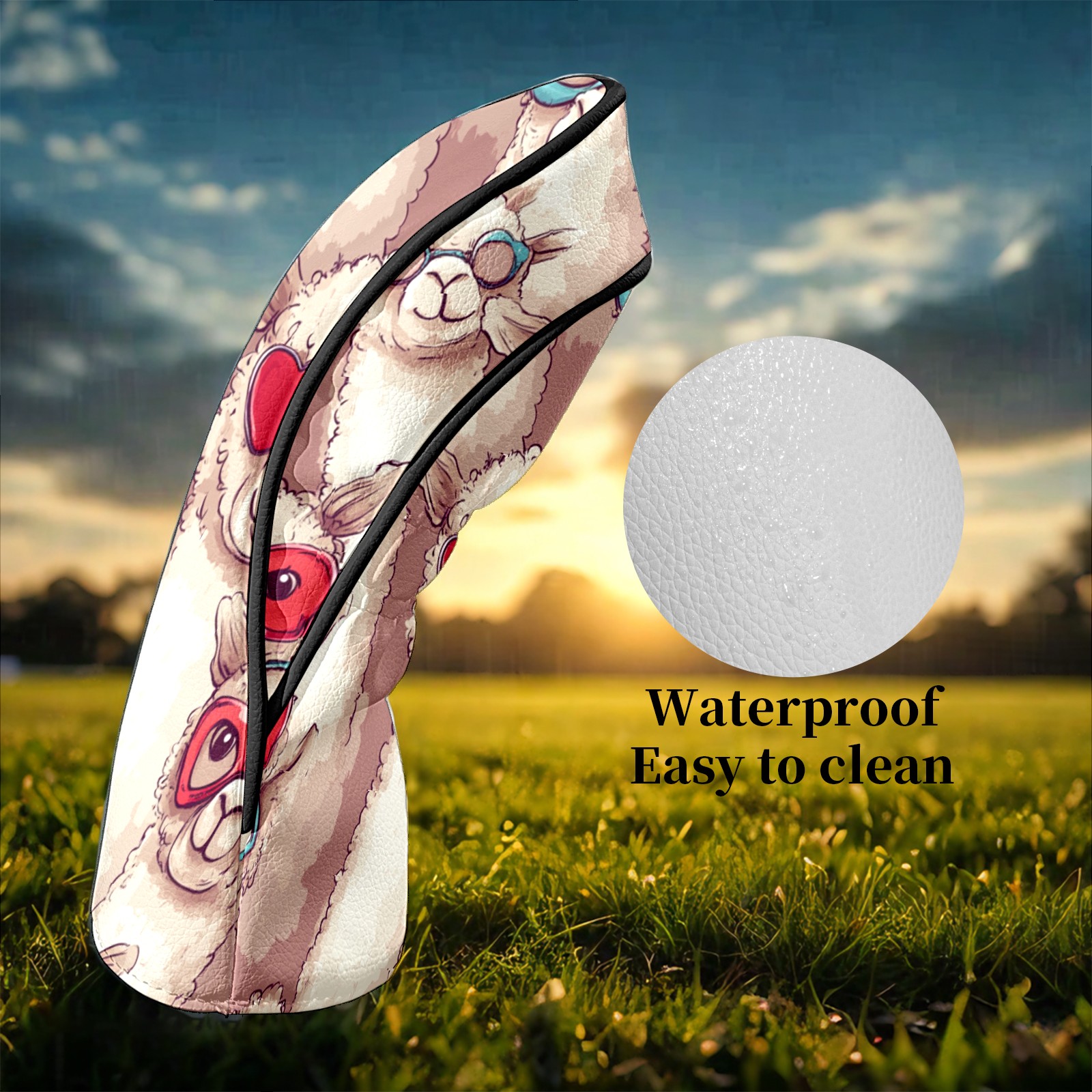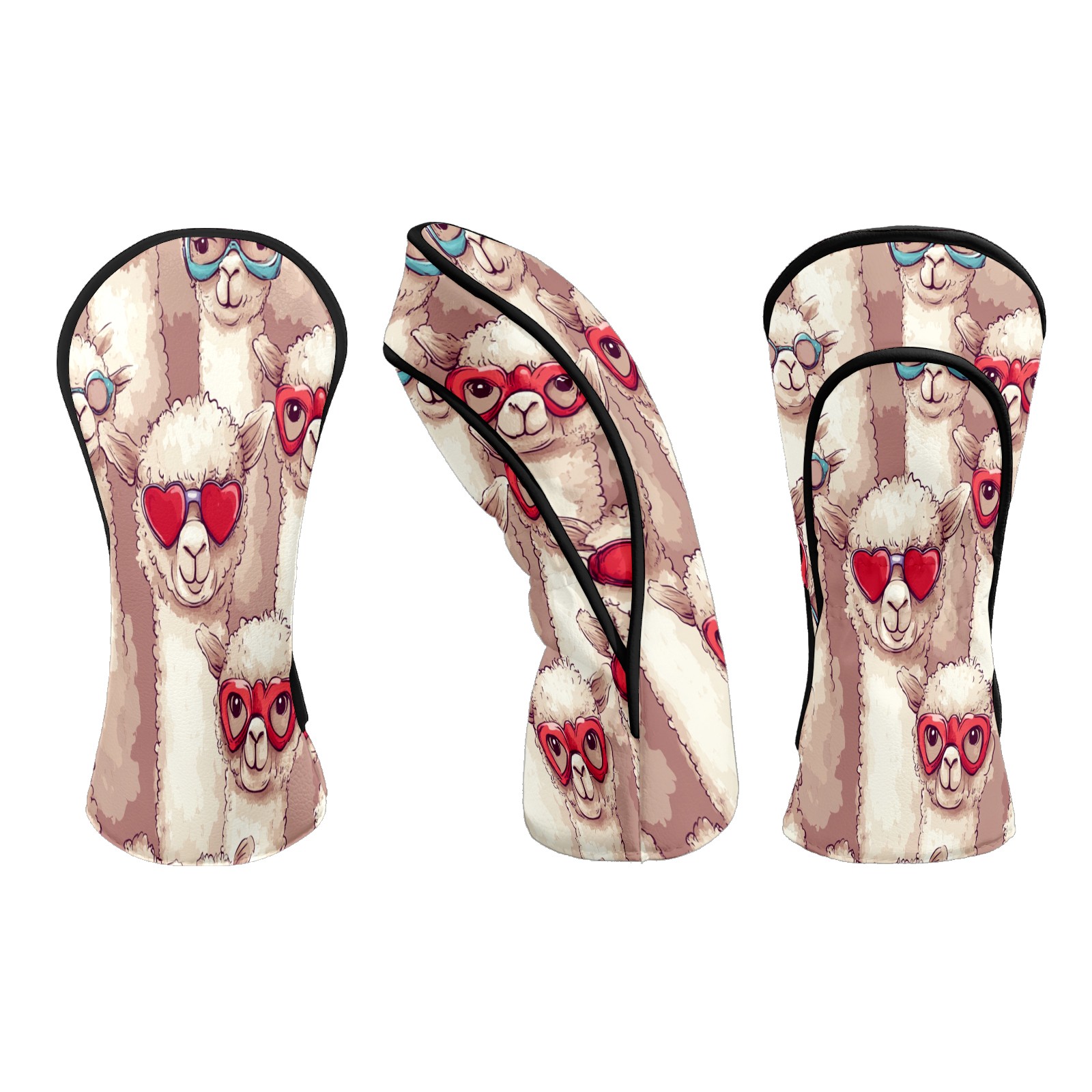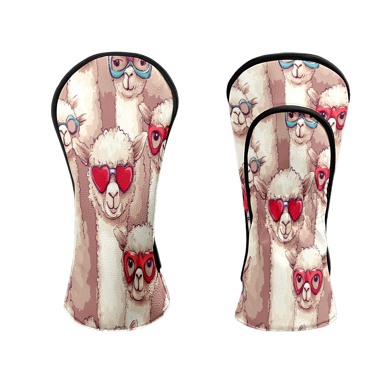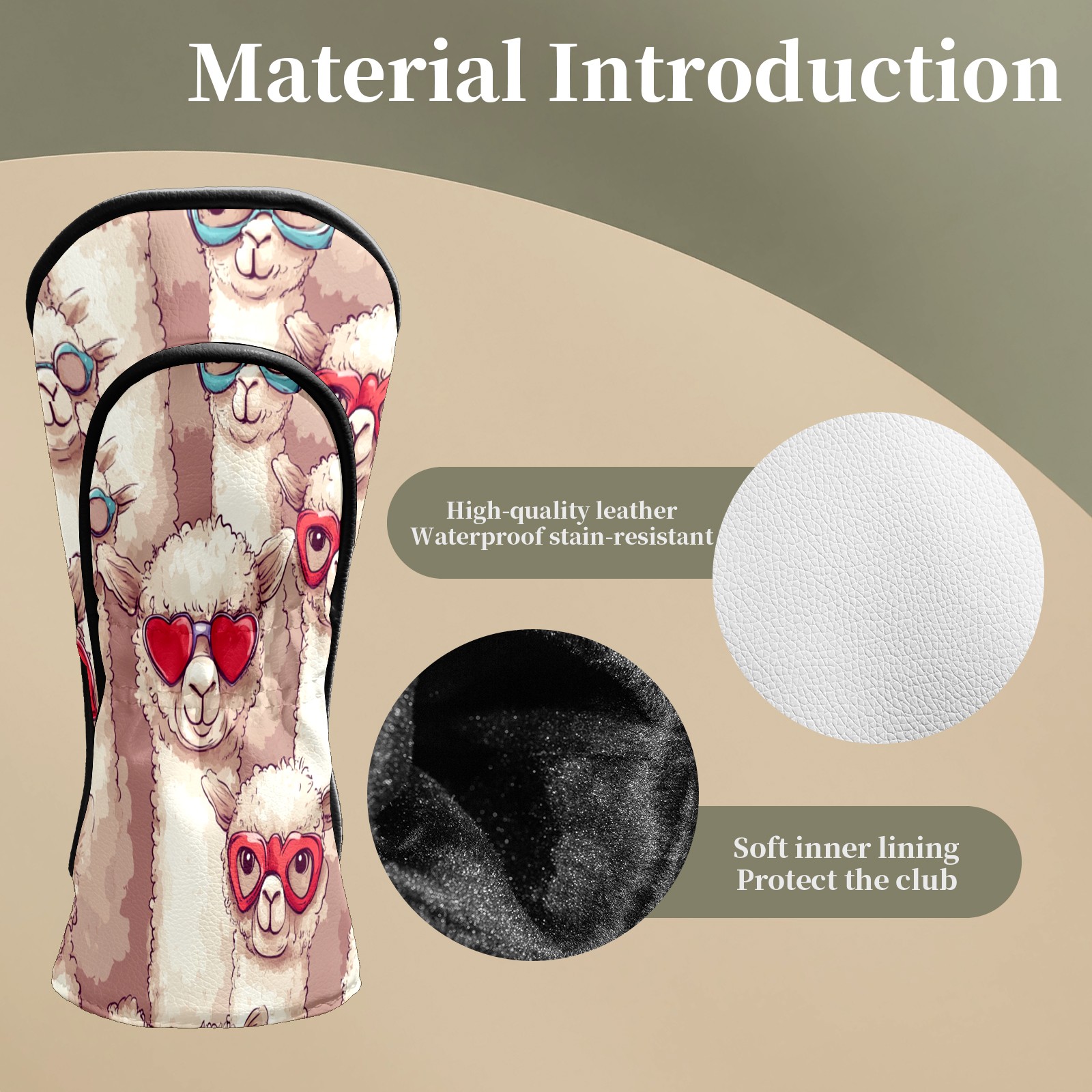 Golf Club Head Covers AlpacaWithSunglasses_Pink_ Premium Plush Velvet Lining, Waterproof Golf Headcovers Driver & Fairway Woods for Scratch Protection Novelty Gift for Men & Women