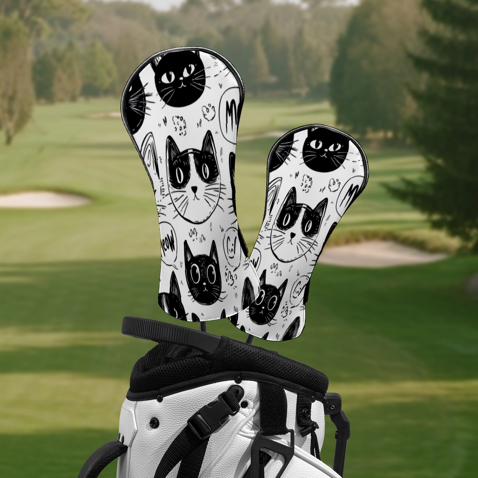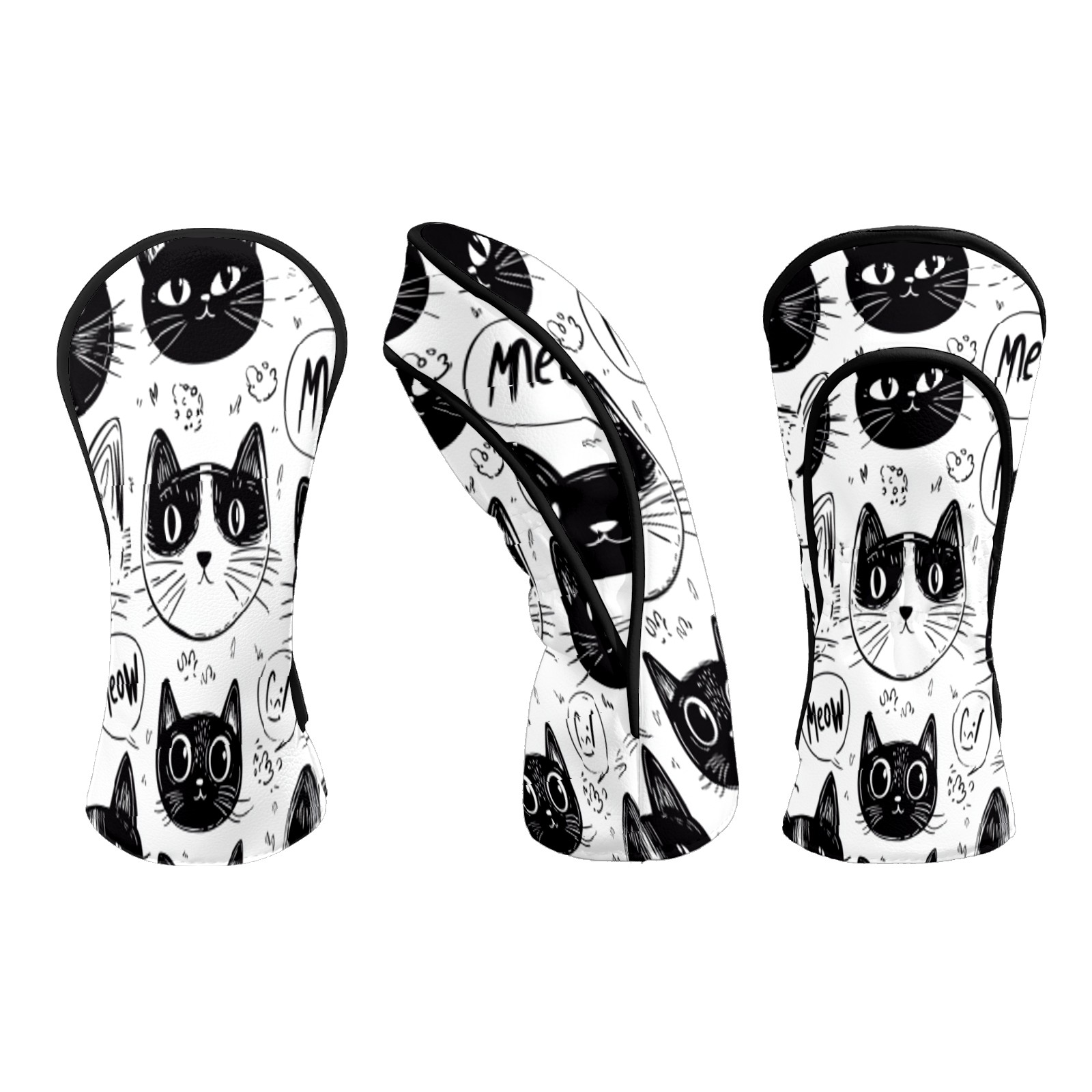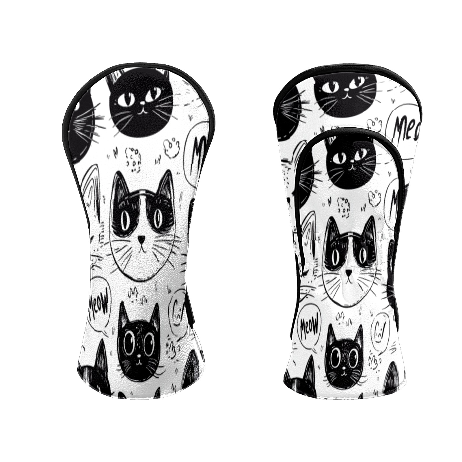 Golf Club Head Covers Cat BlackWhiteSketch Premium Plush Velvet Lining, Waterproof Golf Headcovers Driver & Fairway Woods for Scratch Protection Novelty Gift for Men & Women