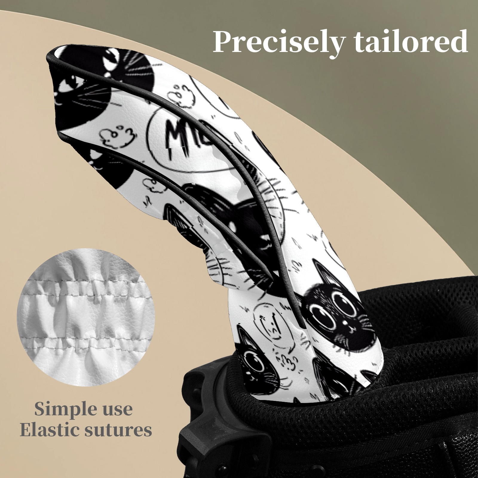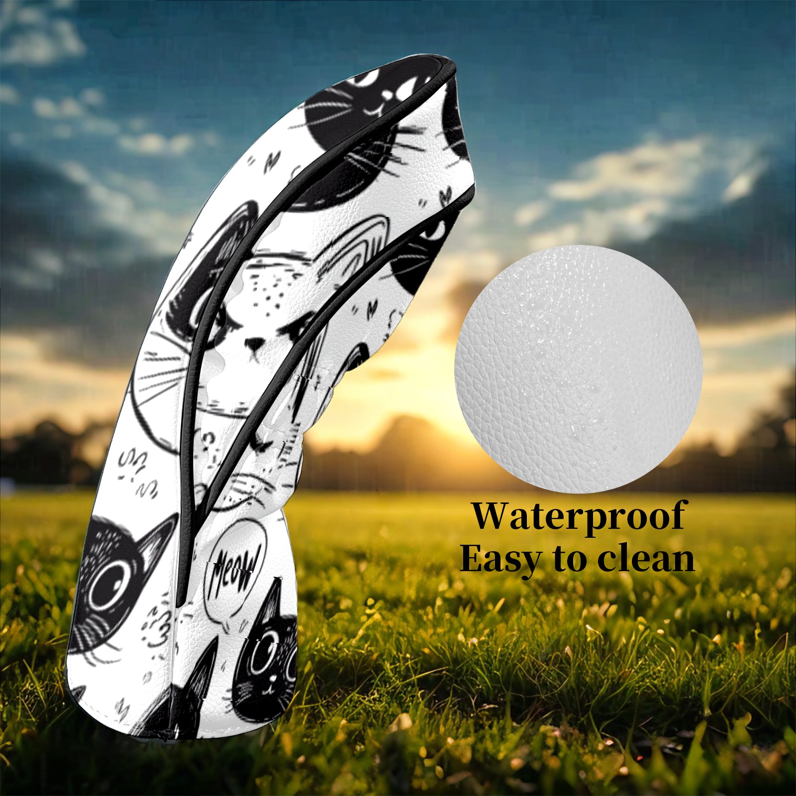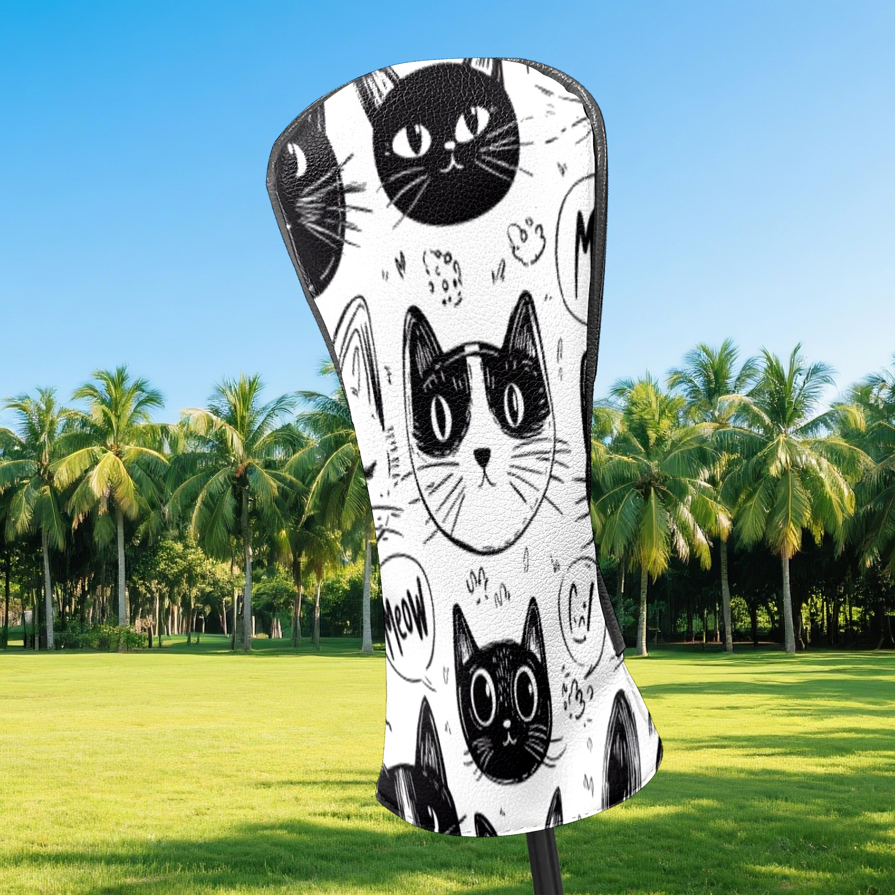 Golf Club Head Covers Cat BlackWhiteSketch Premium Plush Velvet Lining, Waterproof Golf Headcovers Driver & Fairway Woods for Scratch Protection Novelty Gift for Men & Women