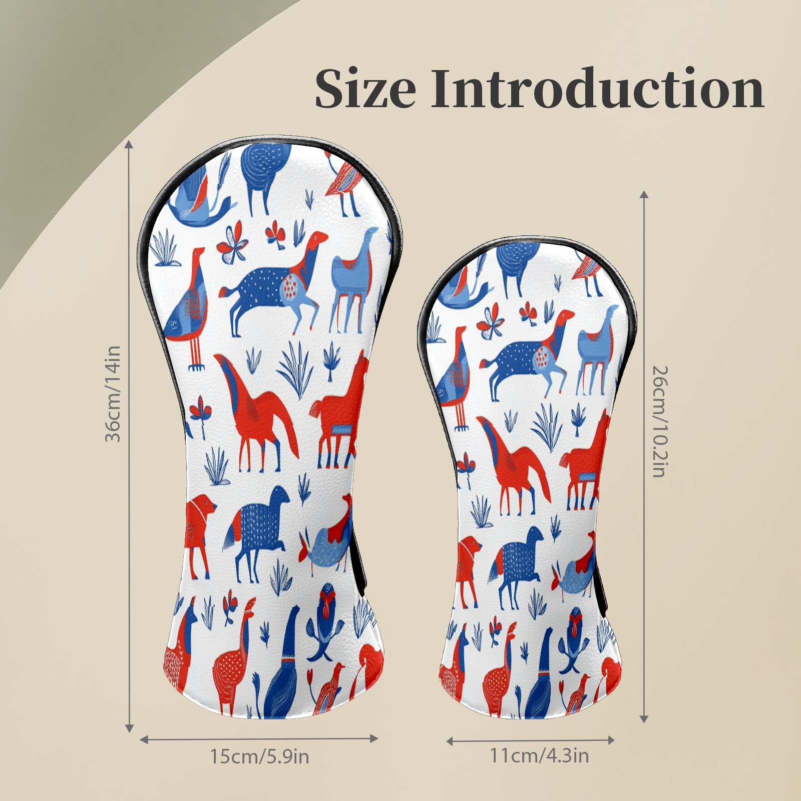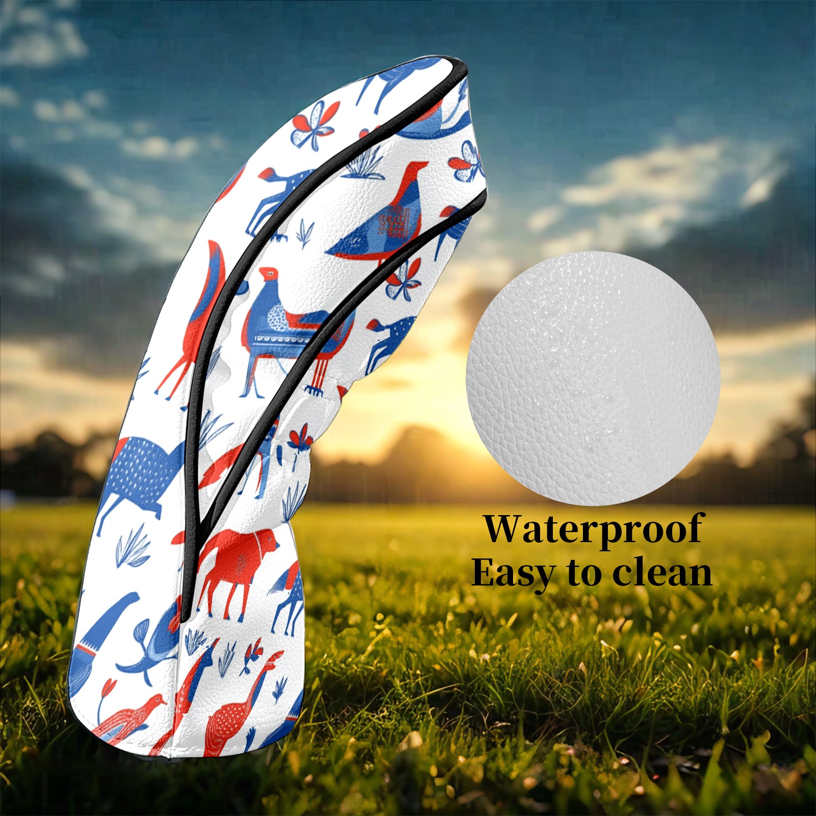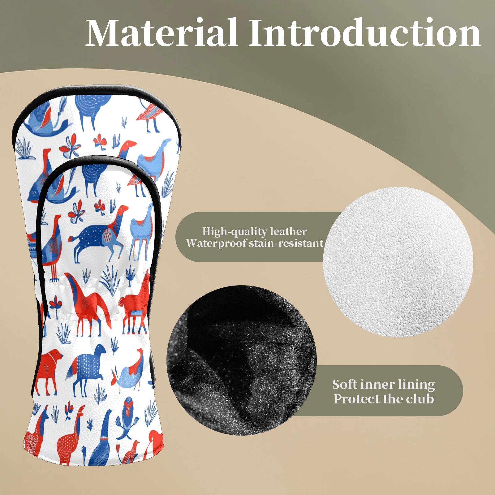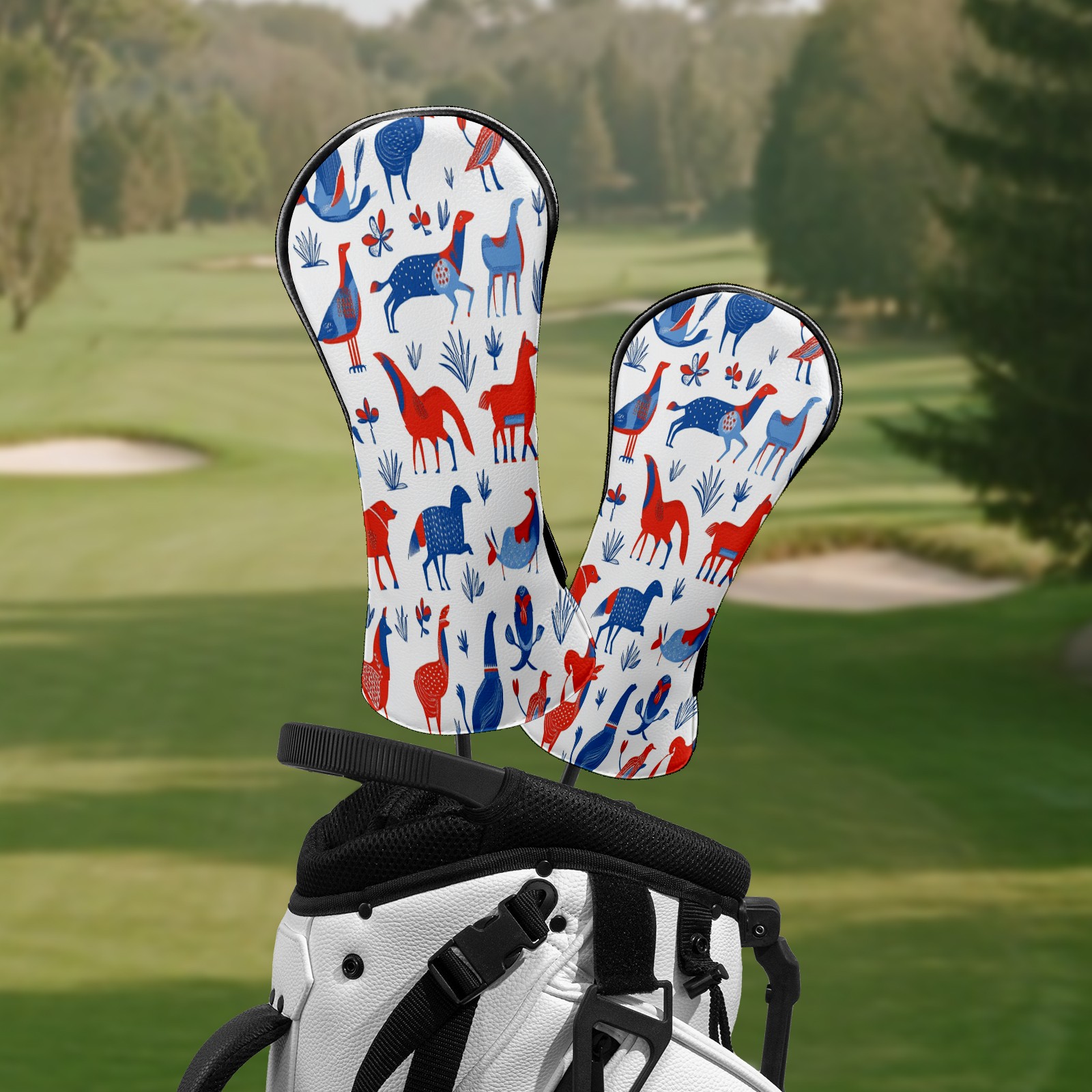 Golf Club Head Covers FolkAnimal_ColorfulBoho Premium Plush Velvet Lining, Waterproof Golf Headcovers Driver & Fairway Woods for Scratch Protection Novelty Gift for Men & Women