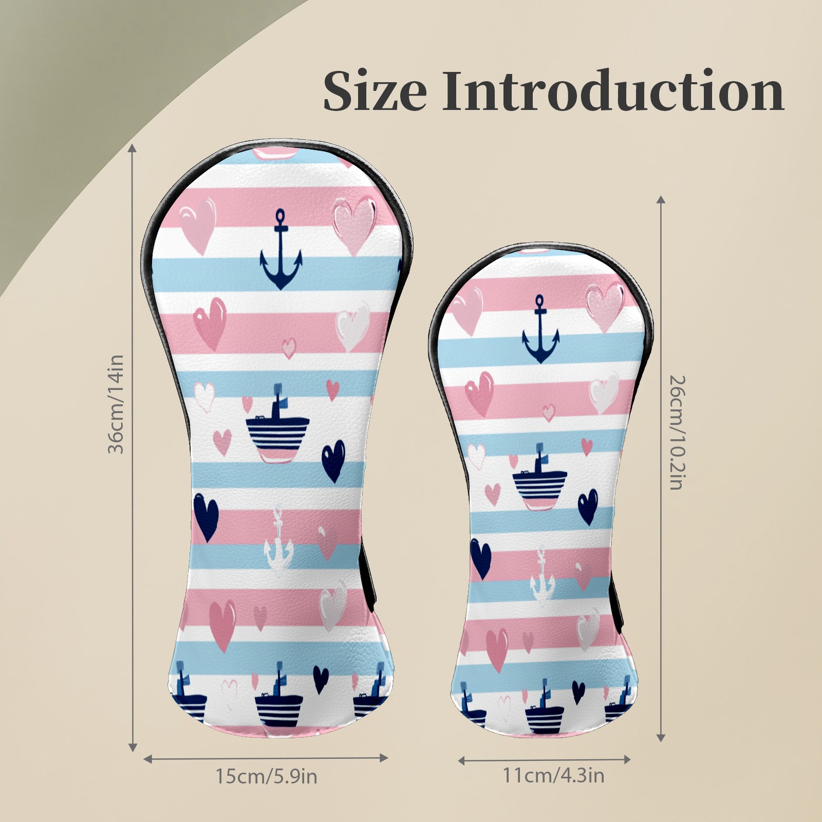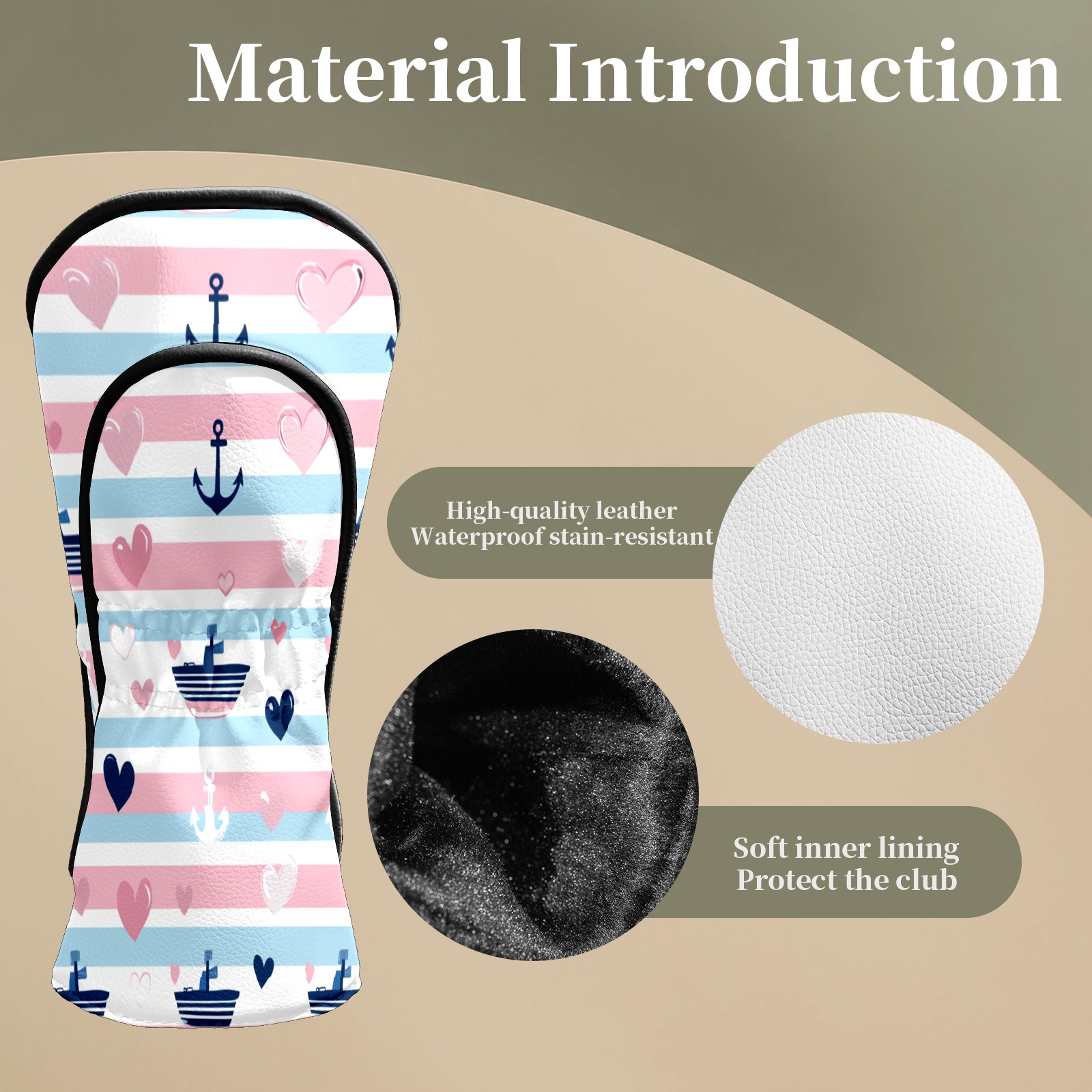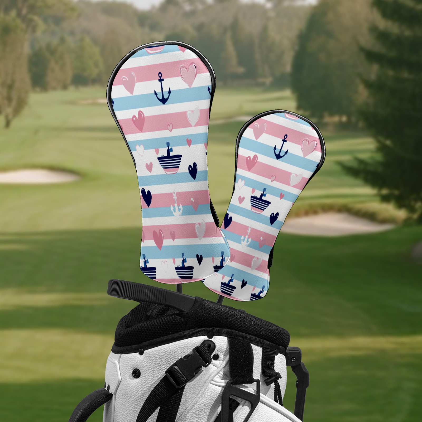 Golf Club Head Covers SailboatAnchor_PastelStripe Premium Plush Velvet Lining, Waterproof Golf Headcovers Driver & Fairway Woods for Scratch Protection Novelty Gift for Men & Women