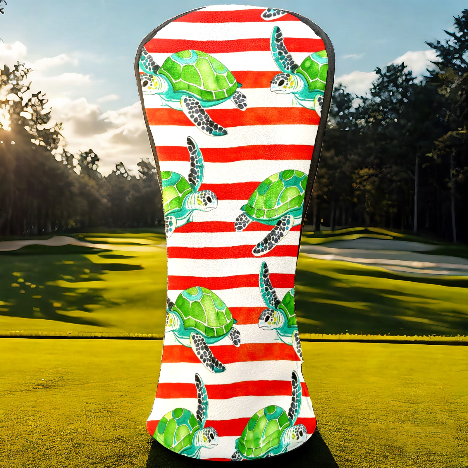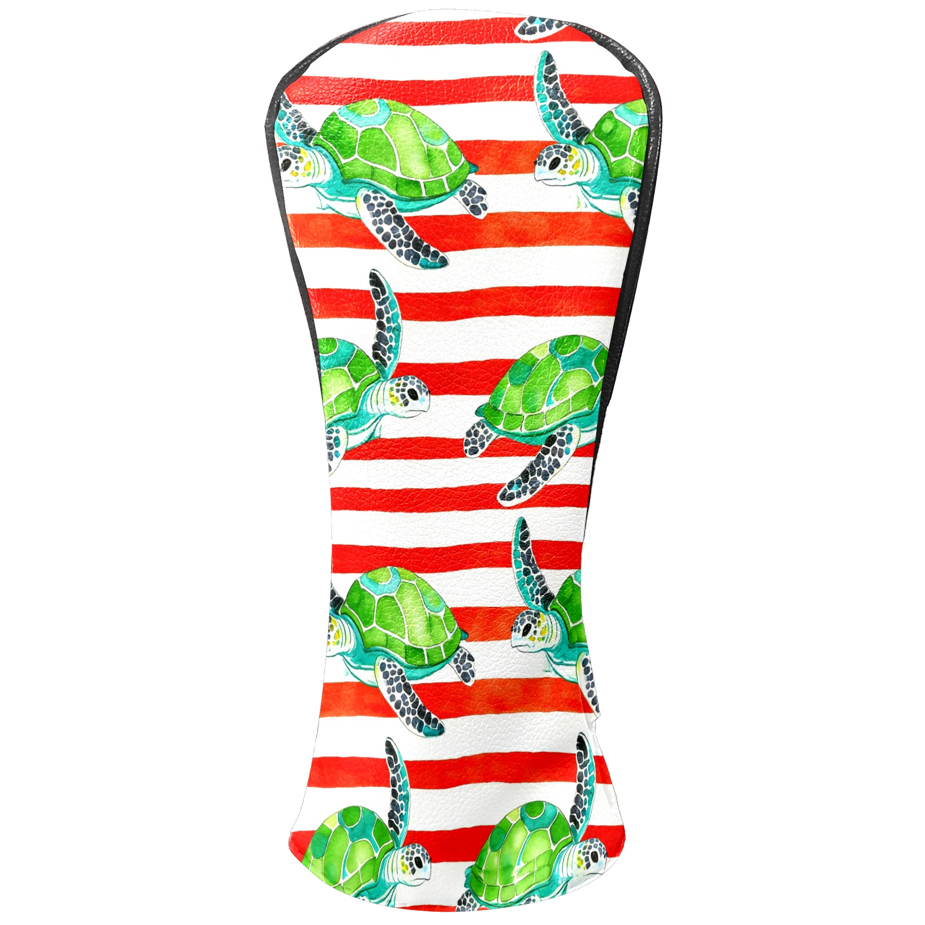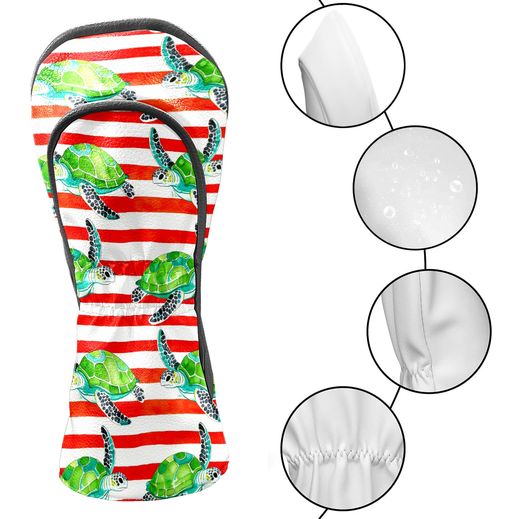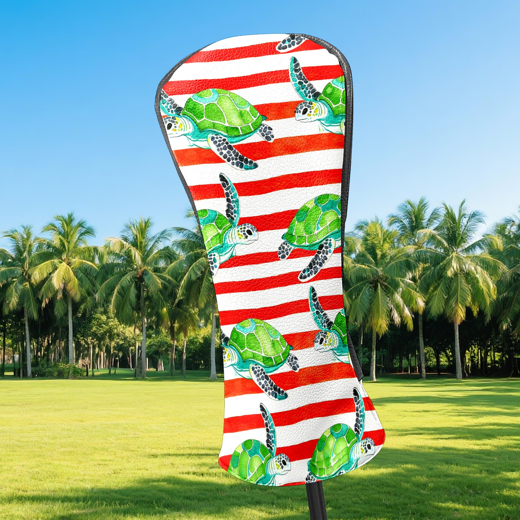 Golf Head Covers Leather Driver Head Cover, Premium Golf Club Covers with Anti-Scratch Lining for Women Men 1/3/5 Wood Cover for Golf Clubs (Green Turtles Stripes)