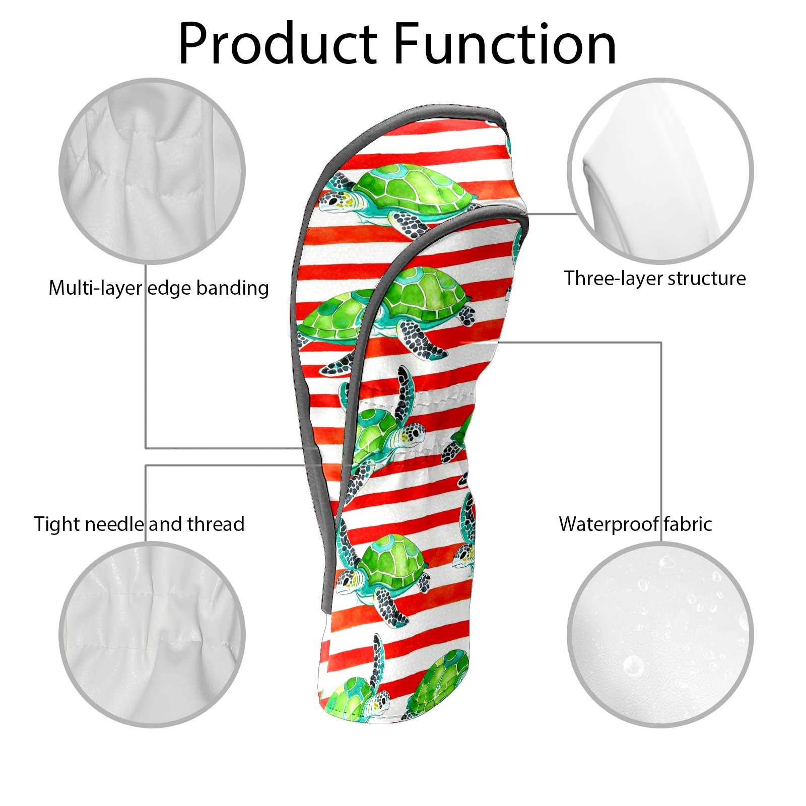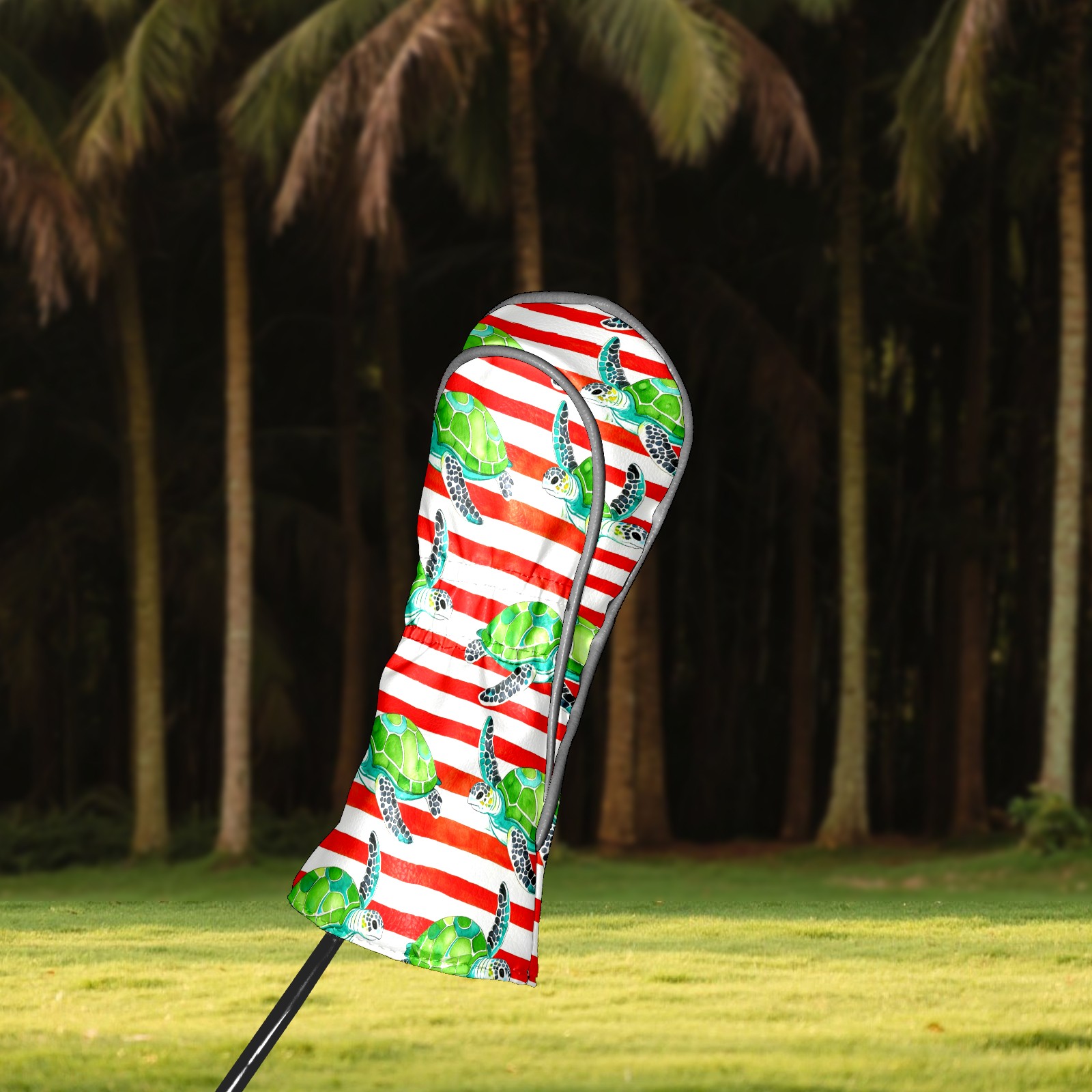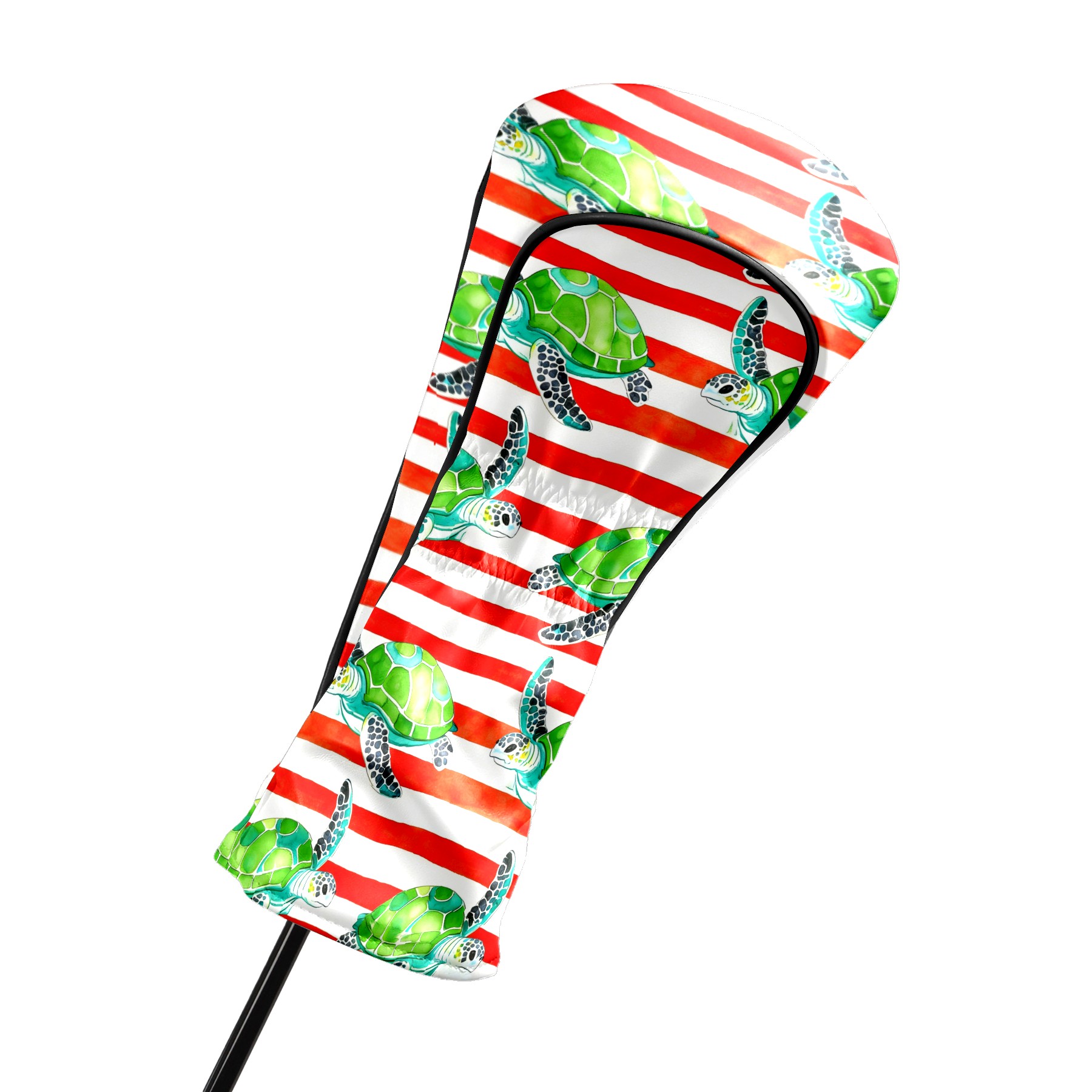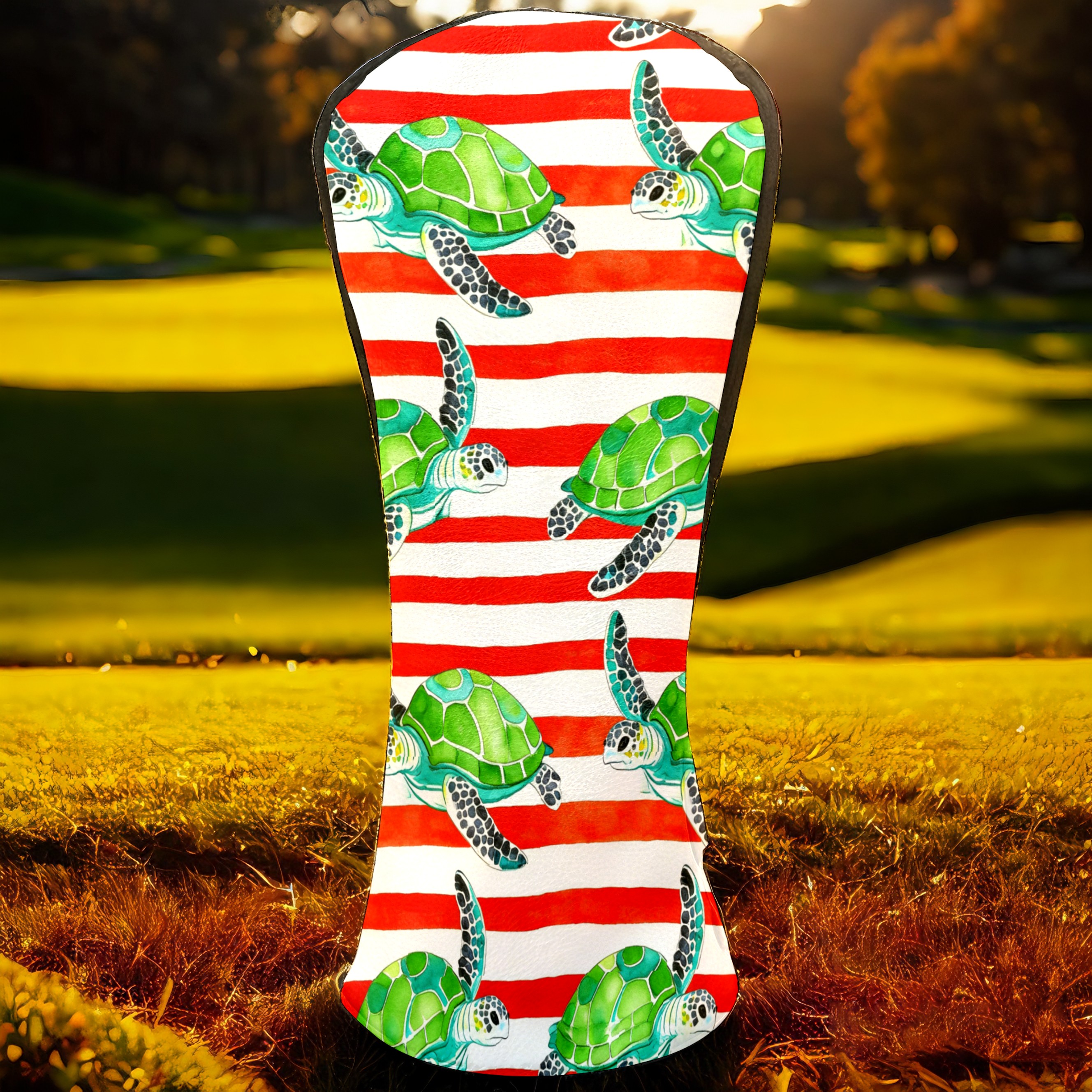 Golf Head Covers Leather Driver Head Cover, Premium Golf Club Covers with Anti-Scratch Lining for Women Men 1/3/5 Wood Cover for Golf Clubs (Green Turtles Stripes)