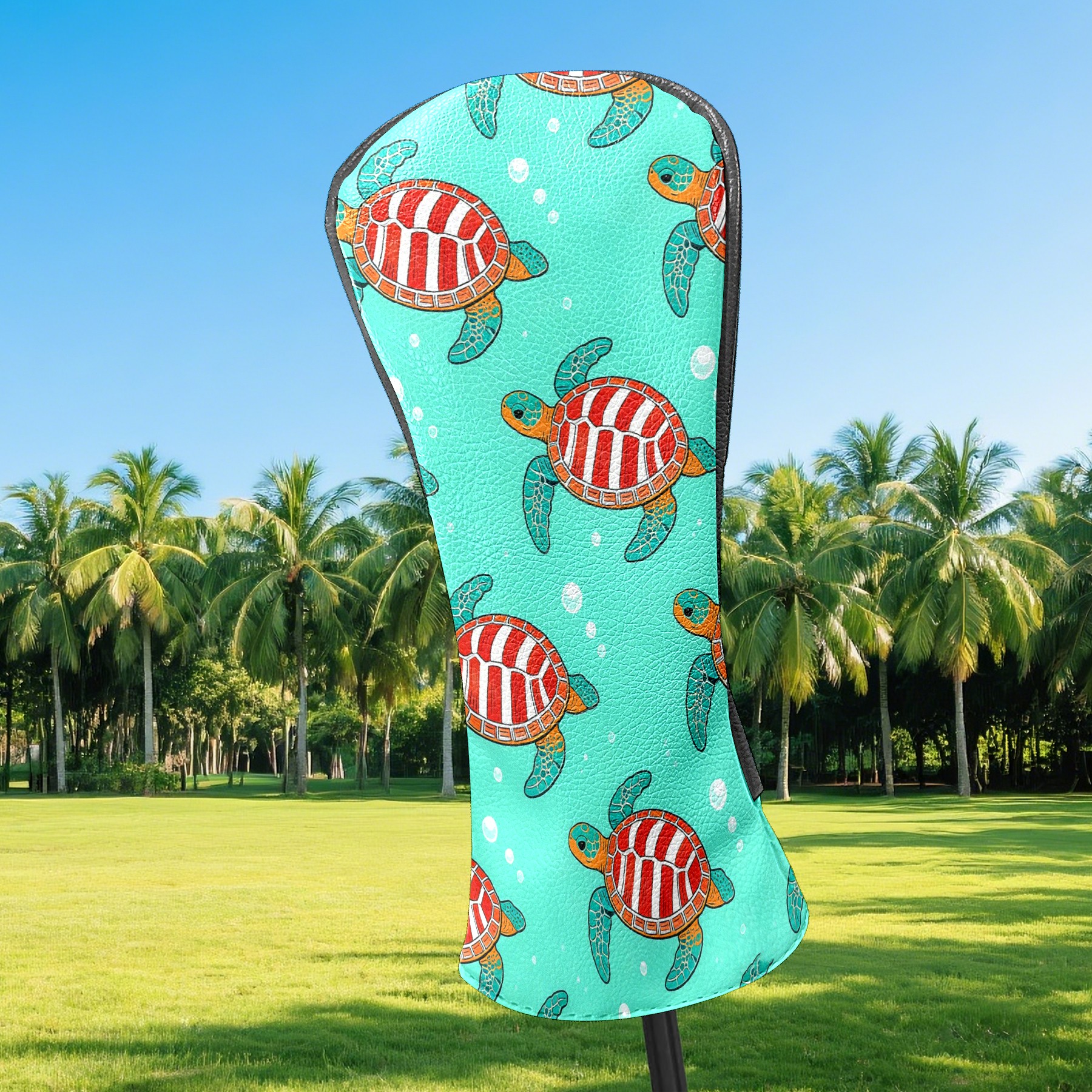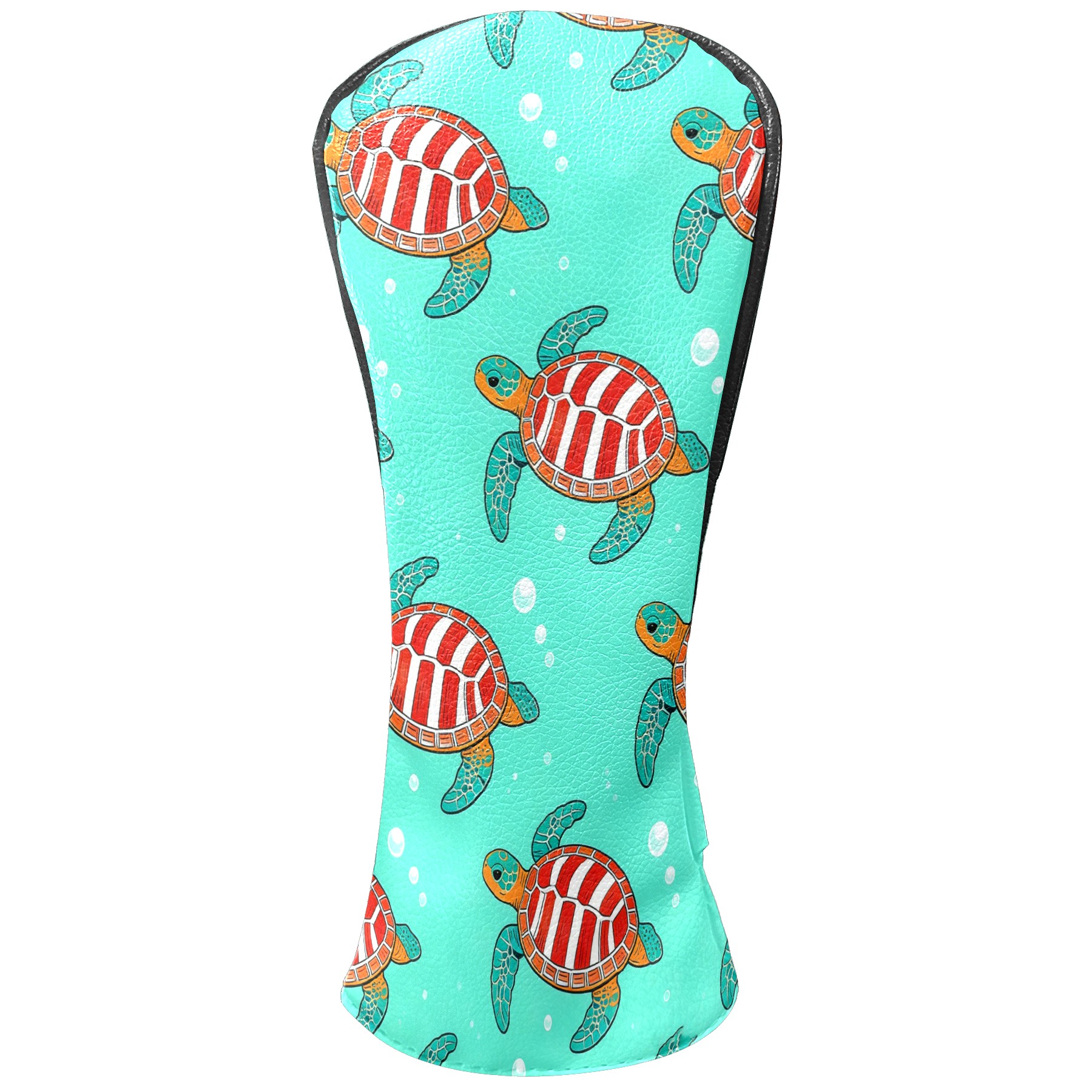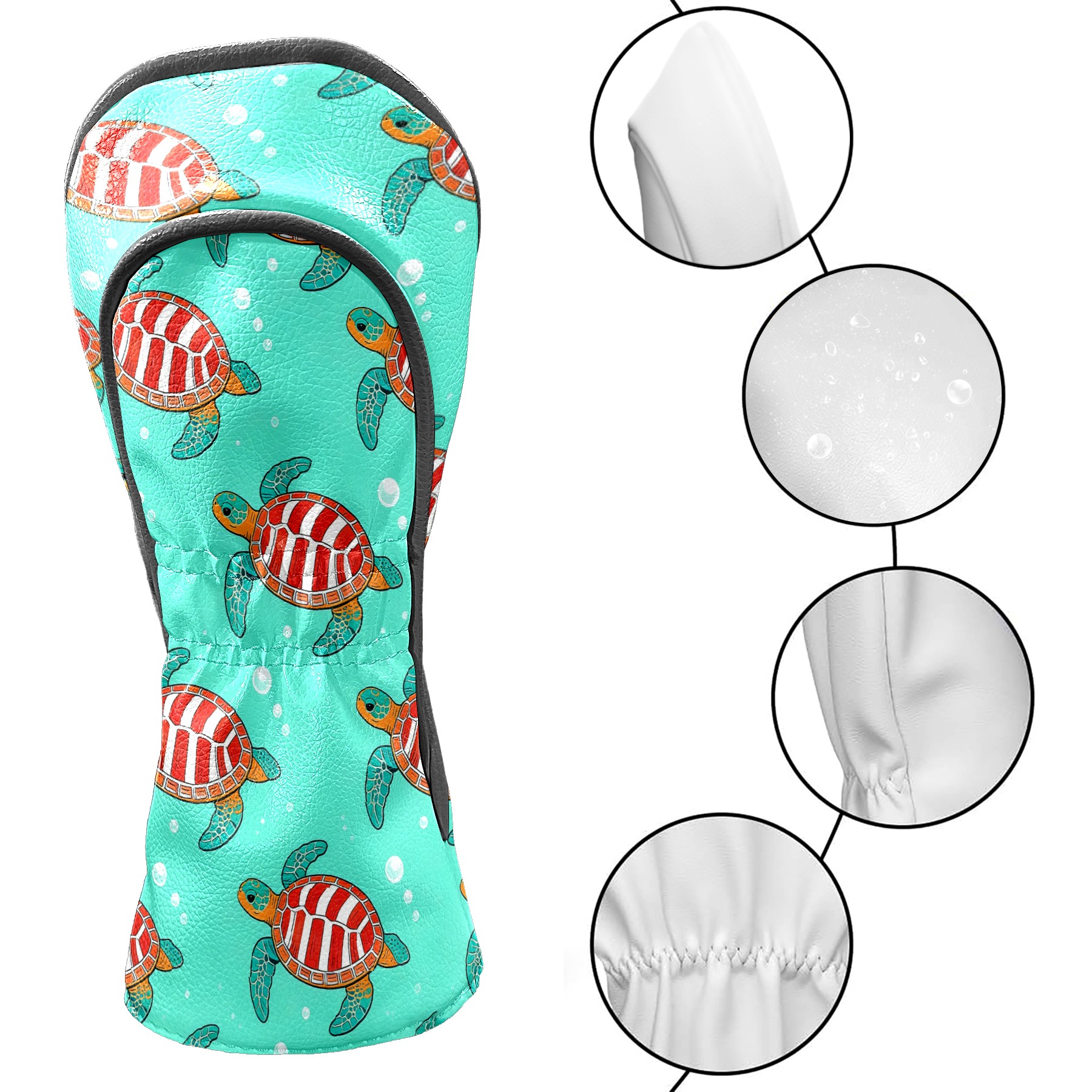 Golf Head Covers Leather Driver Head Cover, Premium Golf Club Covers with Anti-Scratch Lining for Women Men 1/3/5 Wood Cover for Golf Clubs (Sea Turtle)