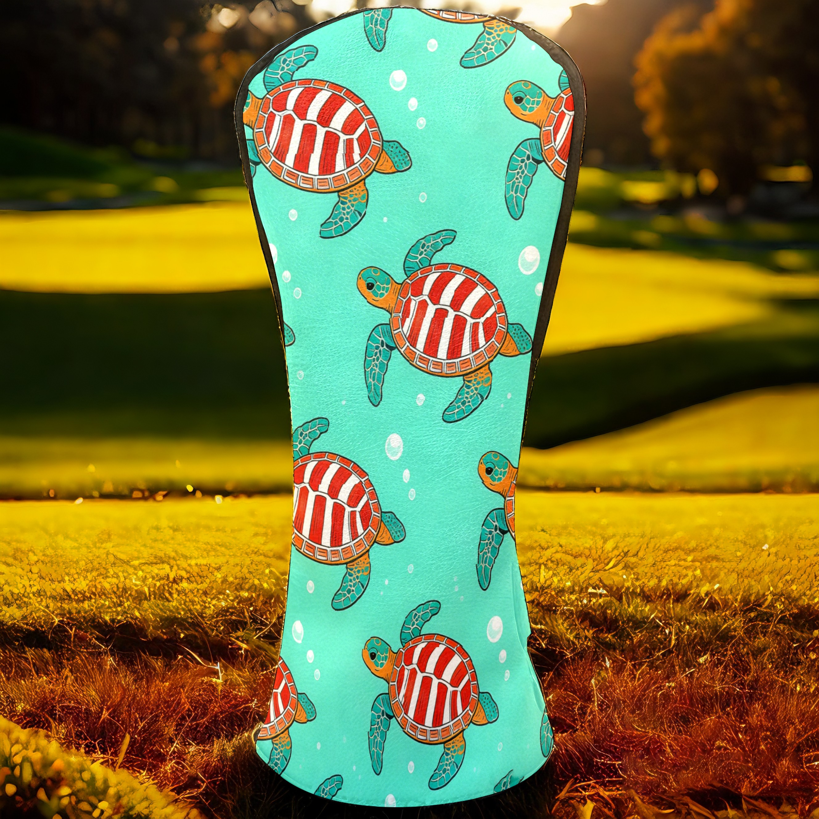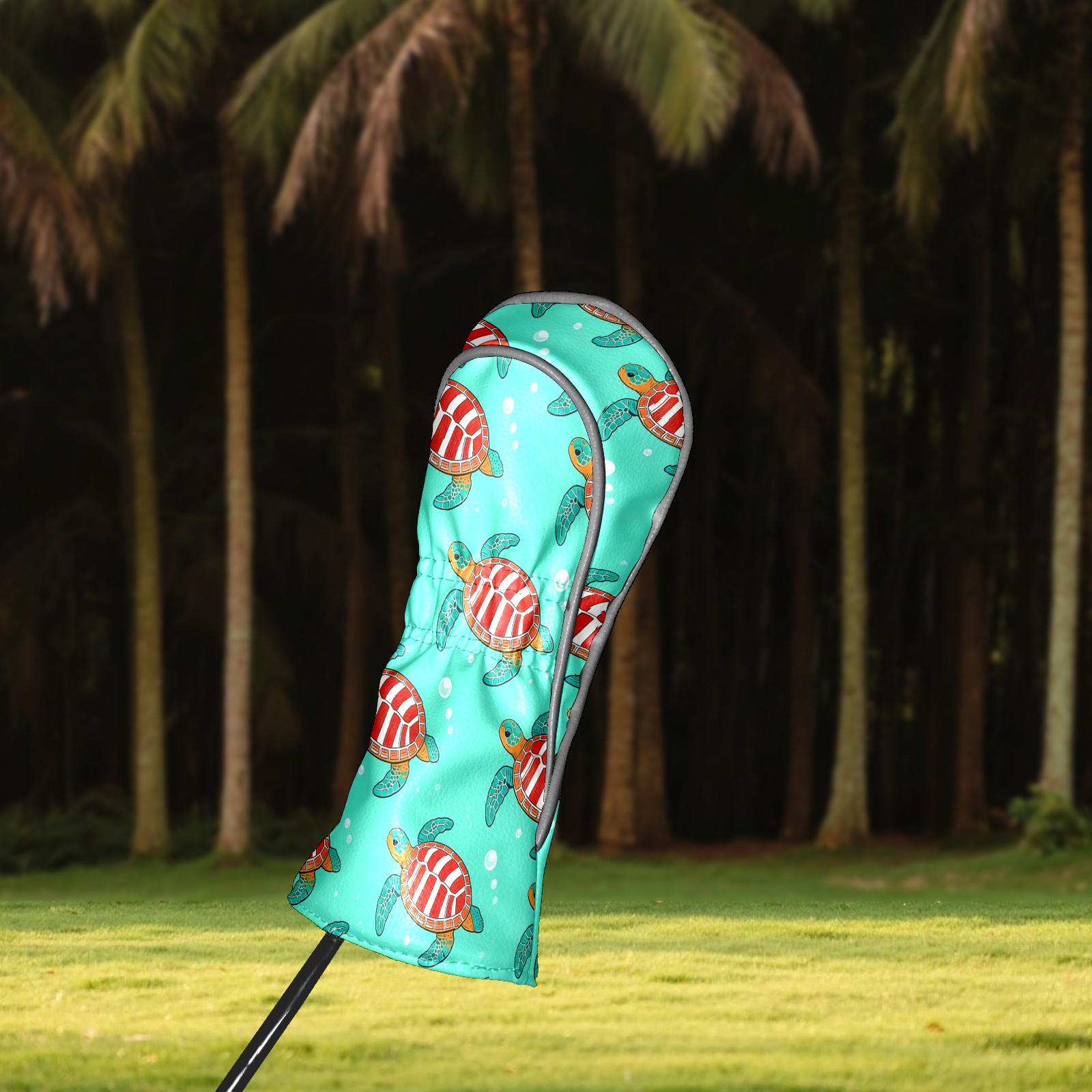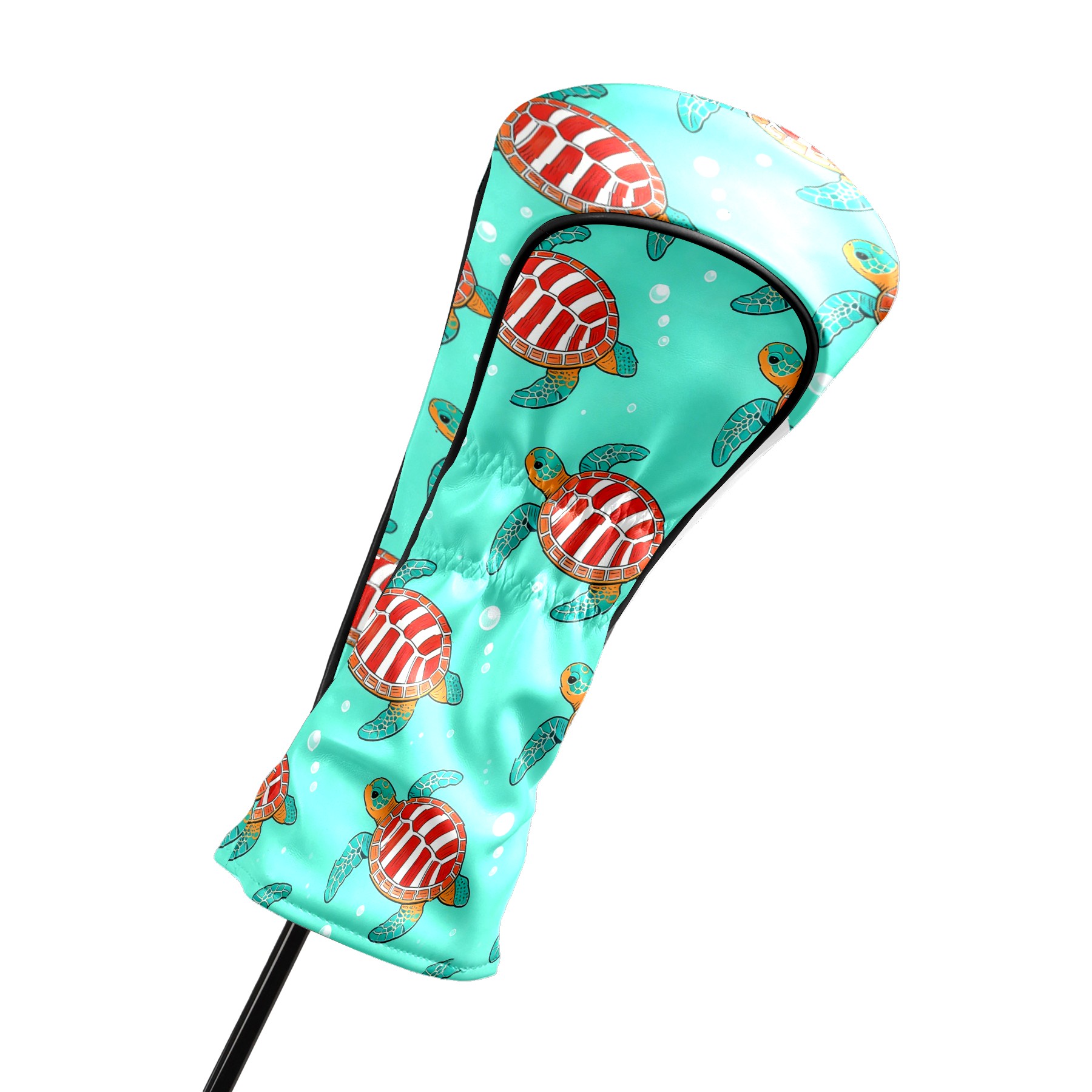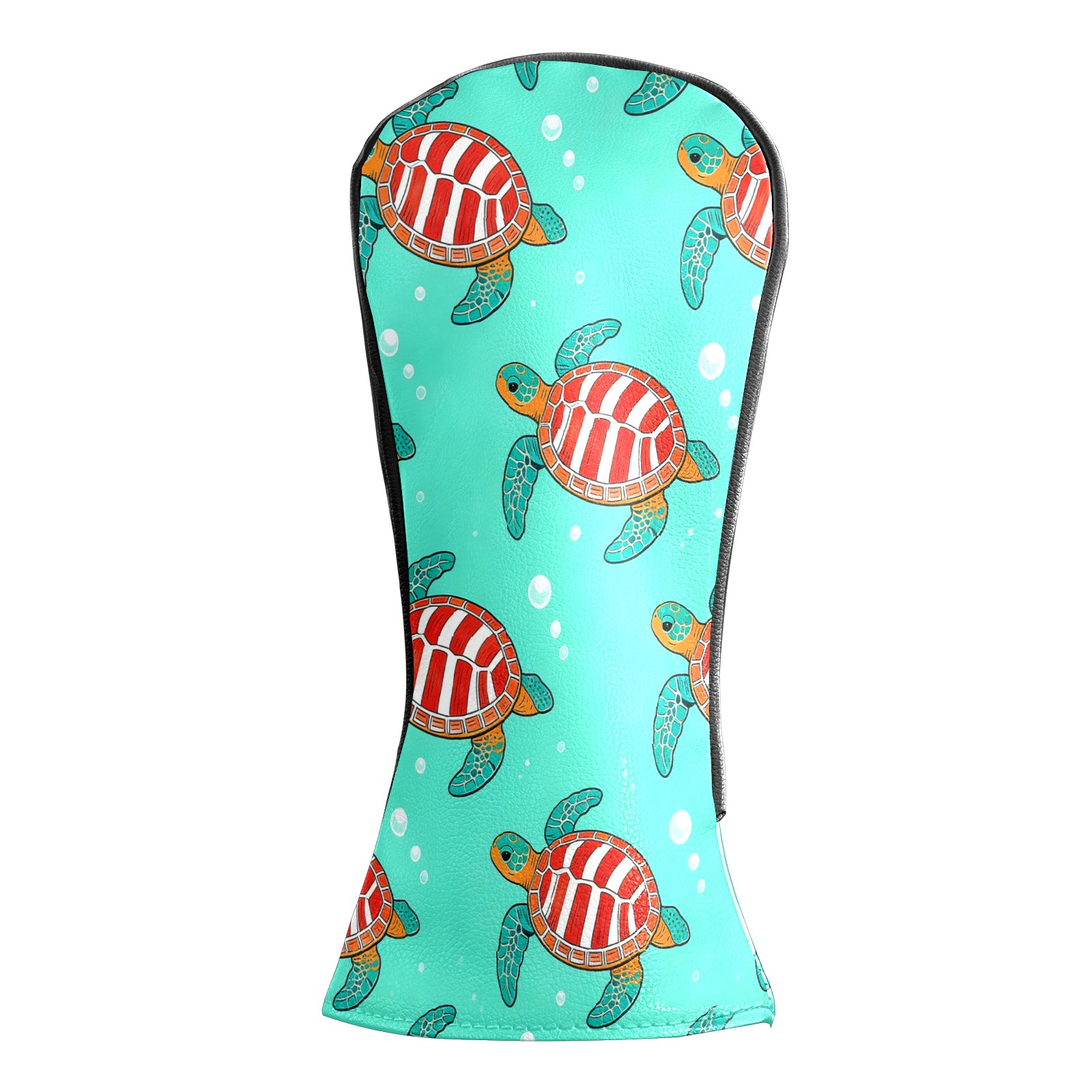 Golf Head Covers Leather Driver Head Cover, Premium Golf Club Covers with Anti-Scratch Lining for Women Men 1/3/5 Wood Cover for Golf Clubs (Sea Turtle)