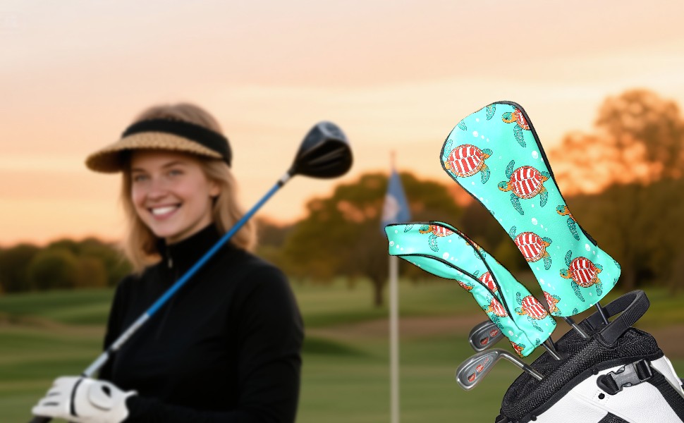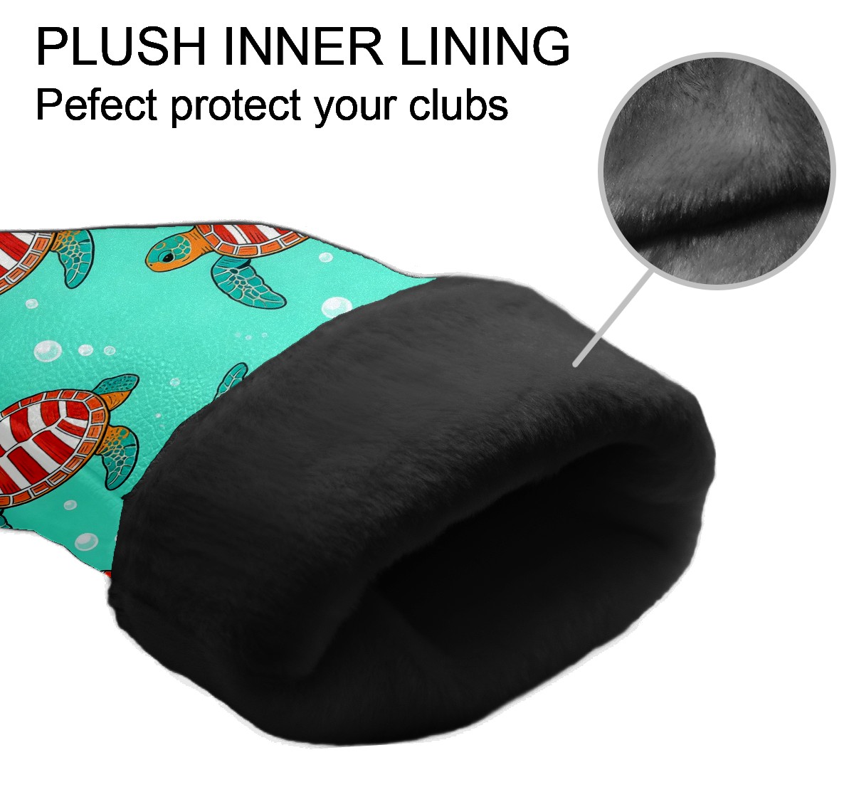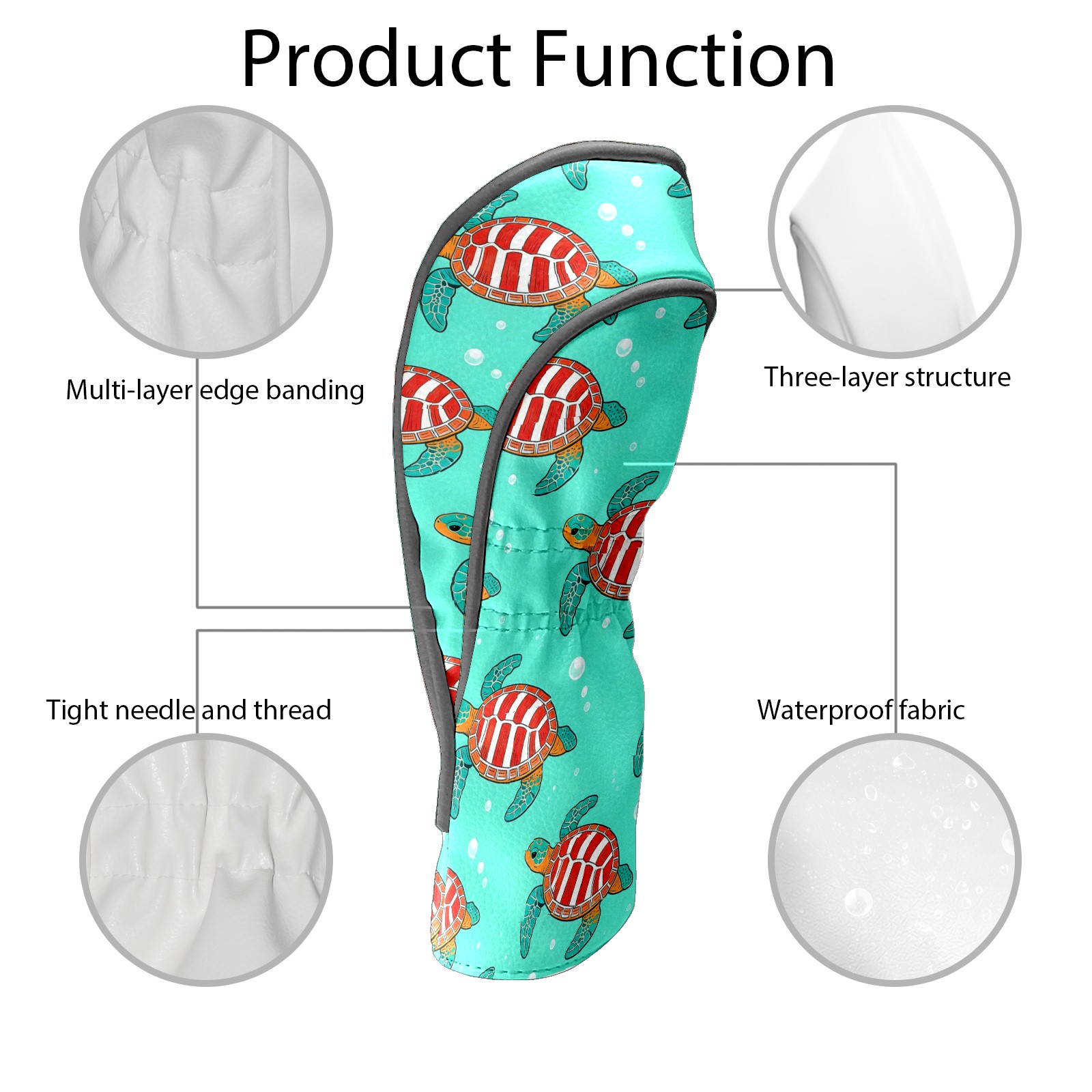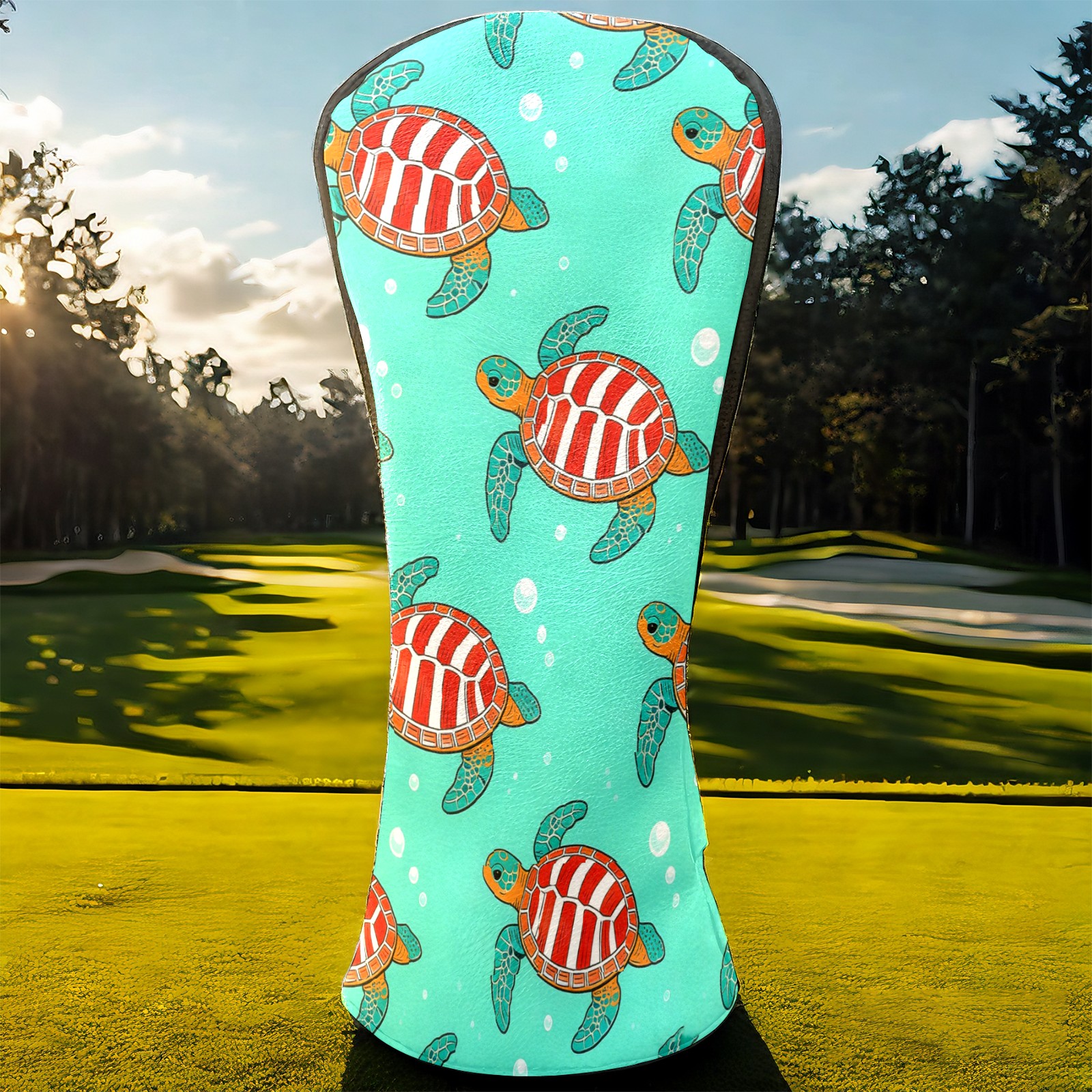 Golf Head Covers Leather Driver Head Cover, Premium Golf Club Covers with Anti-Scratch Lining for Women Men 1/3/5 Wood Cover for Golf Clubs (Sea Turtle)
