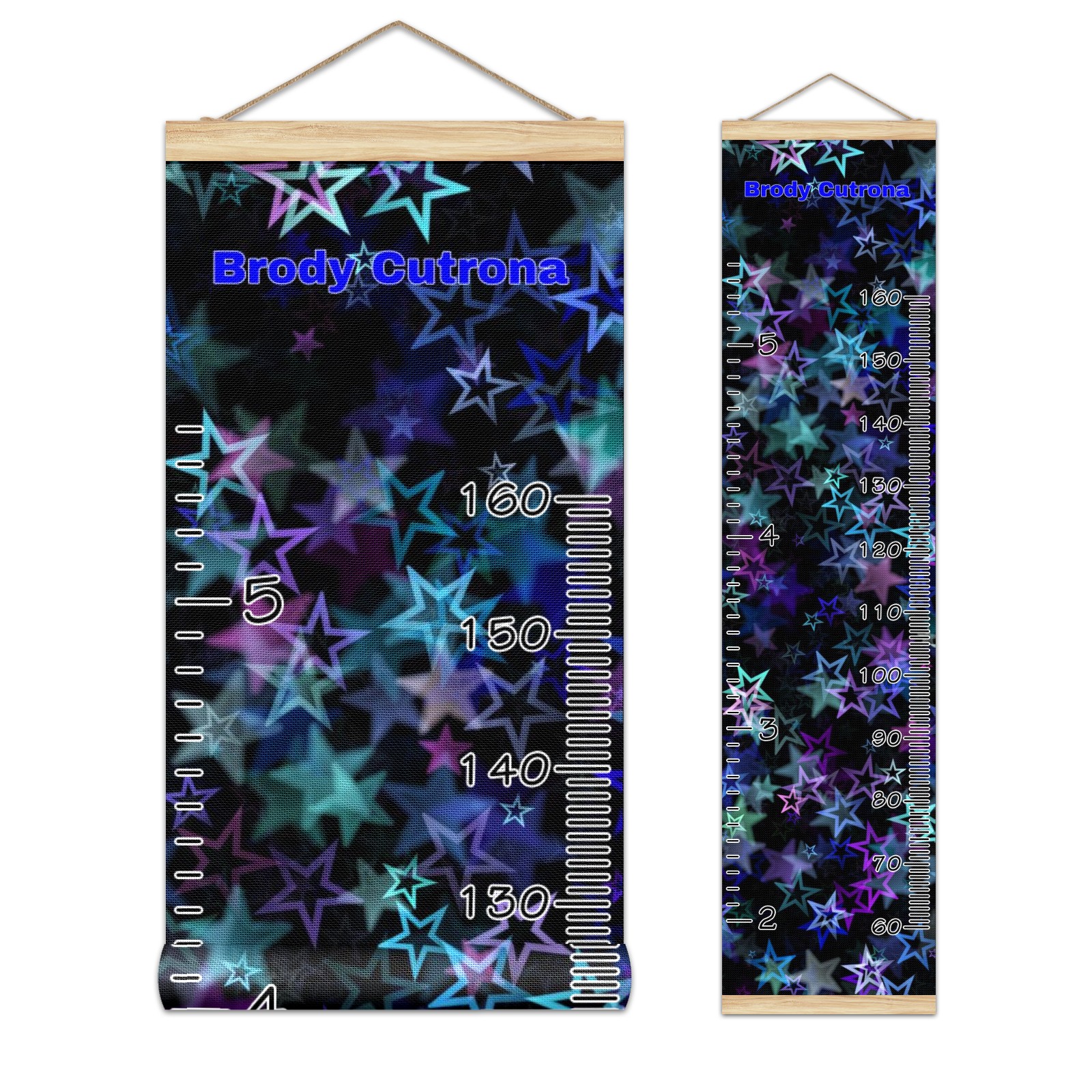 Personalized Kids Name Growth Chart Ruler for Wall Wood Frame Canvas Height Measure Chart 13.4x56 in Hanging Growth Chart Blue Pink Stars4.2 Boys Girls Room Decor