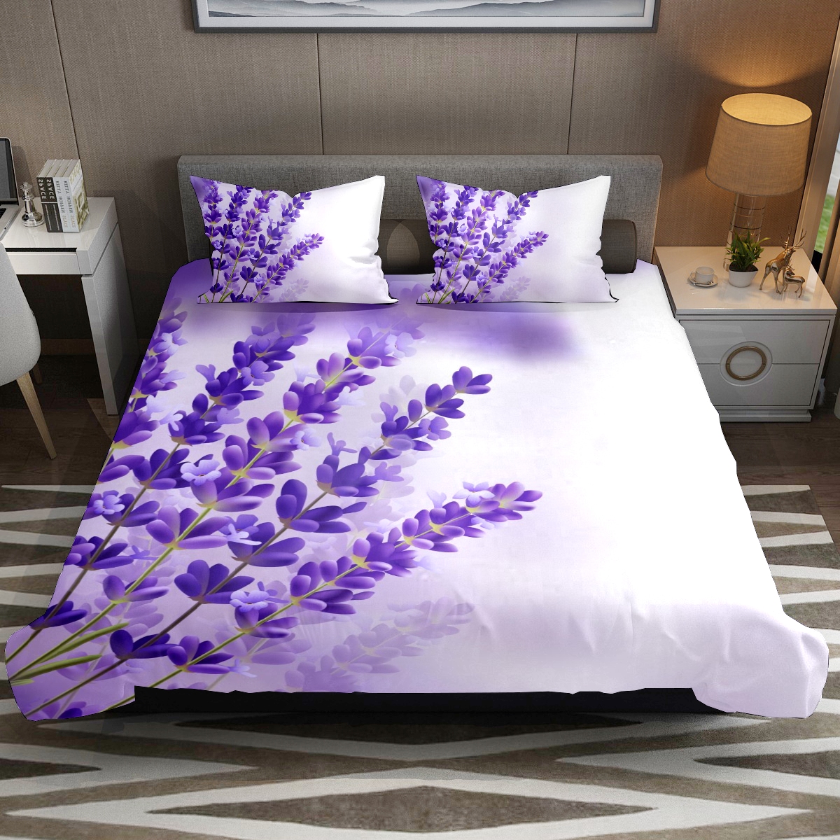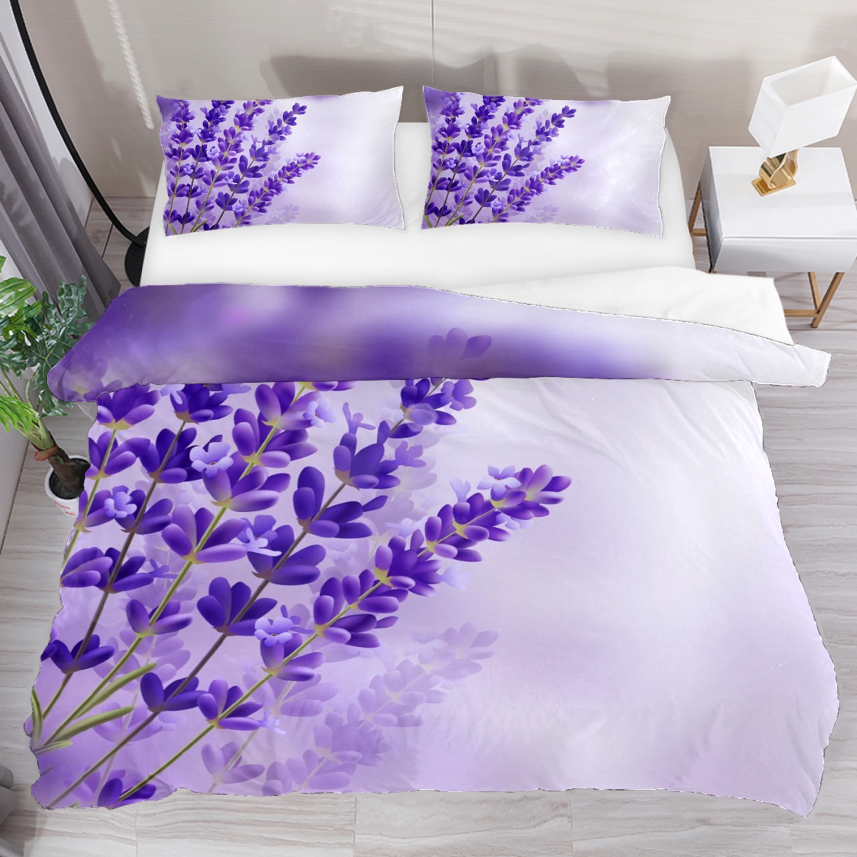 布団カバーセット シングル ラベンダー パープル 自然 ボックスシーツ 枕カバー 寝具カバー 柔らかい 子供用 洋式 和式 肌触り良い 洗濯機可能150*210