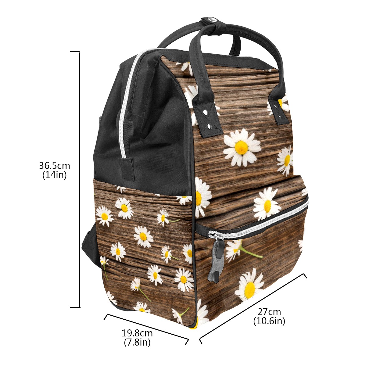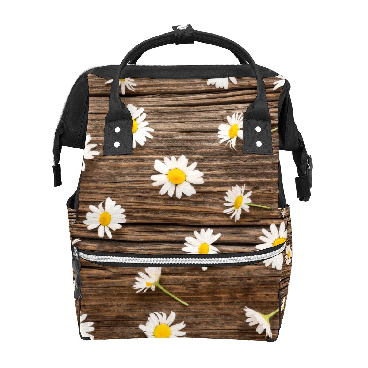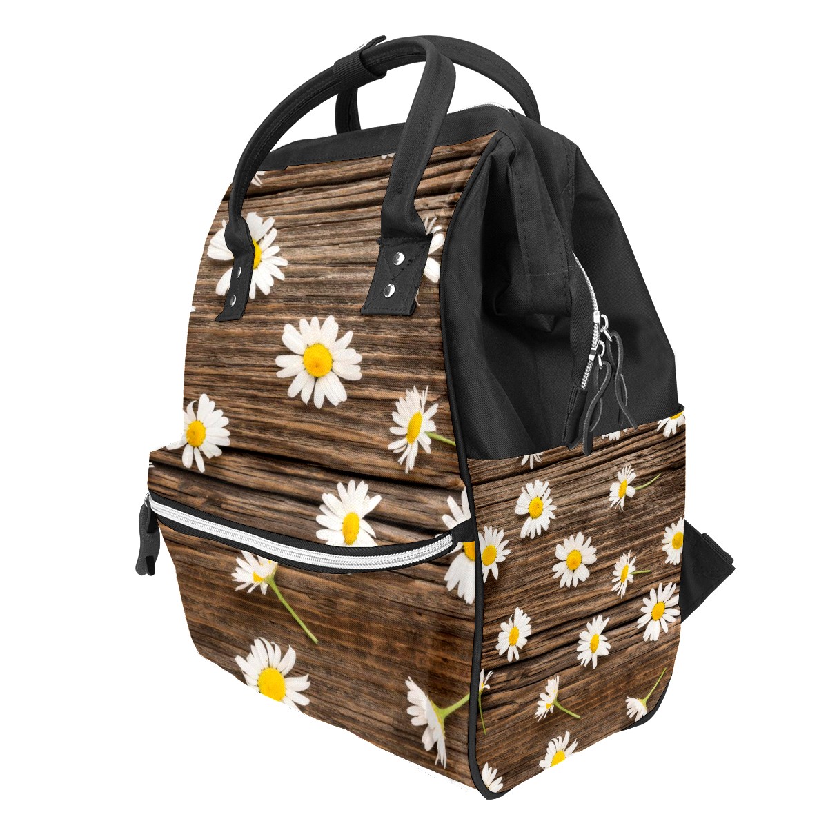 Backpack White Little Daisy Brown Wood Board Large Capacity Diaper Bag Travel Daypack