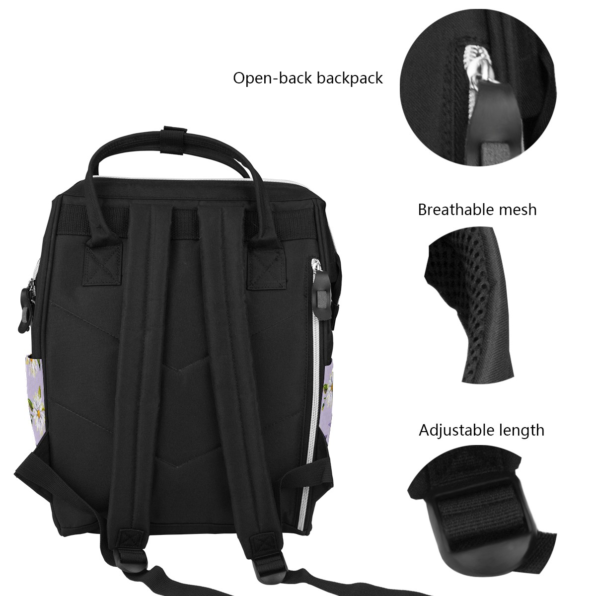 Backpack Watercolor White Daisy PurpleBackground Large Capacity Diaper Bag Travel Daypack