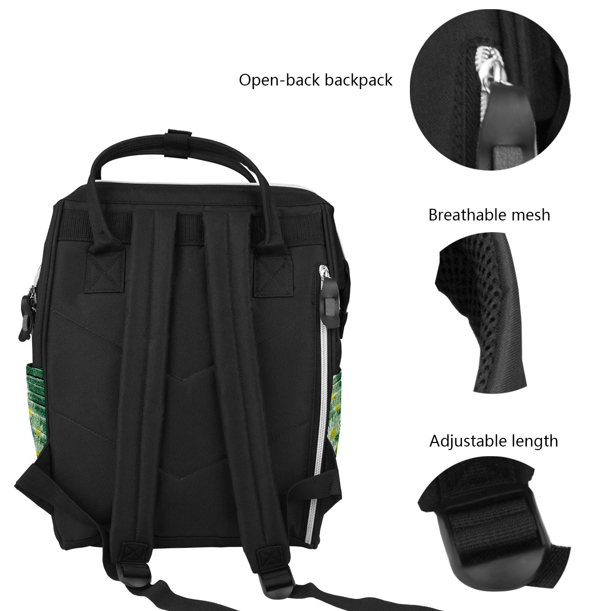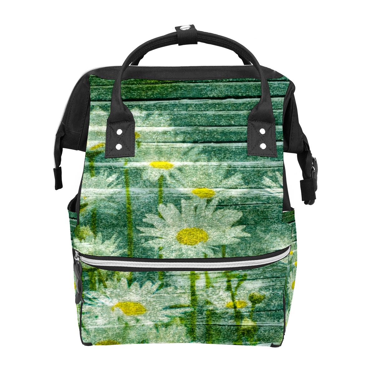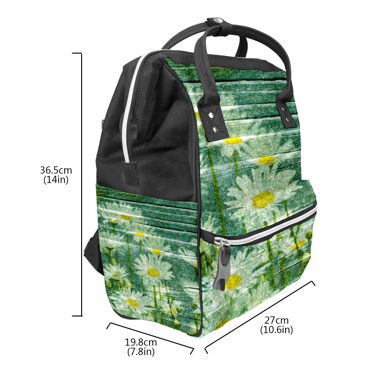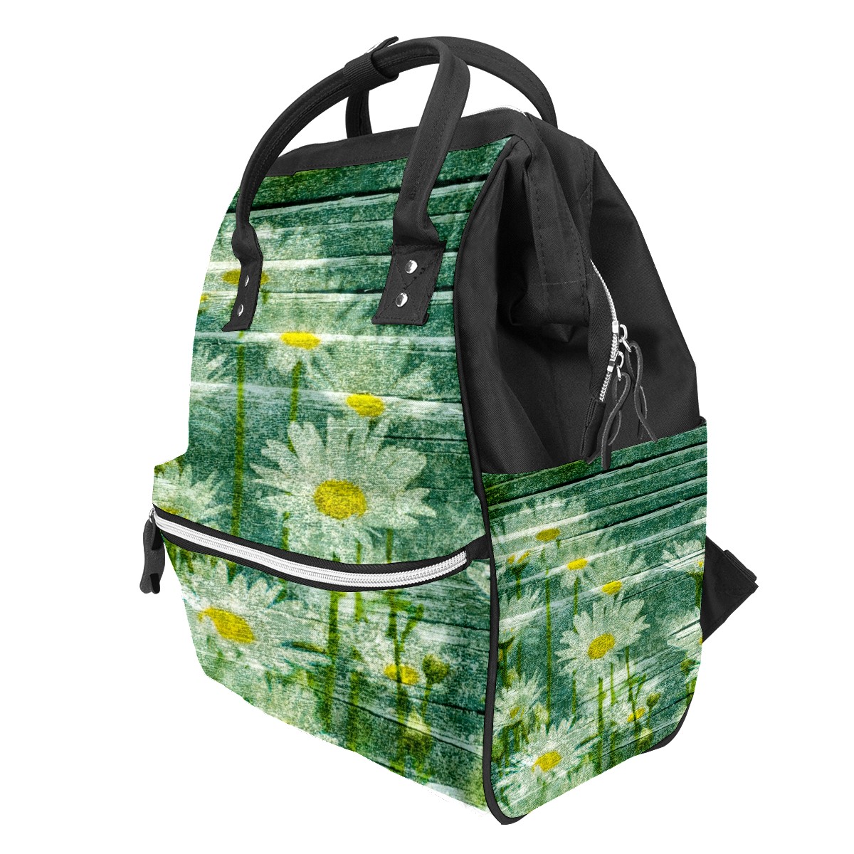 Backpack Rustic Green Wood Daisy Flower Large Capacity Diaper Bag Travel Daypack