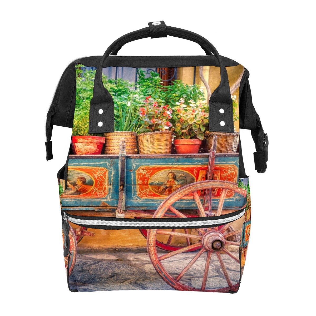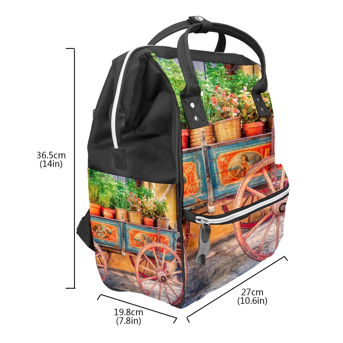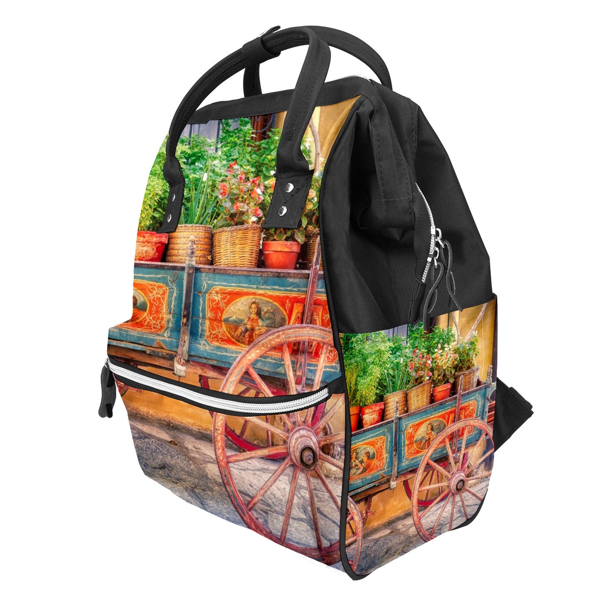 Backpack Potted Plants Cart Rustic Cabin Large Capacity Diaper Bag Travel Daypack