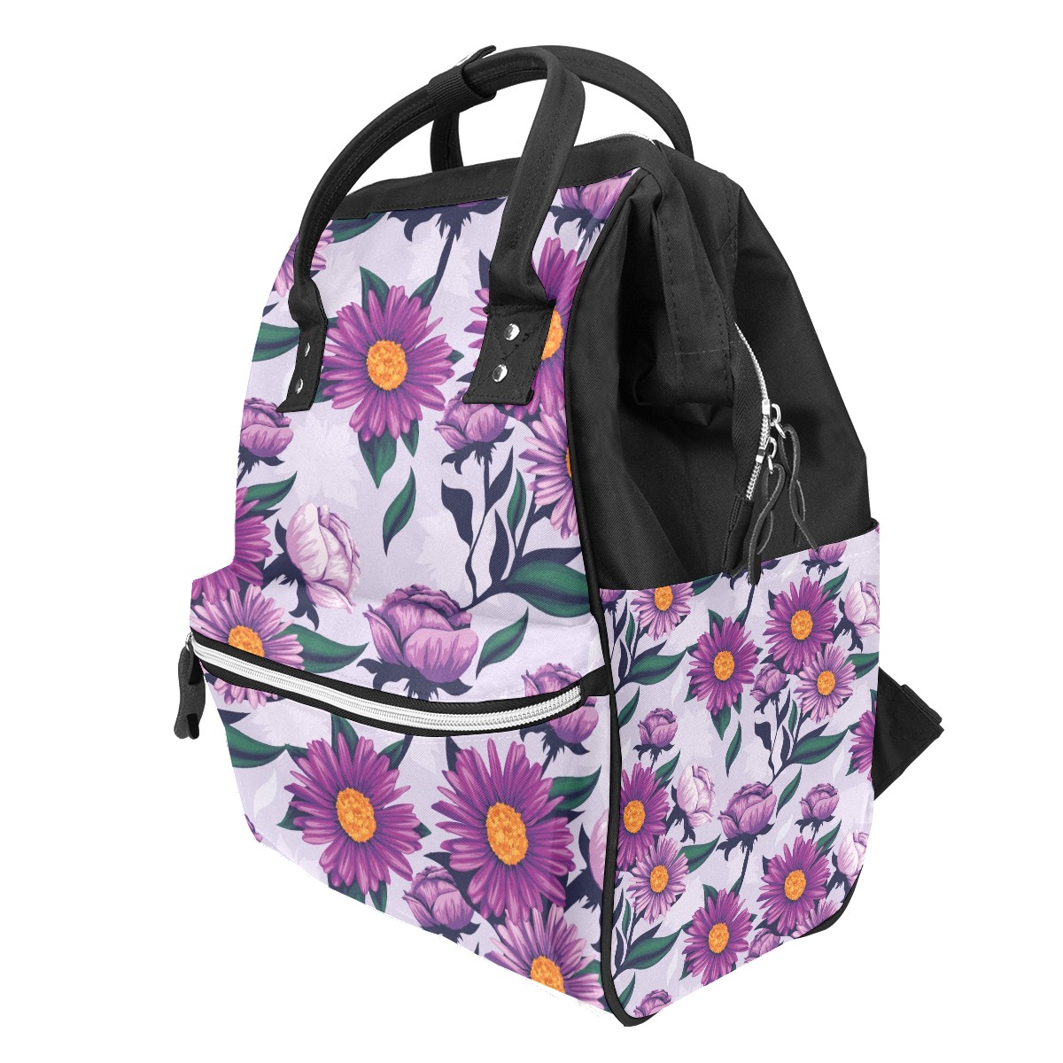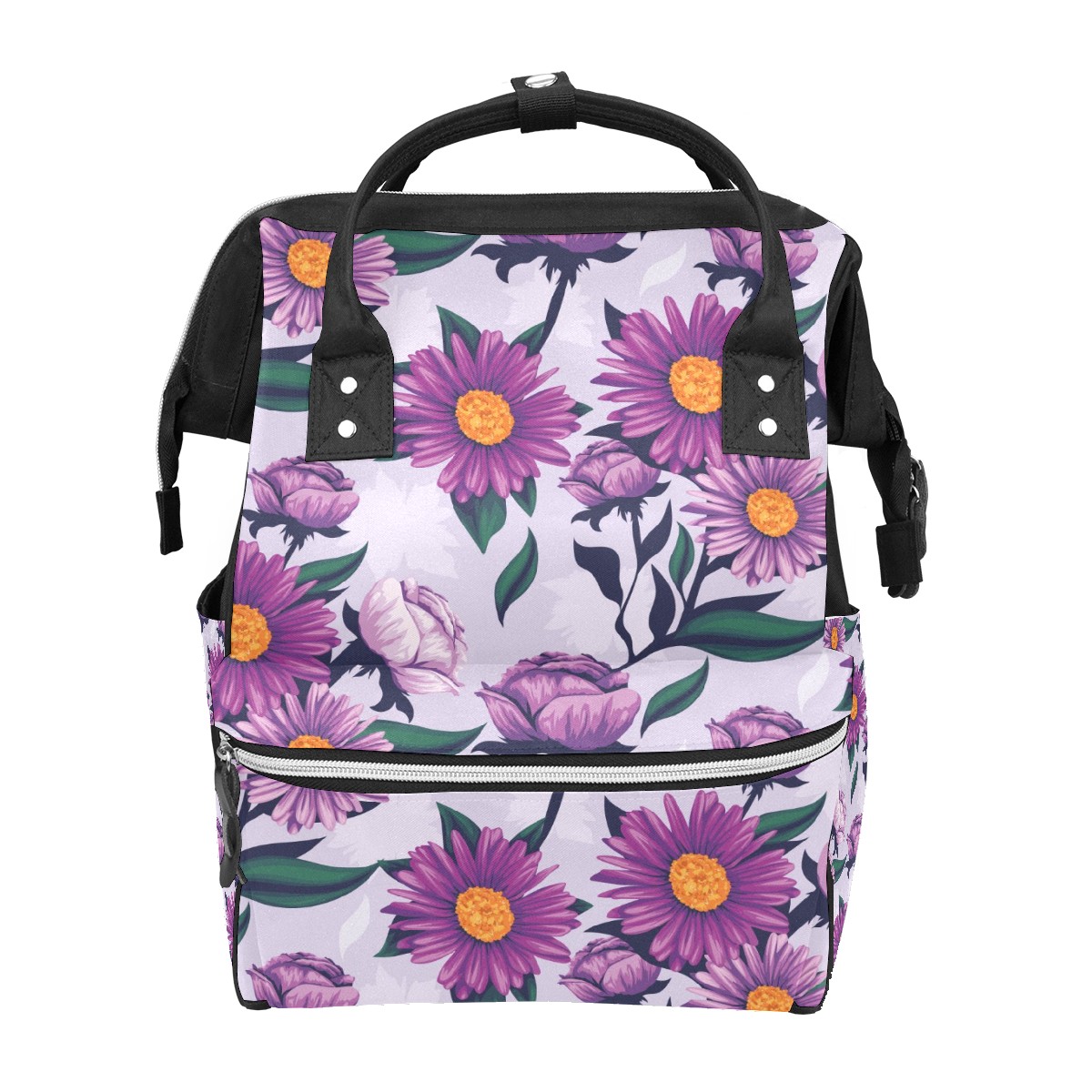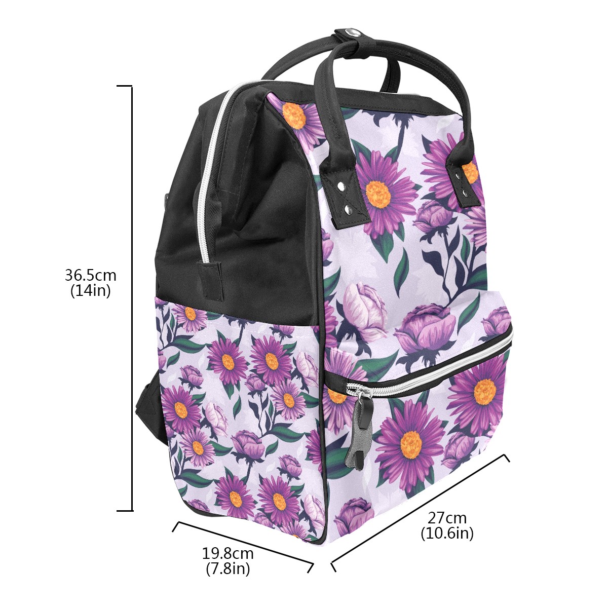 Backpack Purple Floral Pattern Watercolor Large Capacity Diaper Bag Travel Daypack