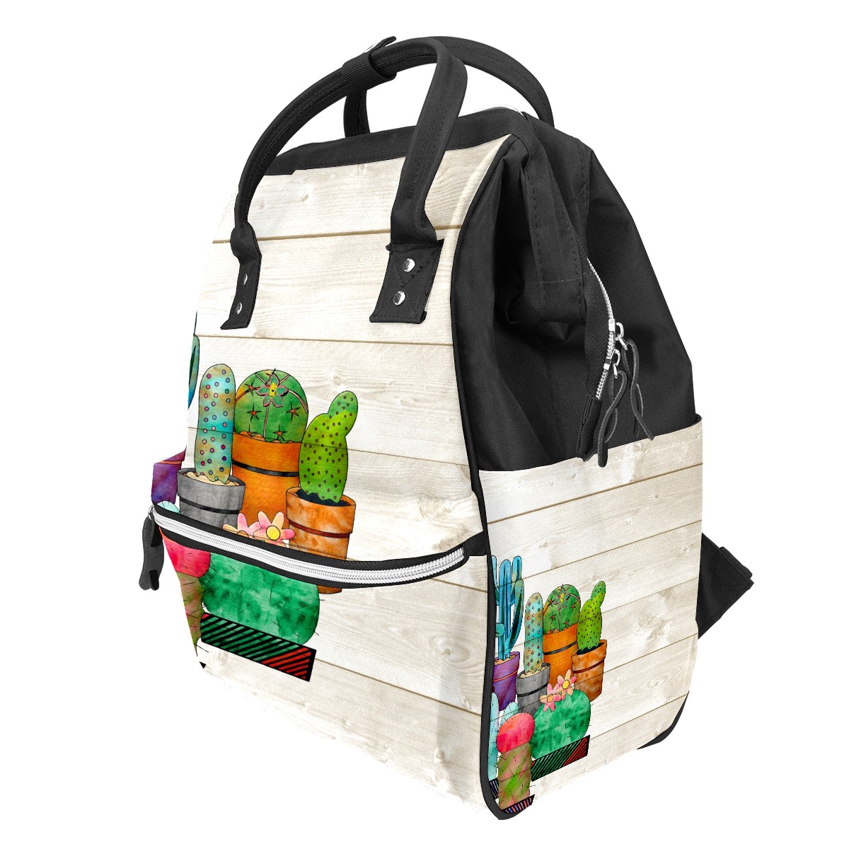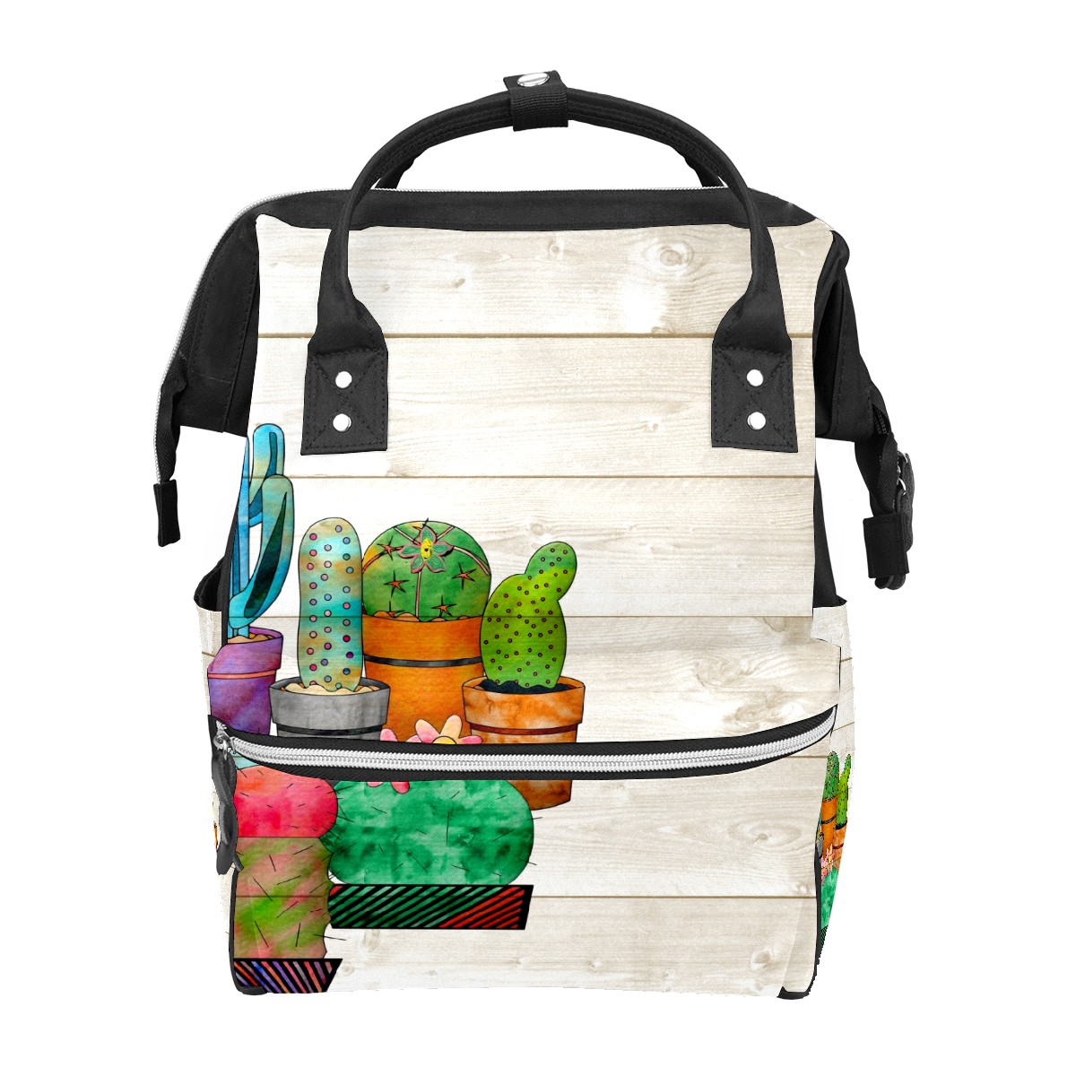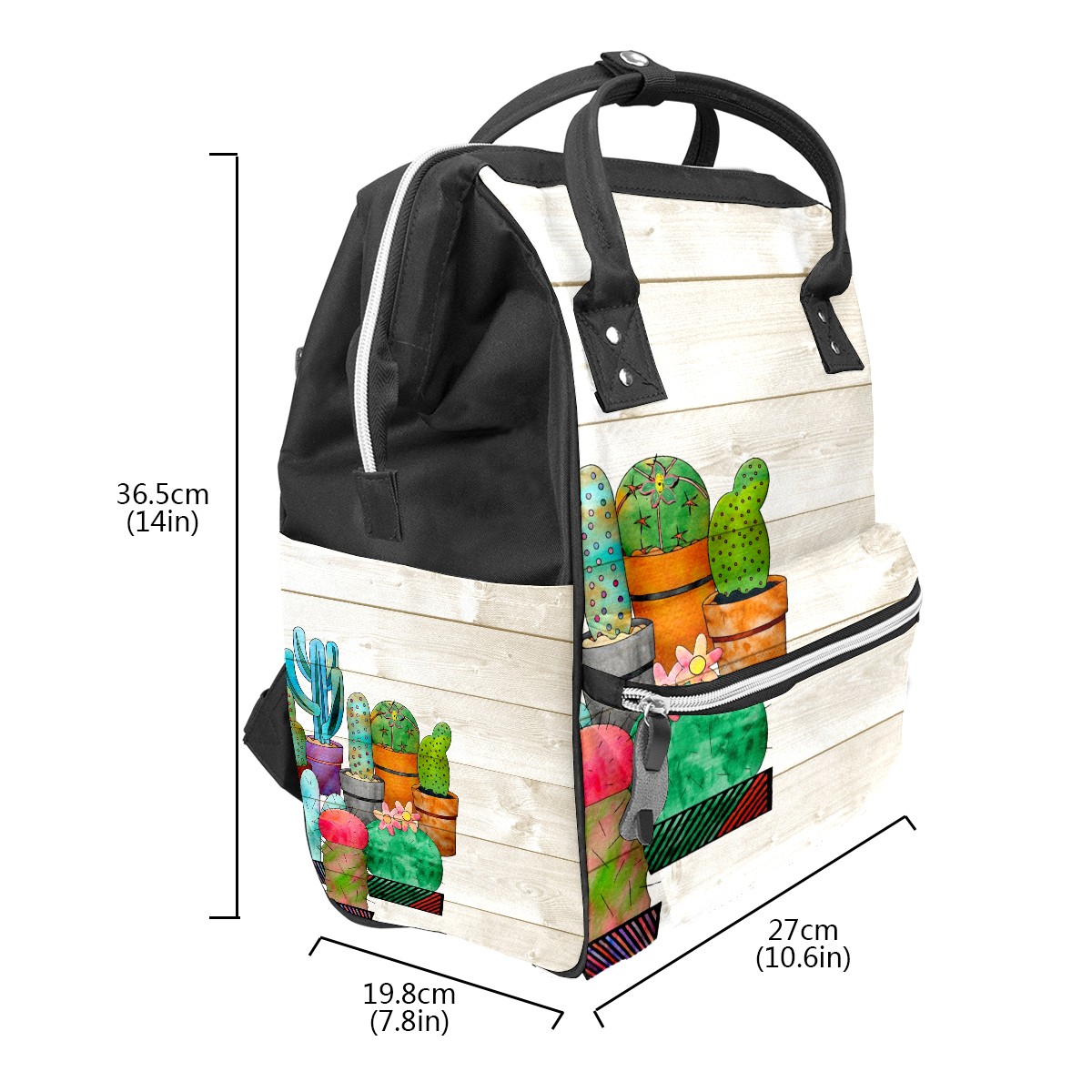 Backpack Potted Cactus Plant Gray Wood Board Large Capacity Diaper Bag Travel Daypack