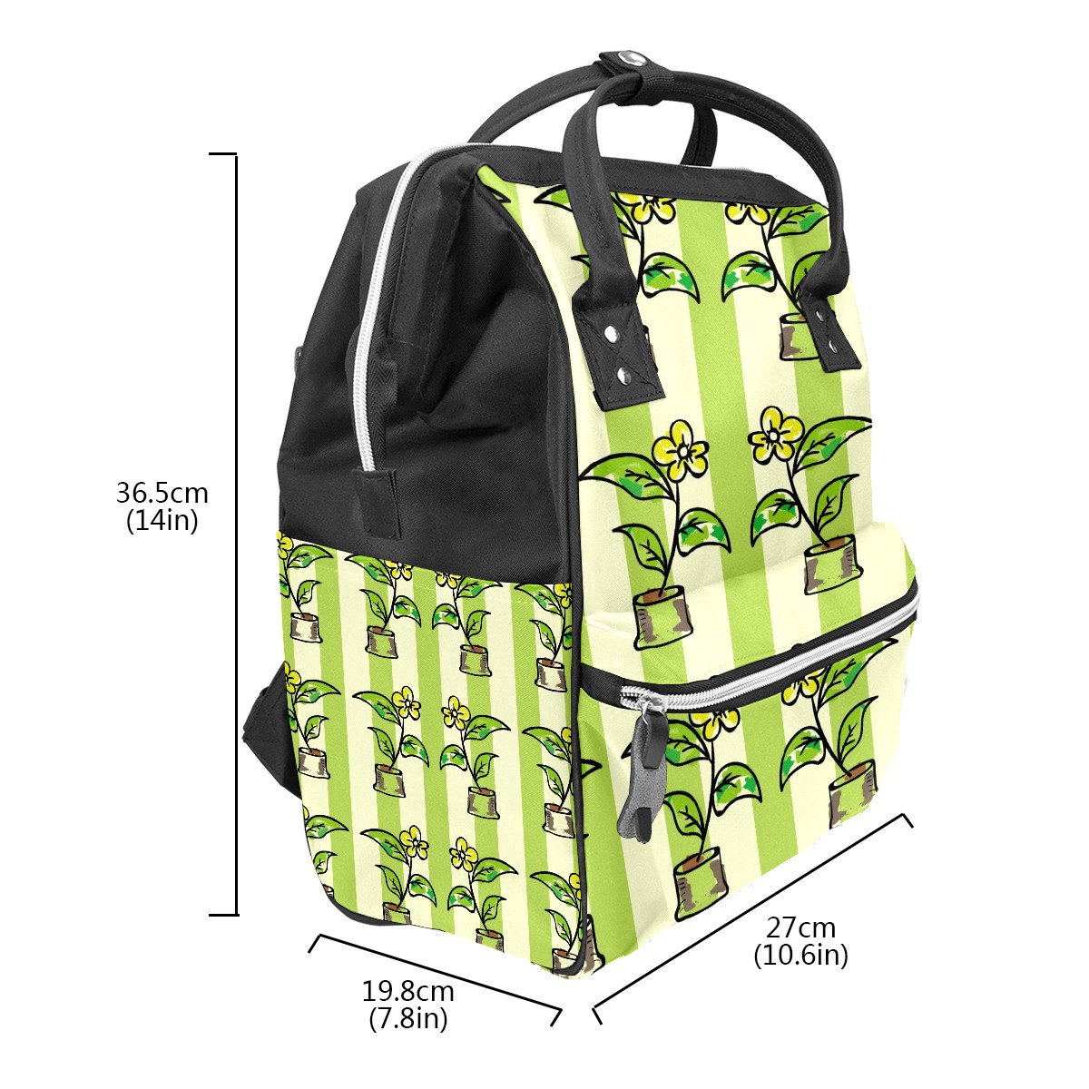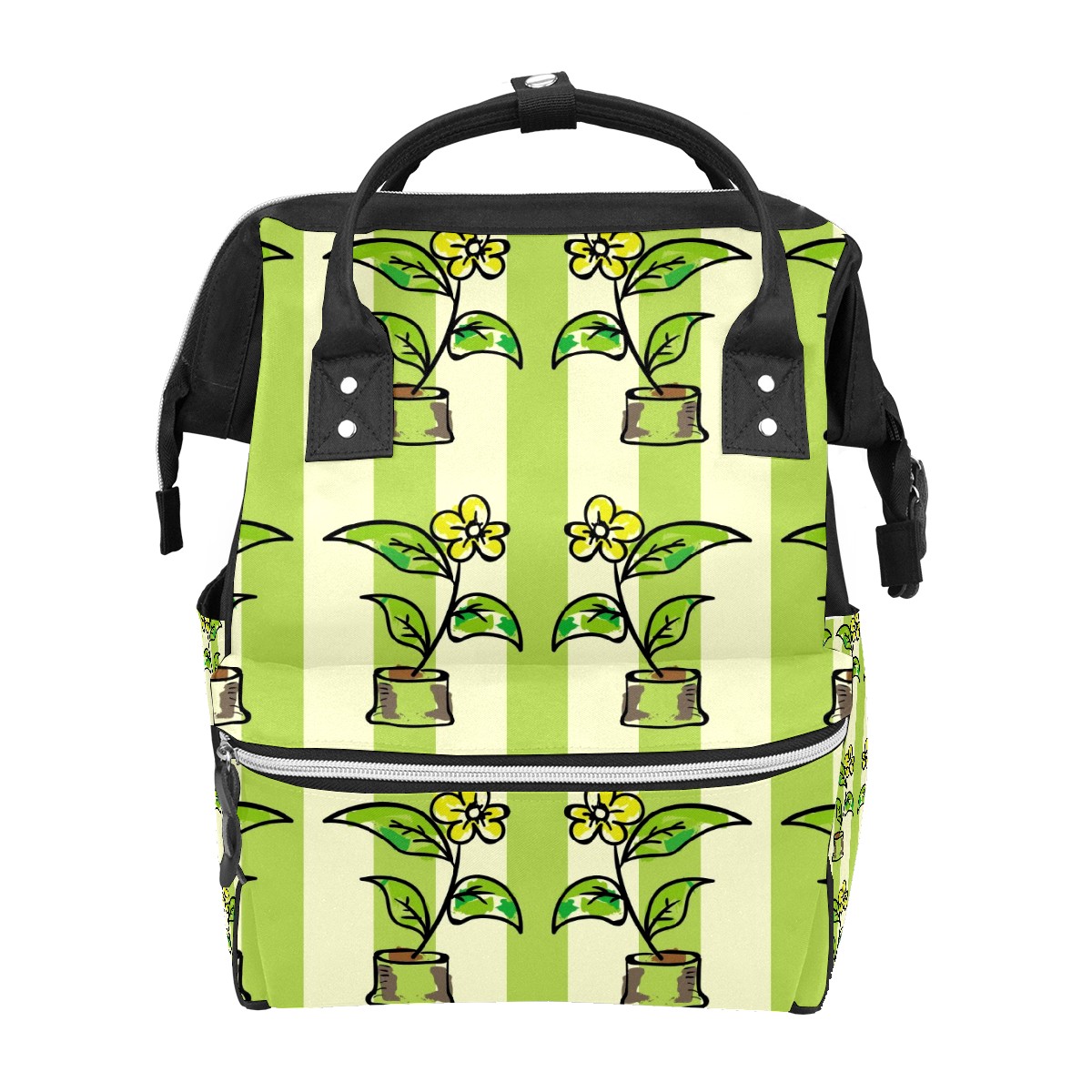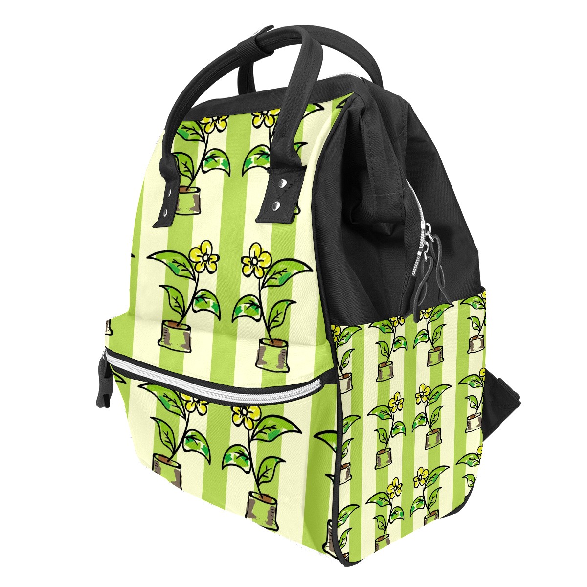 Backpack Potted Flowers Green Stripes Large Capacity Diaper Bag Travel Daypack
