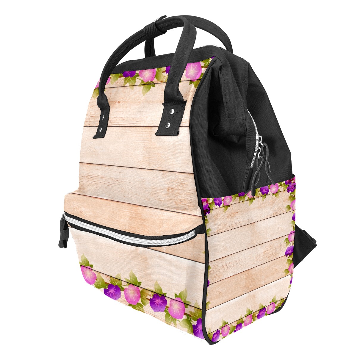 Backpack Pharbitis Floral Around Wood Barn Large Capacity Diaper Bag Travel Daypack