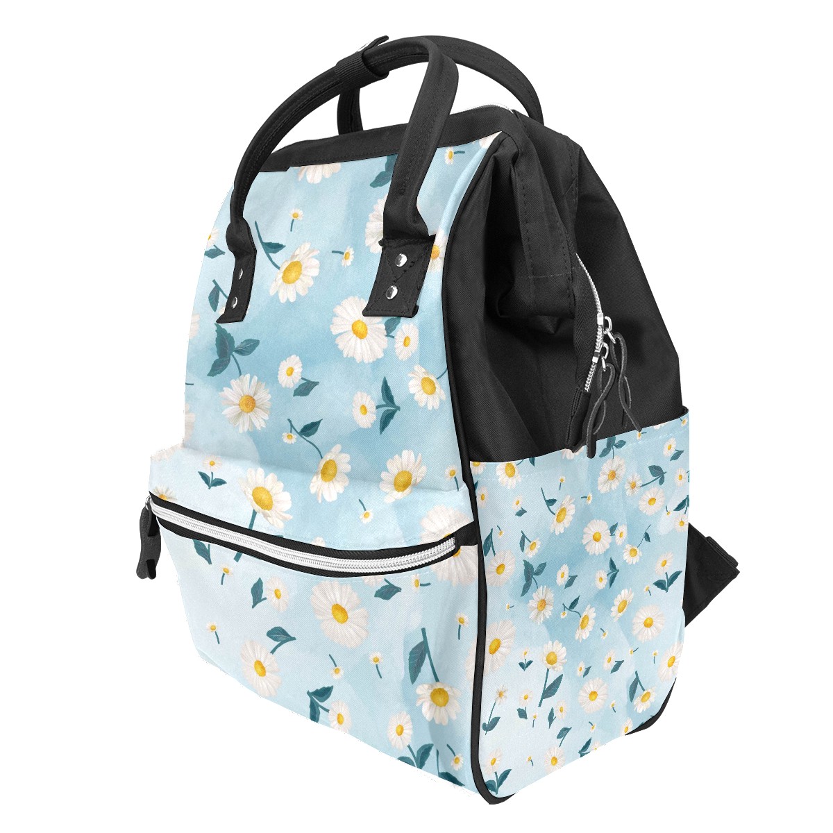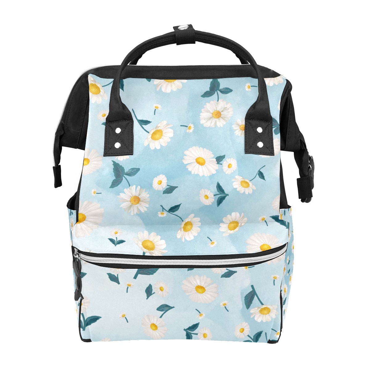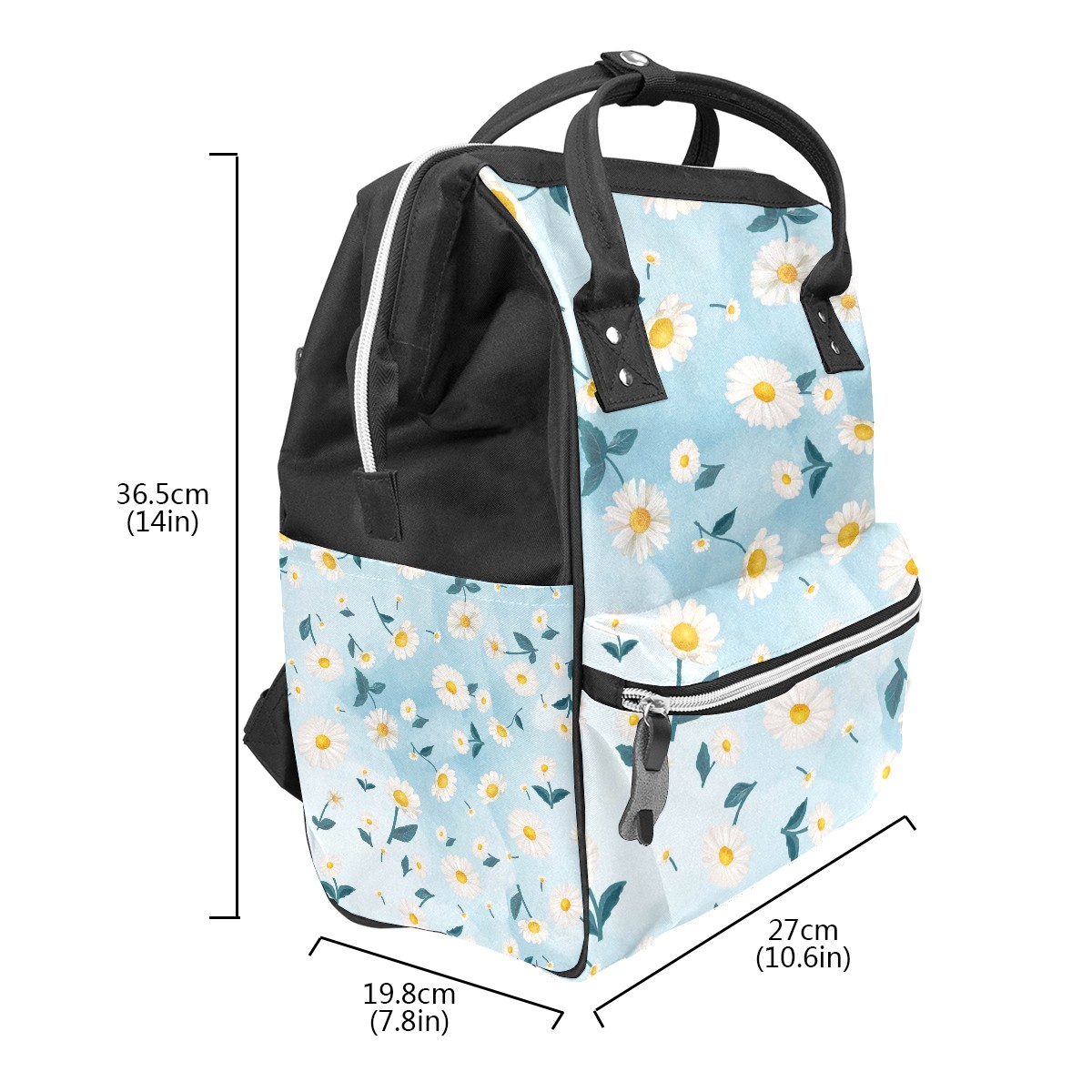 Backpack Little Daisy Flower Light Blue Background Large Capacity Diaper Bag Travel Daypack