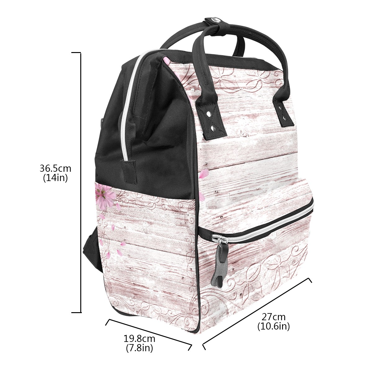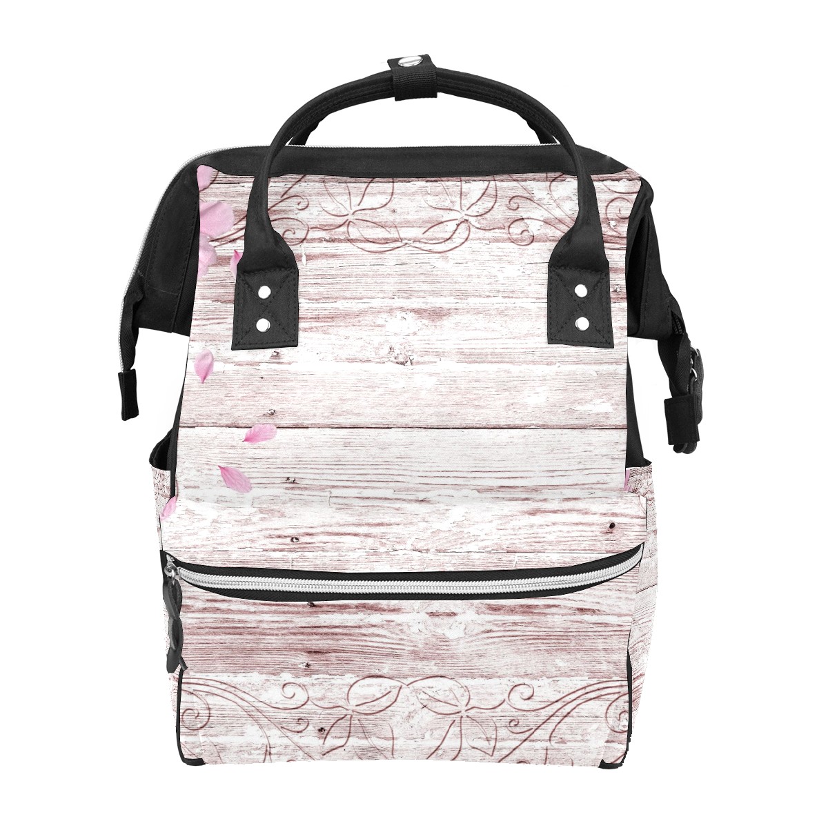 Backpack Grey Pink Rustic Wood Barn Board Floral Large Capacity Diaper Bag Travel Daypack