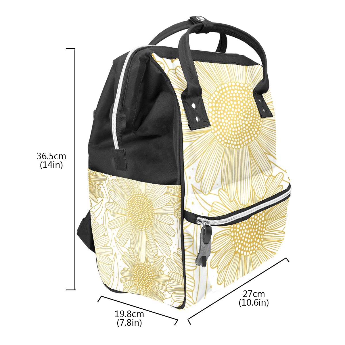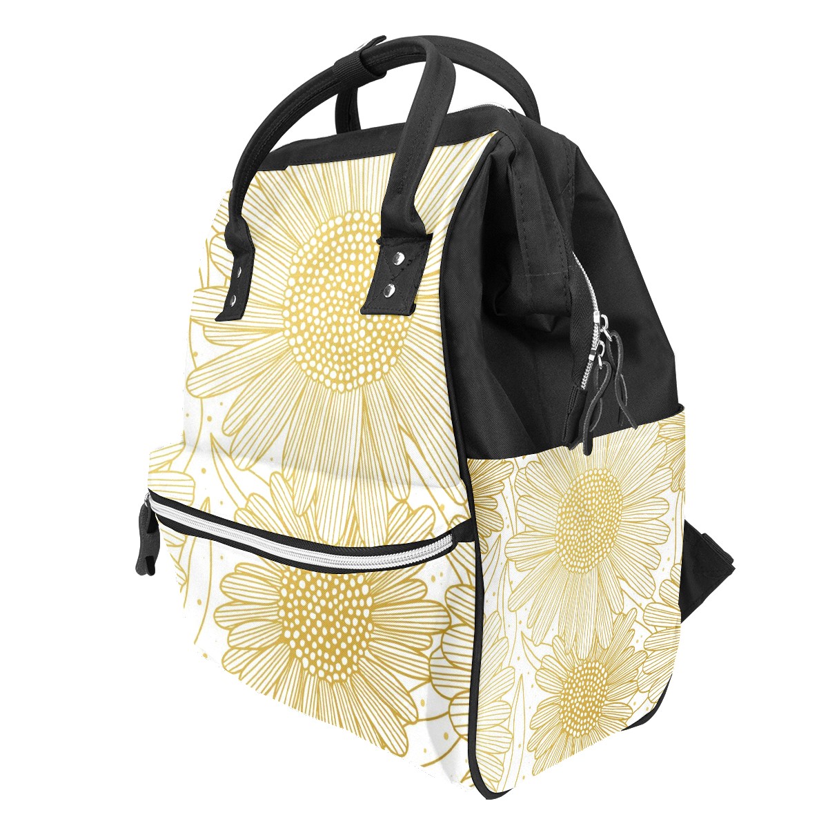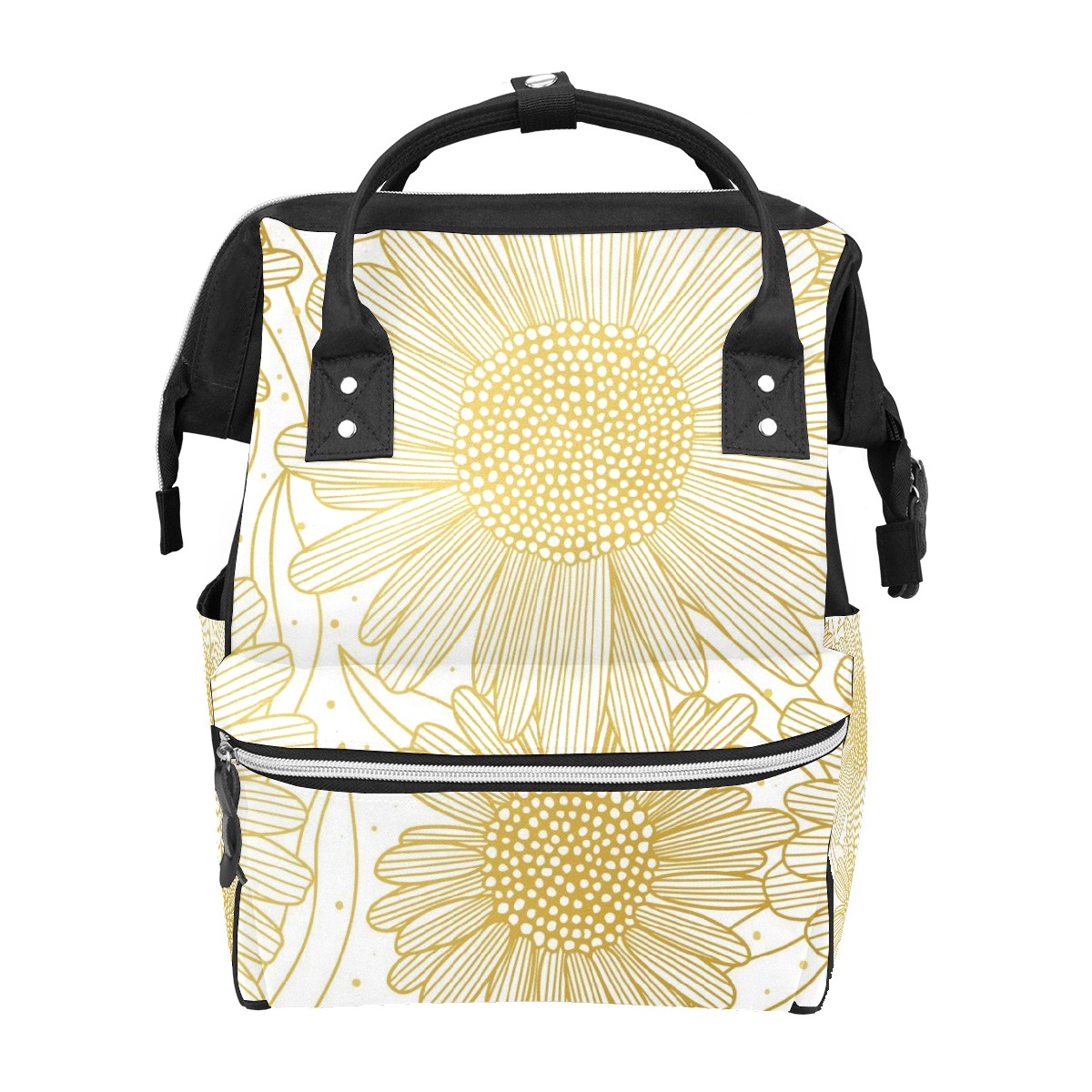 Backpack Golden Hand Drawn Sunflower Pattern Large Capacity Diaper Bag Travel Daypack