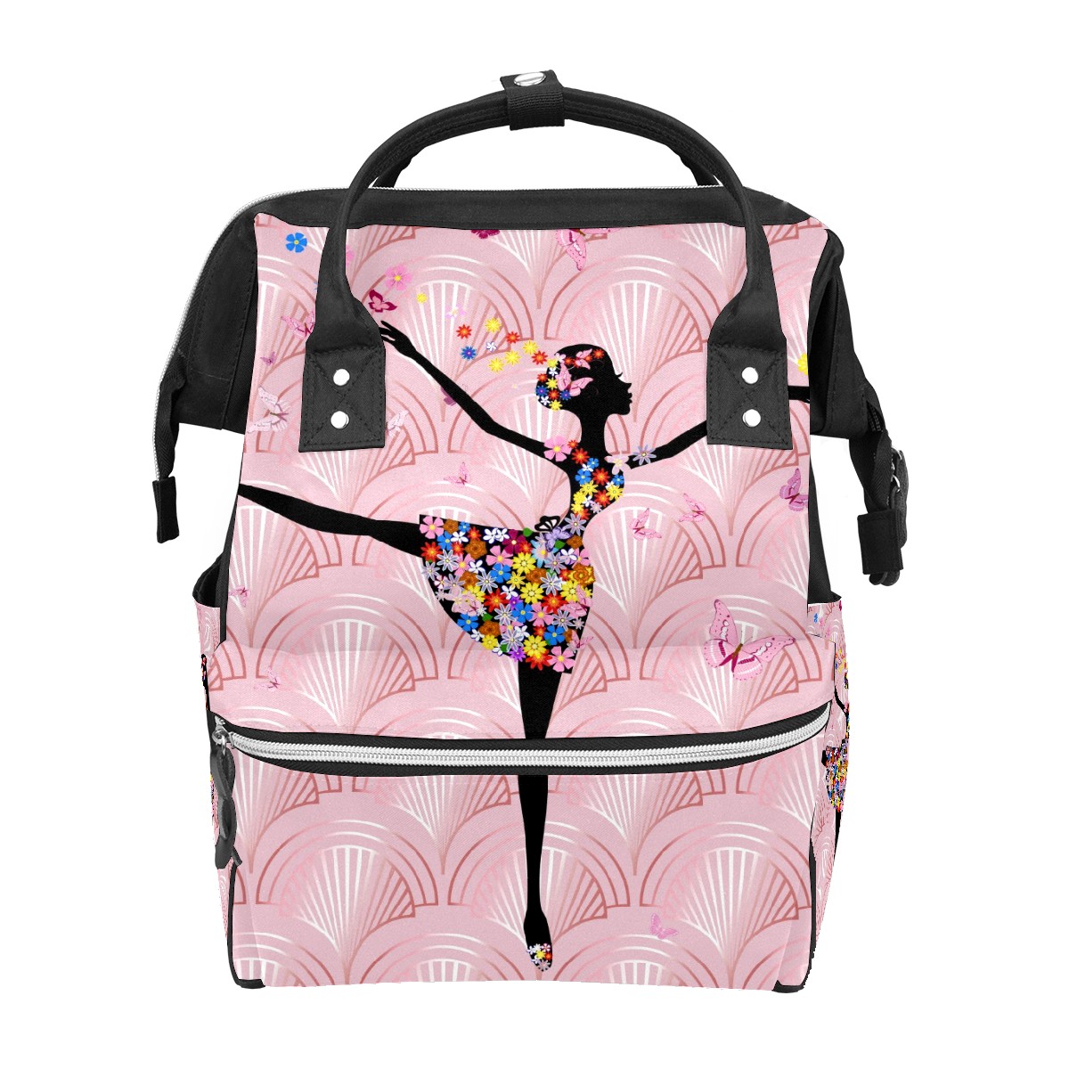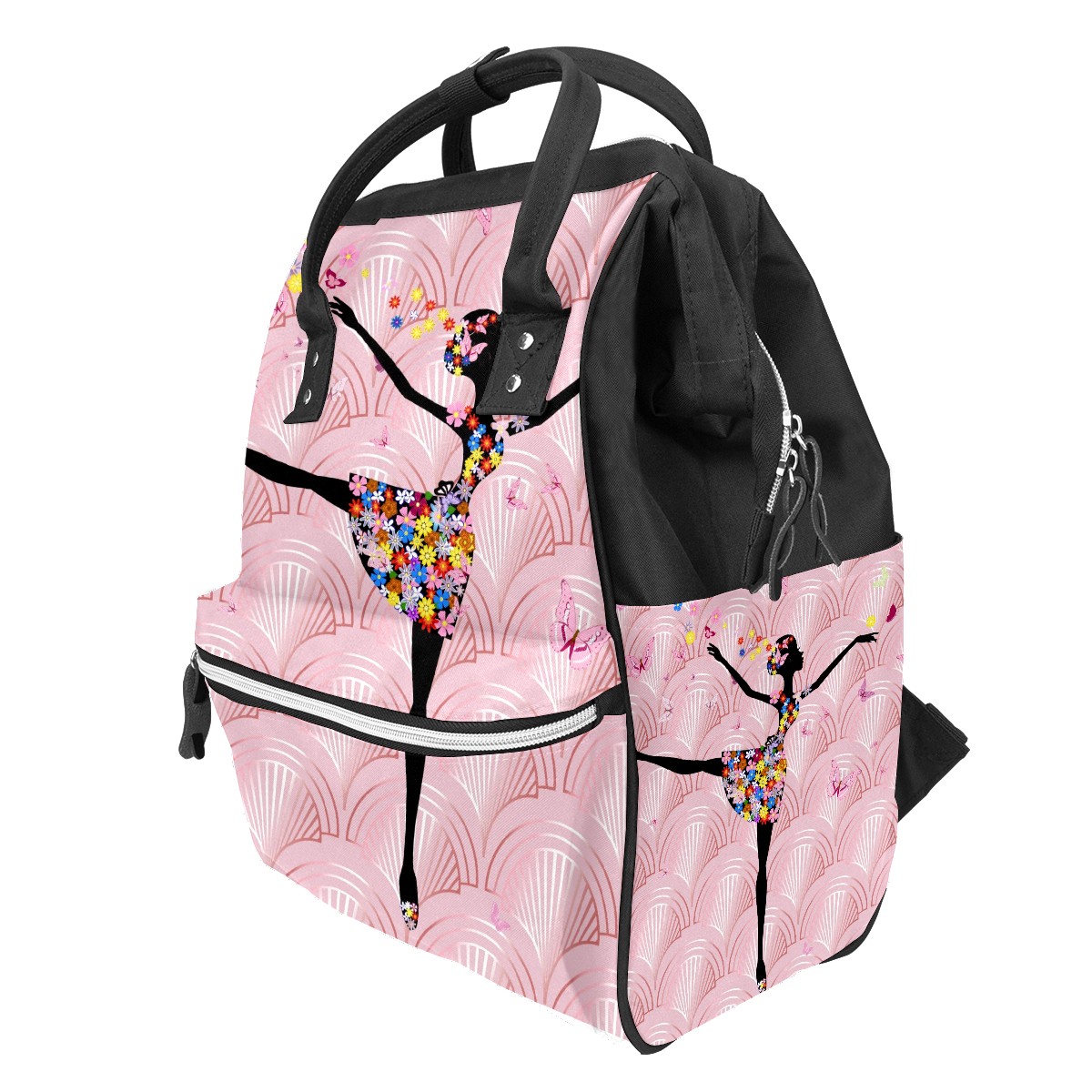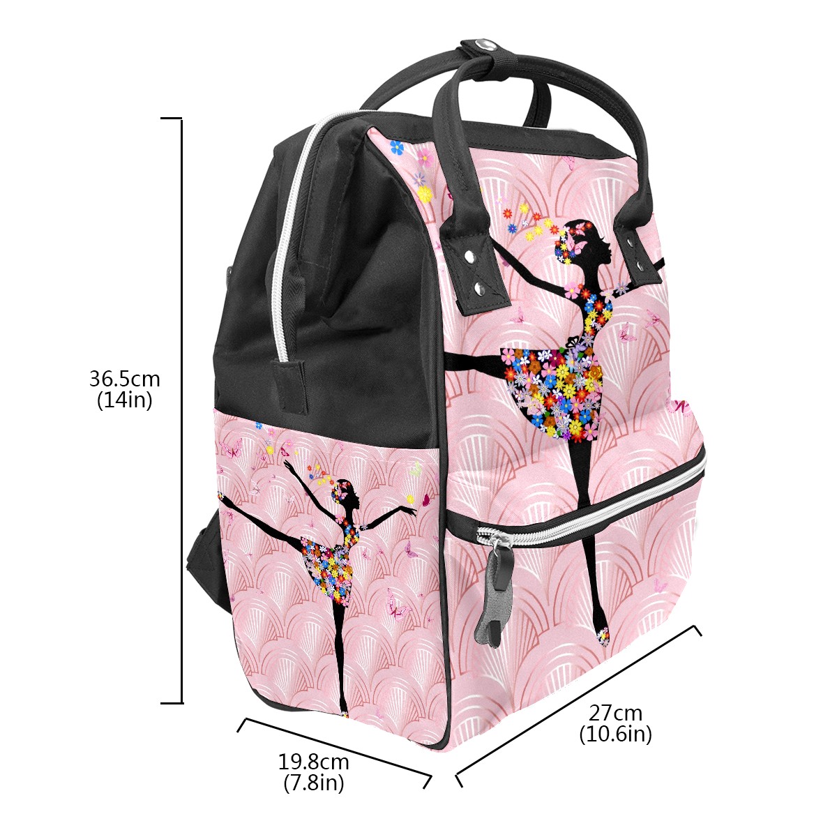Backpack Floral Ballet Girl Pink Scale Pattern Large Capacity Diaper Bag Travel Daypack