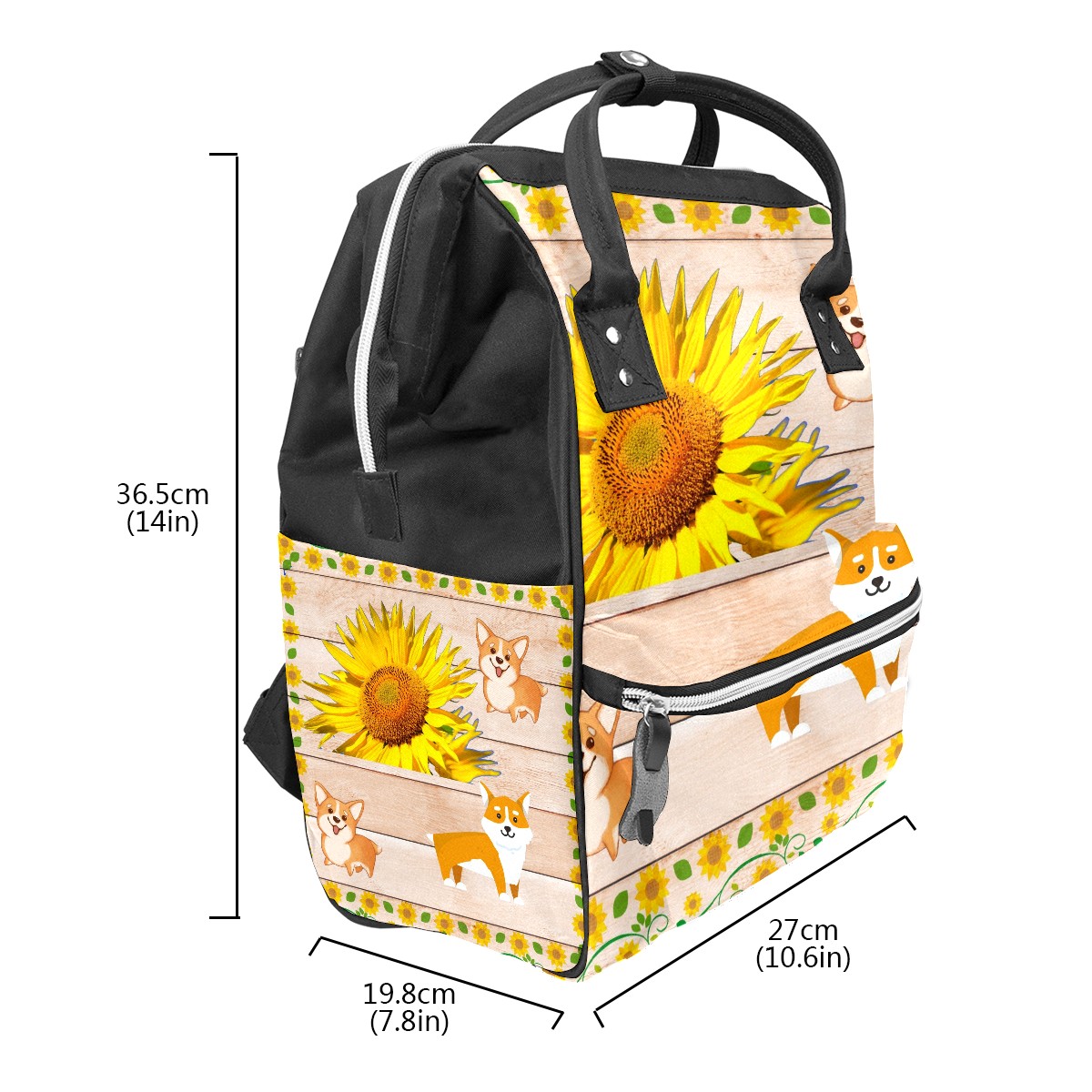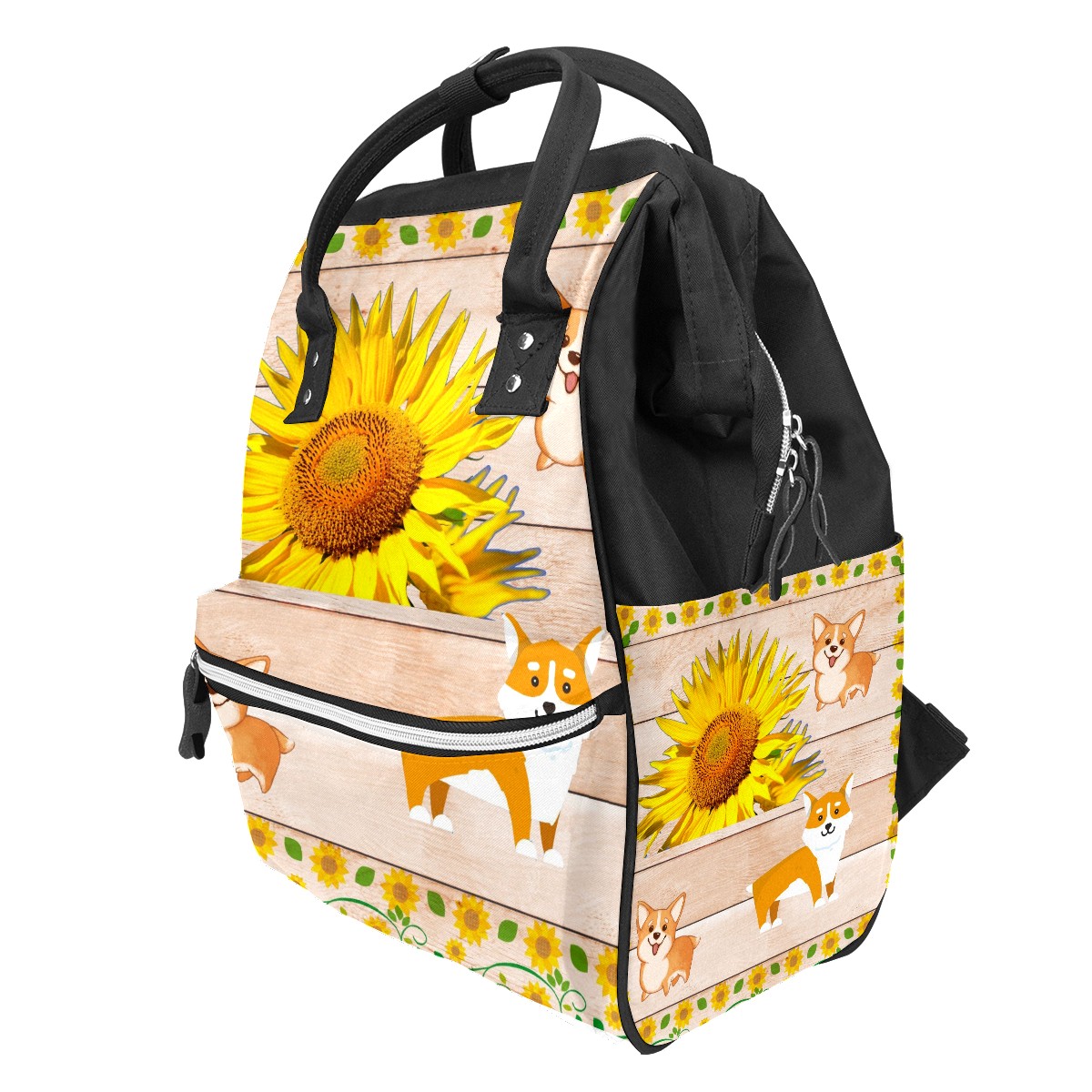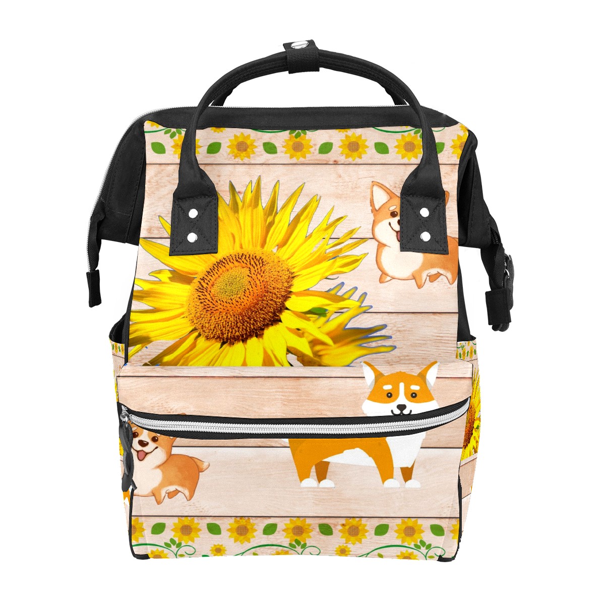Backpack Floral Arround Pattern Corgi Sunflower Wood Large Capacity Diaper Bag Travel Daypack