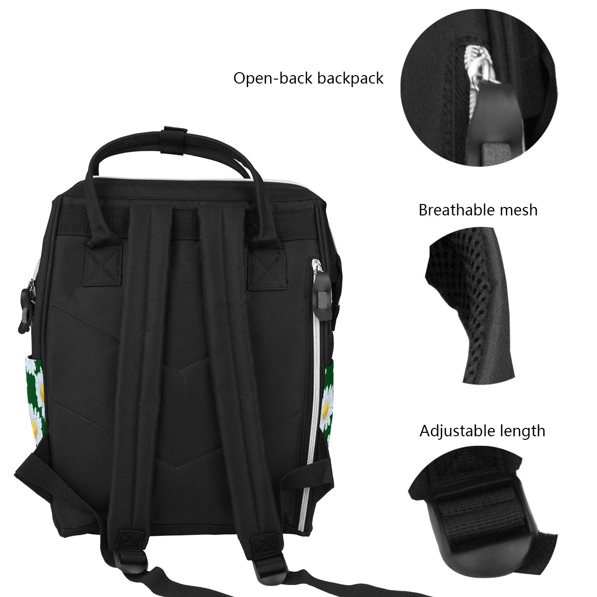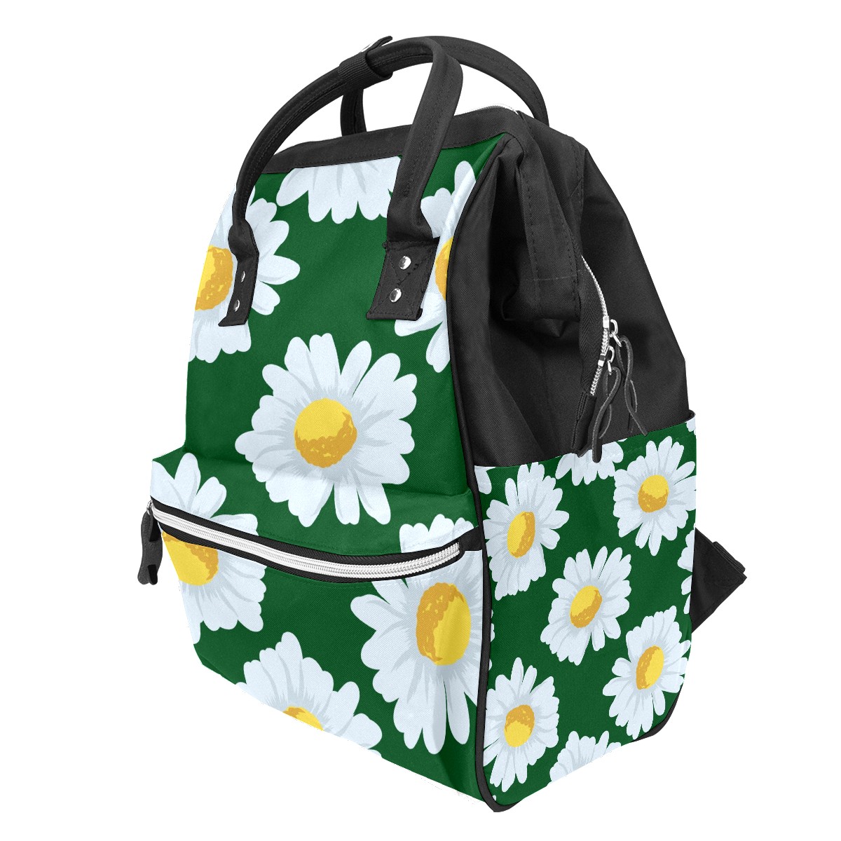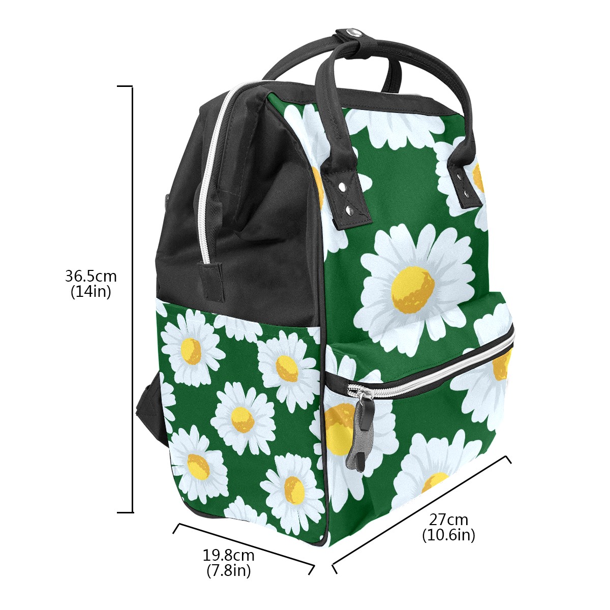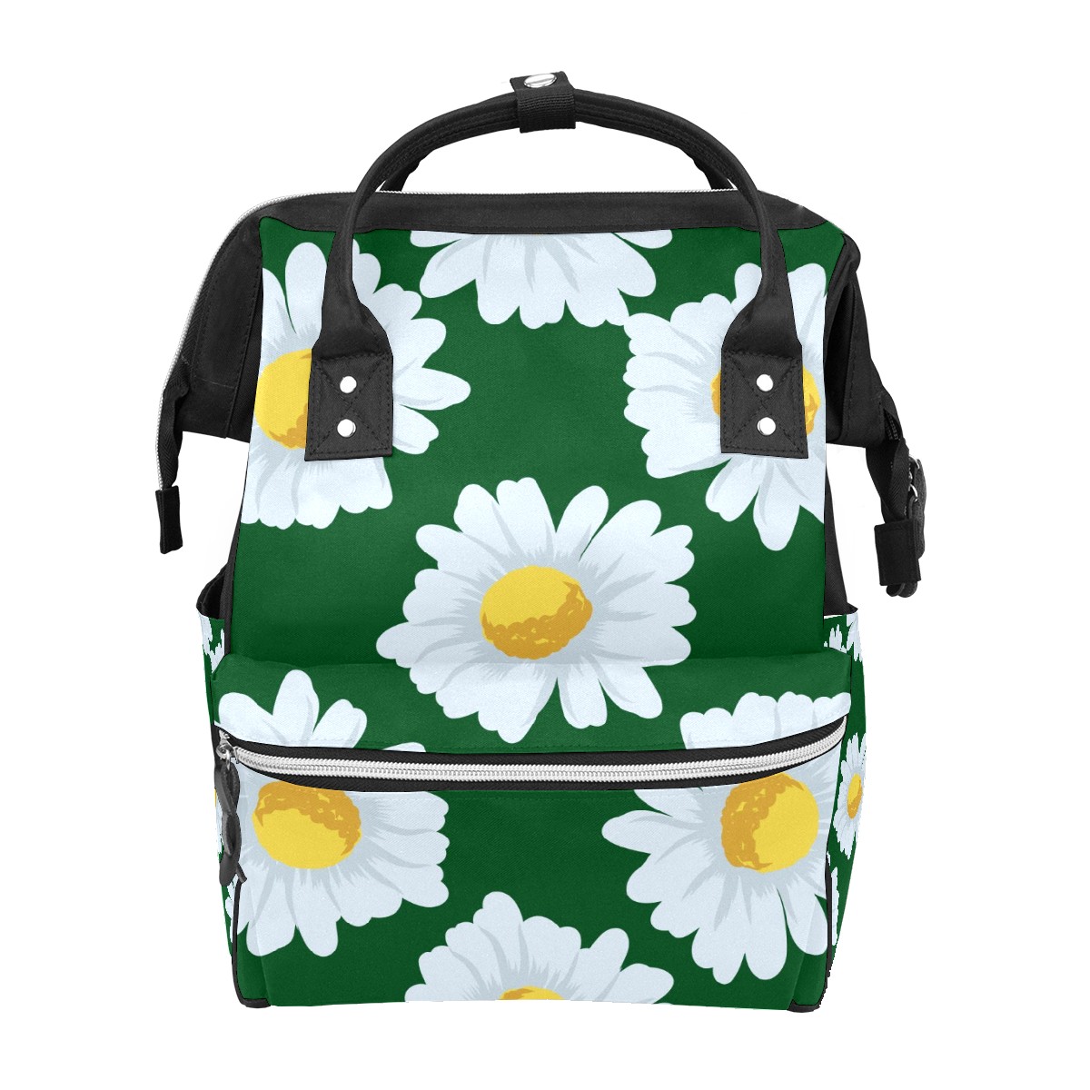 Backpack Chamomile Flowers Green Background Large Capacity Diaper Bag Travel Daypack