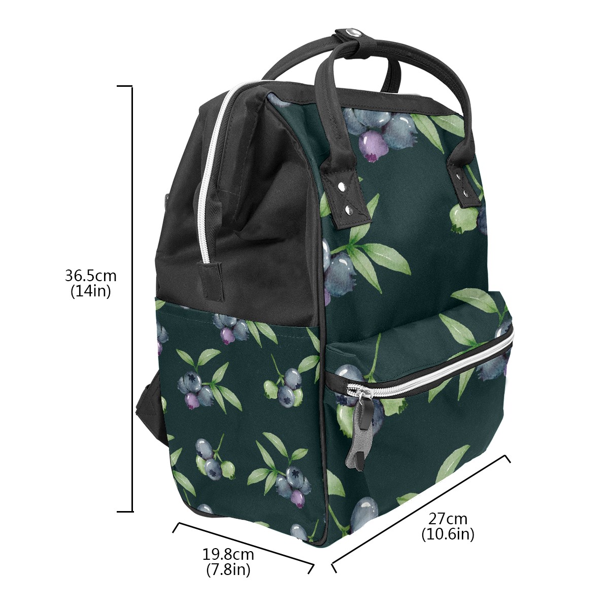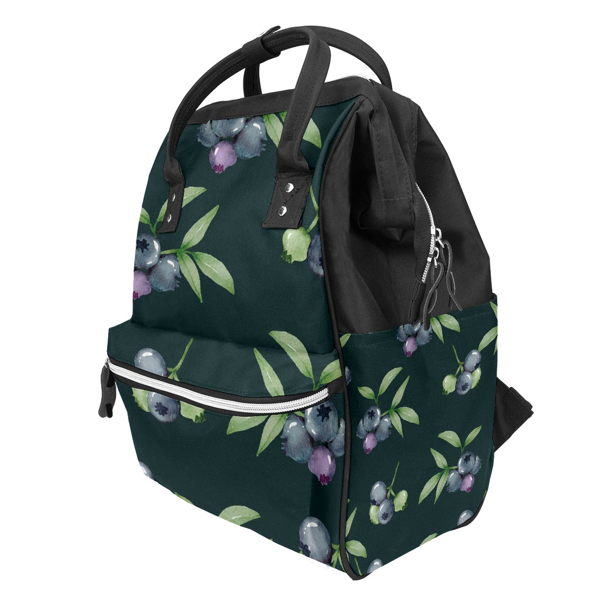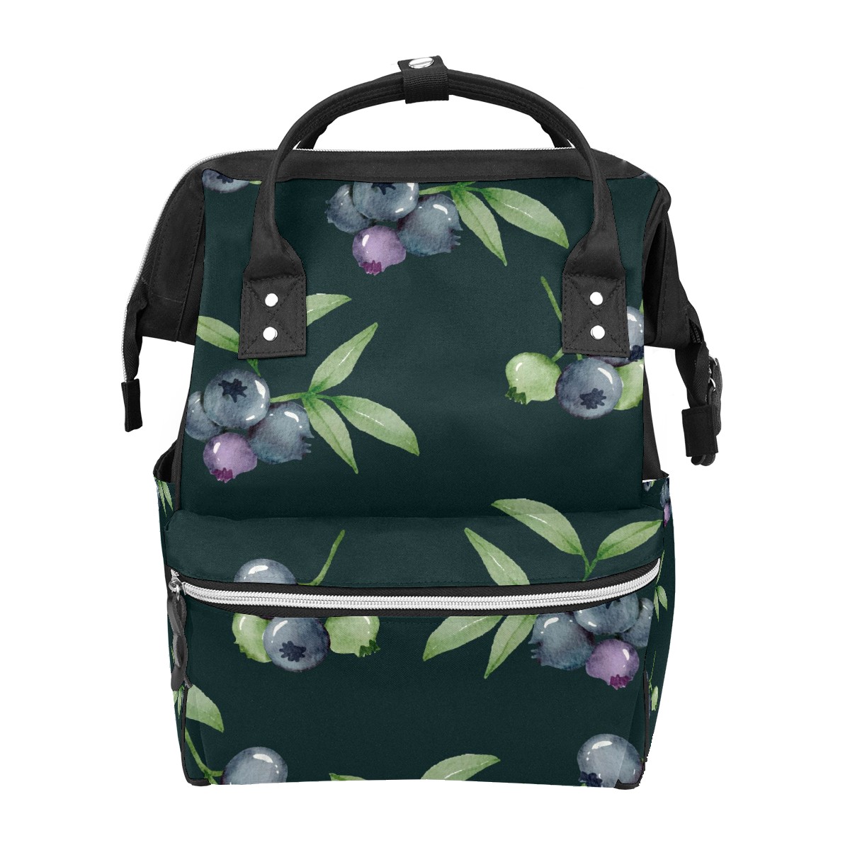 Backpack Blueberry Pattern Fruit Dark Green Large Capacity Diaper Bag Travel Daypack