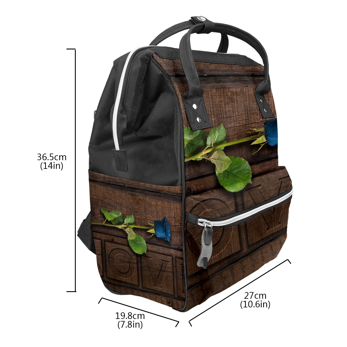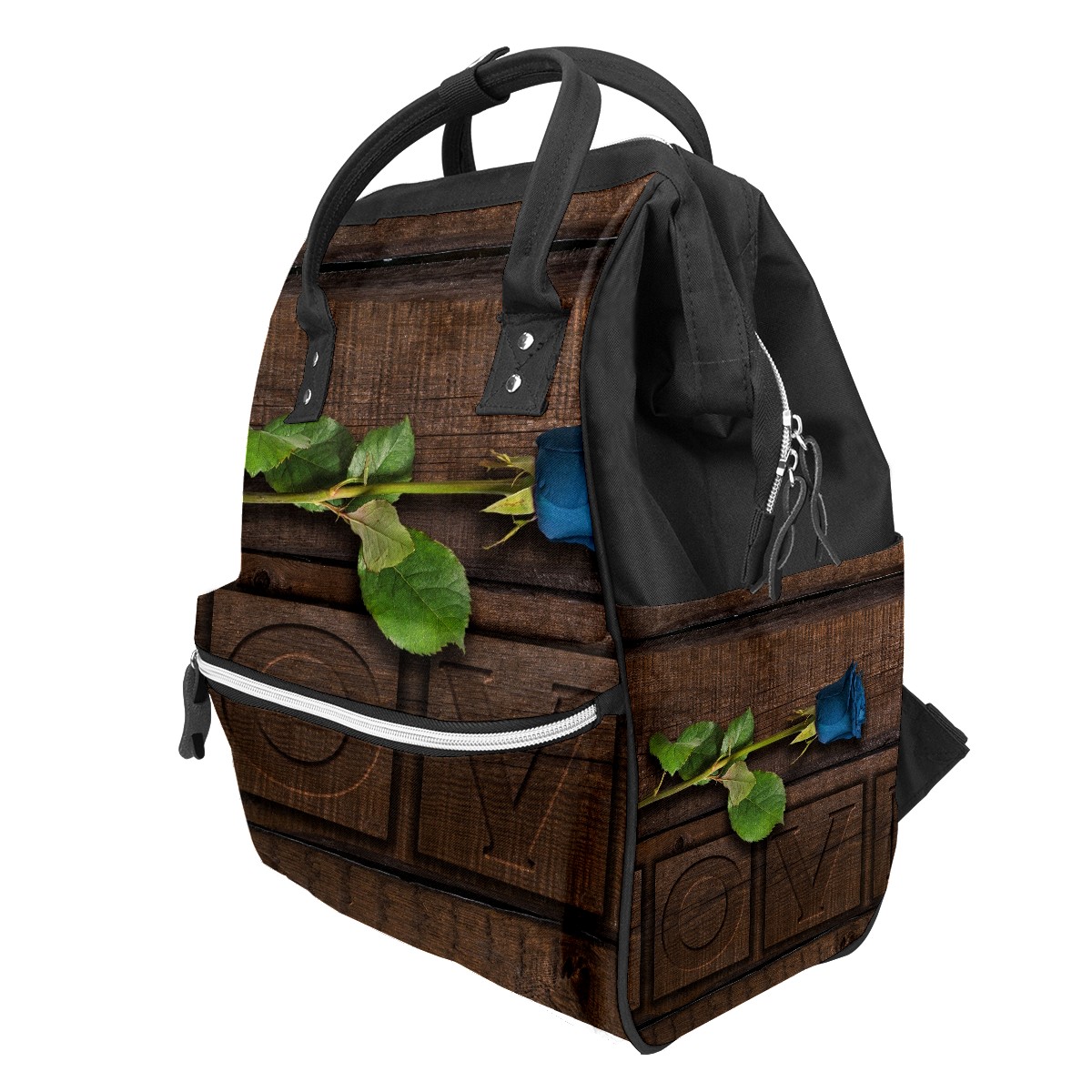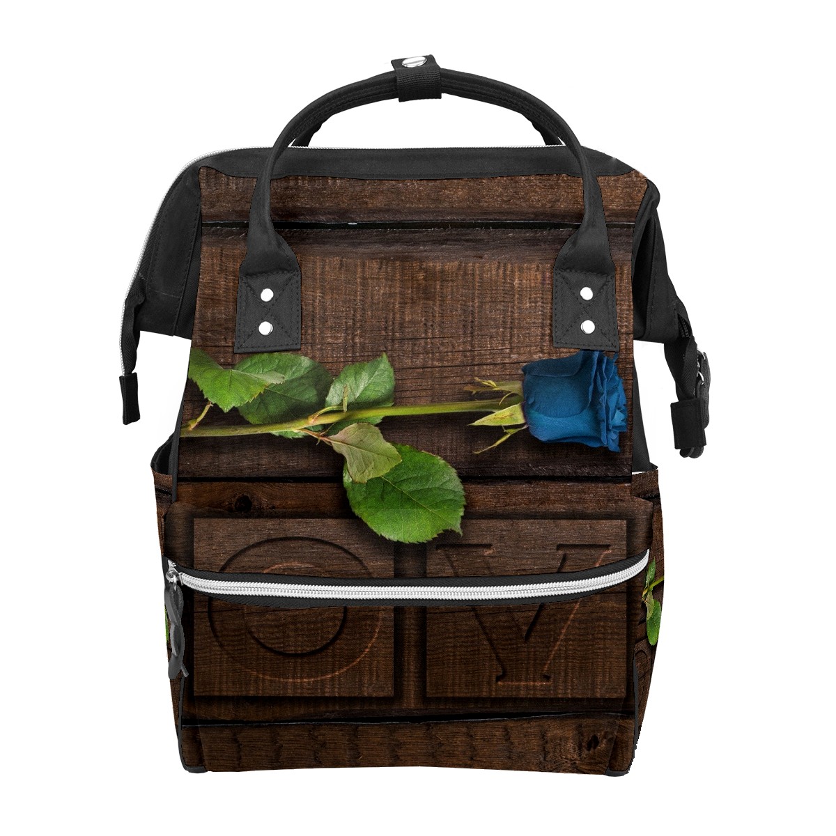 Backpack Blue Rose Flower Love Dark Brown Wood Large Capacity Diaper Bag Travel Daypack