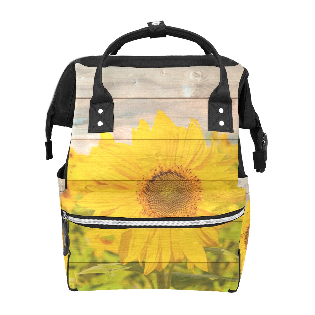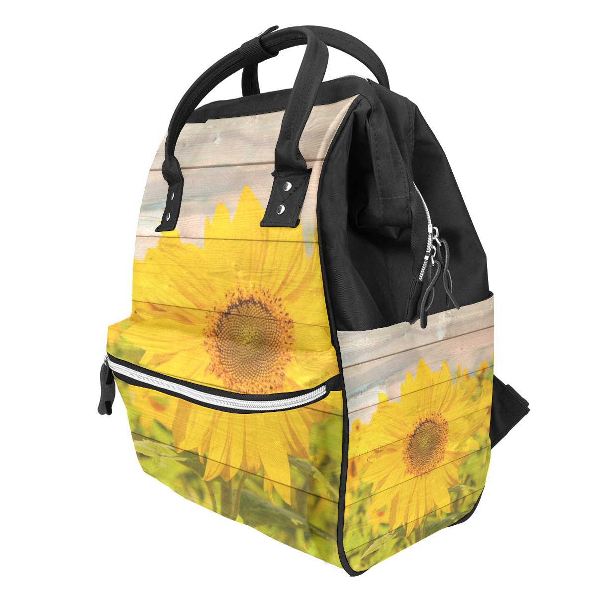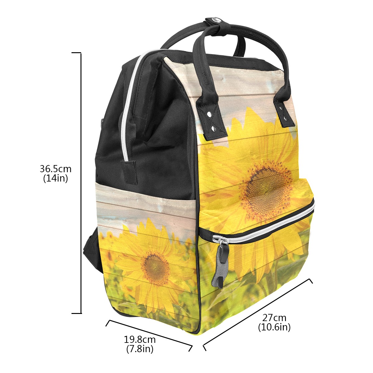 Backpack Blooming Yellow Sunflower Grey Wood Large Capacity Diaper Bag Travel Daypack