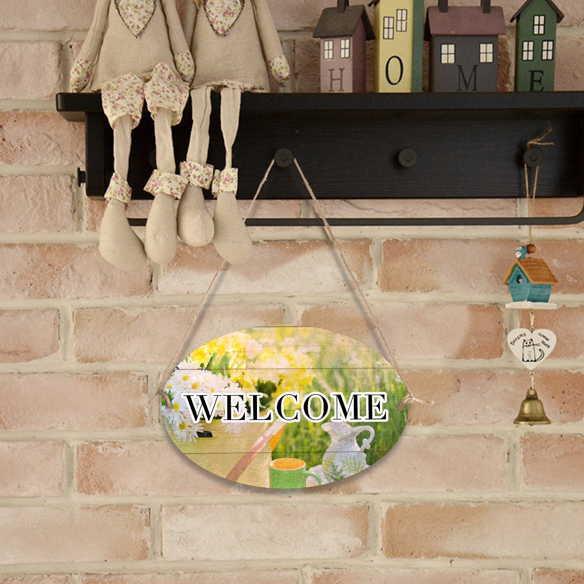 <b>FCZ Customized Welcome Sign Hanging Pendant Front Door Decor Door Hanging Sign Decorative Plaque Cafe Shop<br> Material:Environmental-friendly Fiber Wood PVC.Waterproof.Easy to clean,durable.<br> Print:One side Printed.We support customized picture,you can send us the picture or the sign on the board,we can produce it for you,customize your own welcome sign.The word "WELCOME"can be removed if you don't want it,just email us.<br> Size:12"(L) x 8"(W) x 0.2"(H).Rope Length:31.5in(80cm).Weight:170g.Porper welcome sign size for your home door,office,shop and garden.<br> Design:Two holes on the plaque for easy installation,includes two attached strong ropes to hang on your entryway<br> Perfect for home,indoor.outdoor,office,yard,garden,cafe shop,farmhouse,kitchen or any place.<br> Occasions:Suit for festival,Halloween,Christmas,Easter,Valentines,birthday party,anniversary party,wedding,New Year and etc.</b>