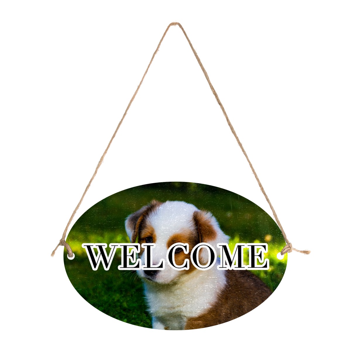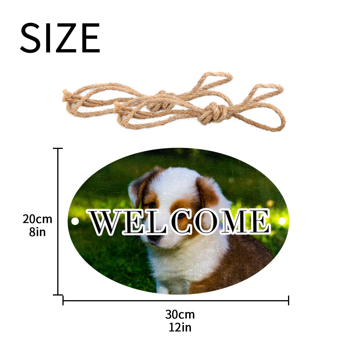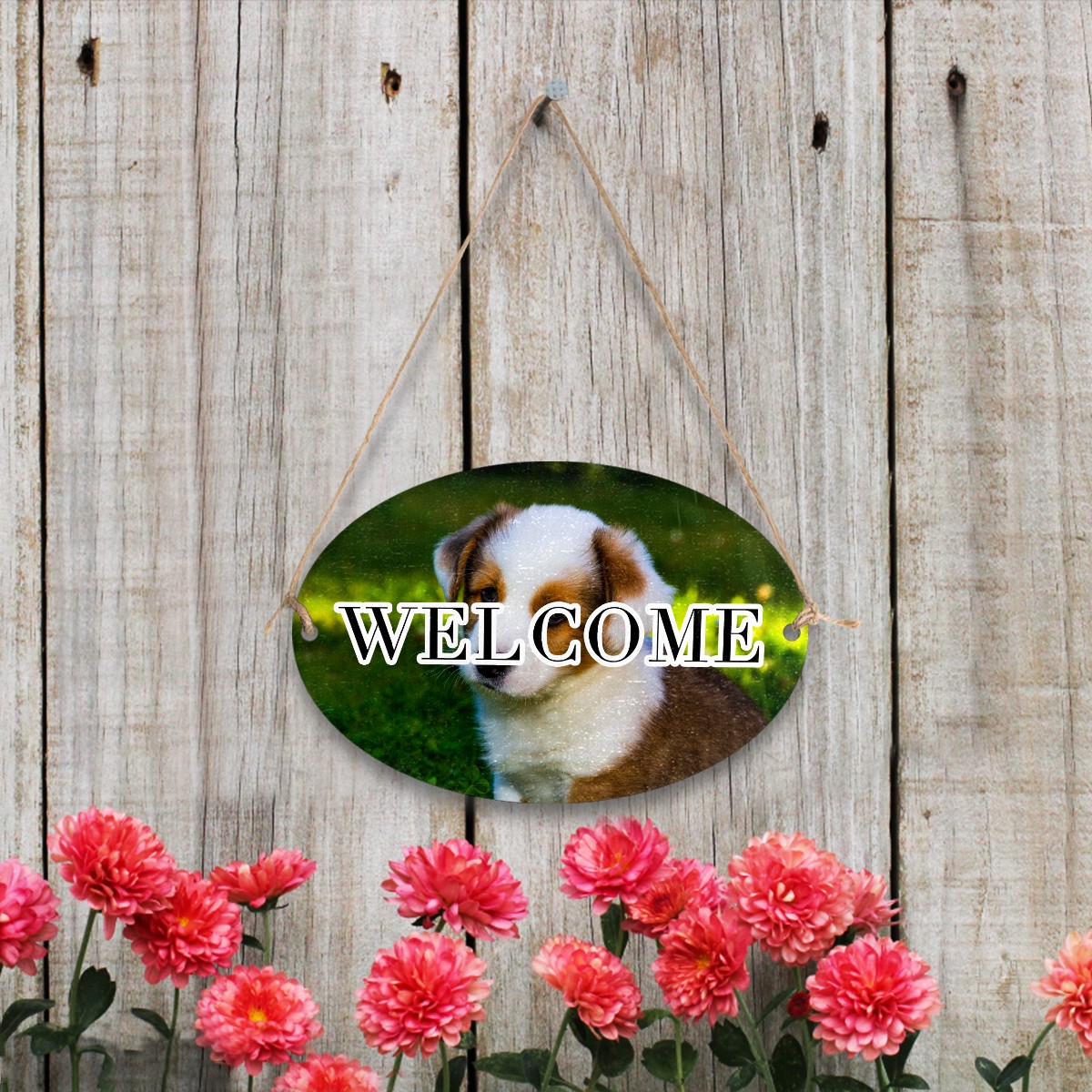 Welcome Sign Welsh Corgi Dog Grassland Oval Wood Printed Door Plate Plaque Wall Hanging Front Door Decor Porch Garden Decorations Home Office Yard Room 12x8in with Hang Rope