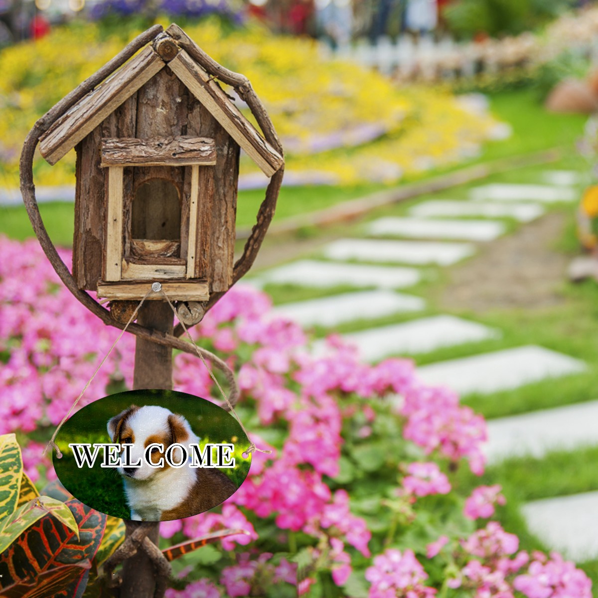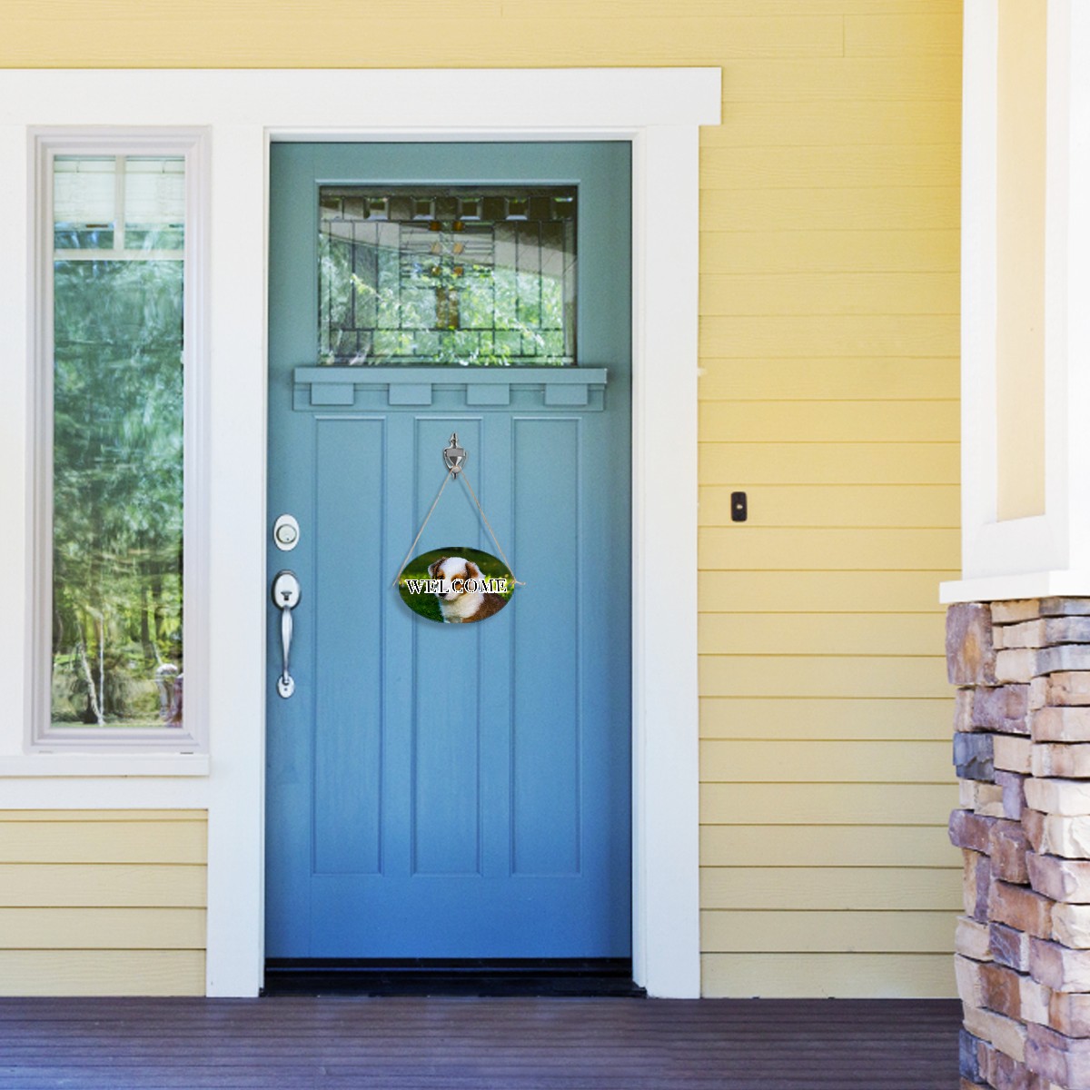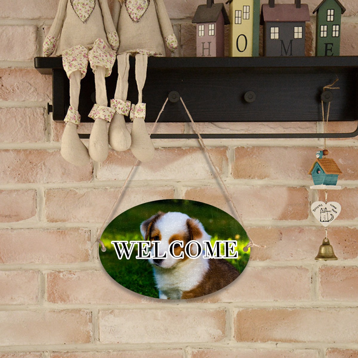Welcome Sign Welsh Corgi Dog Grassland Oval Wood Printed Door Plate Plaque Wall Hanging Front Door Decor Porch Garden Decorations Home Office Yard Room 12x8in with Hang Rope