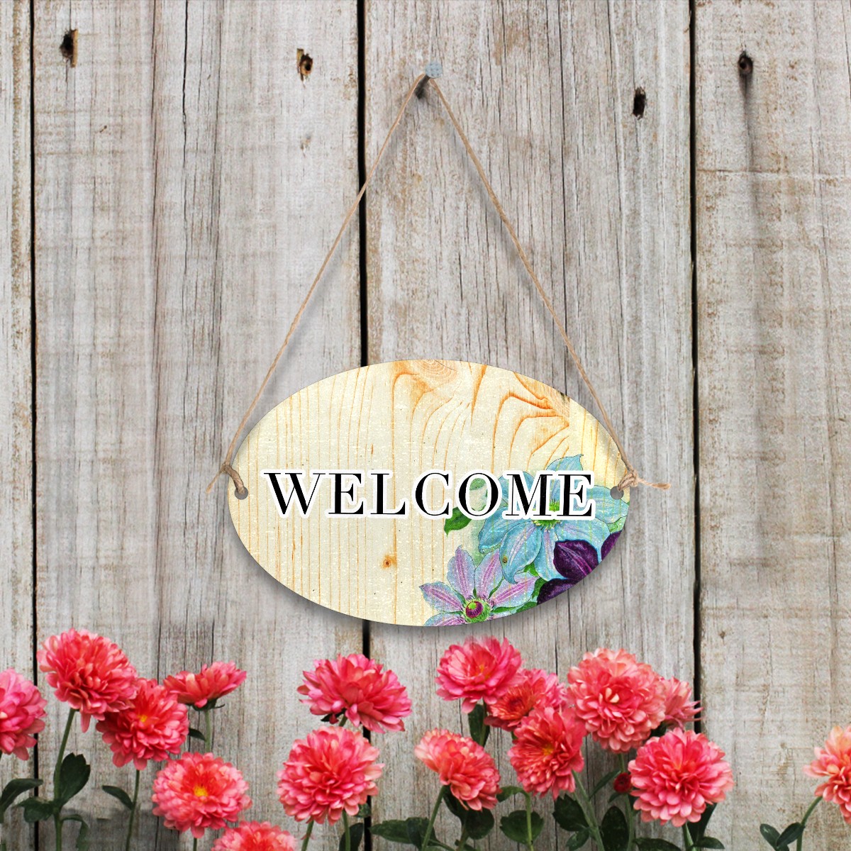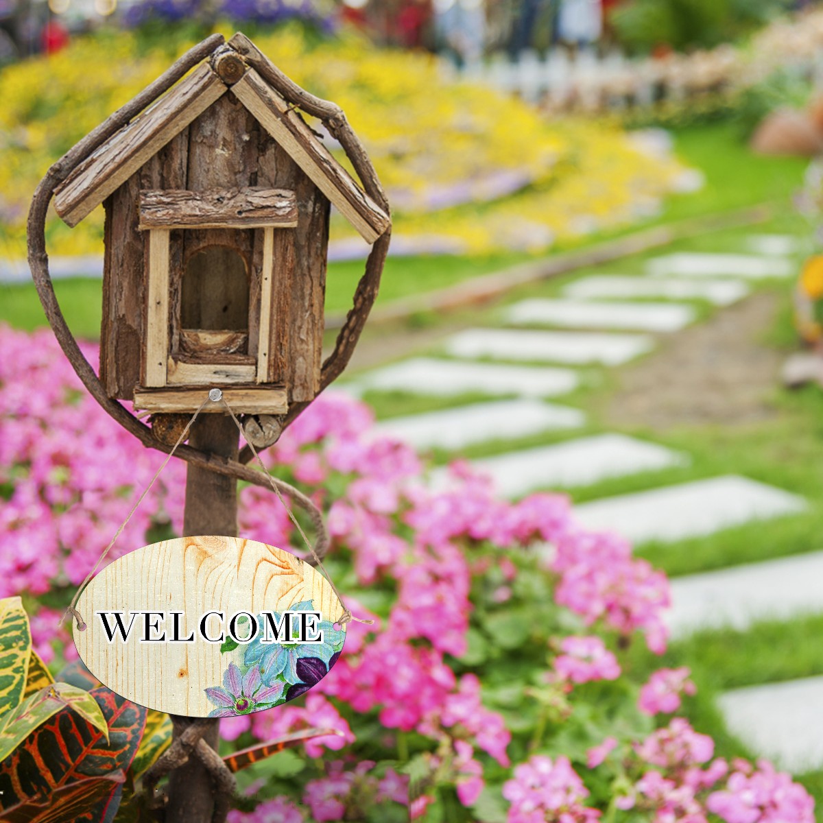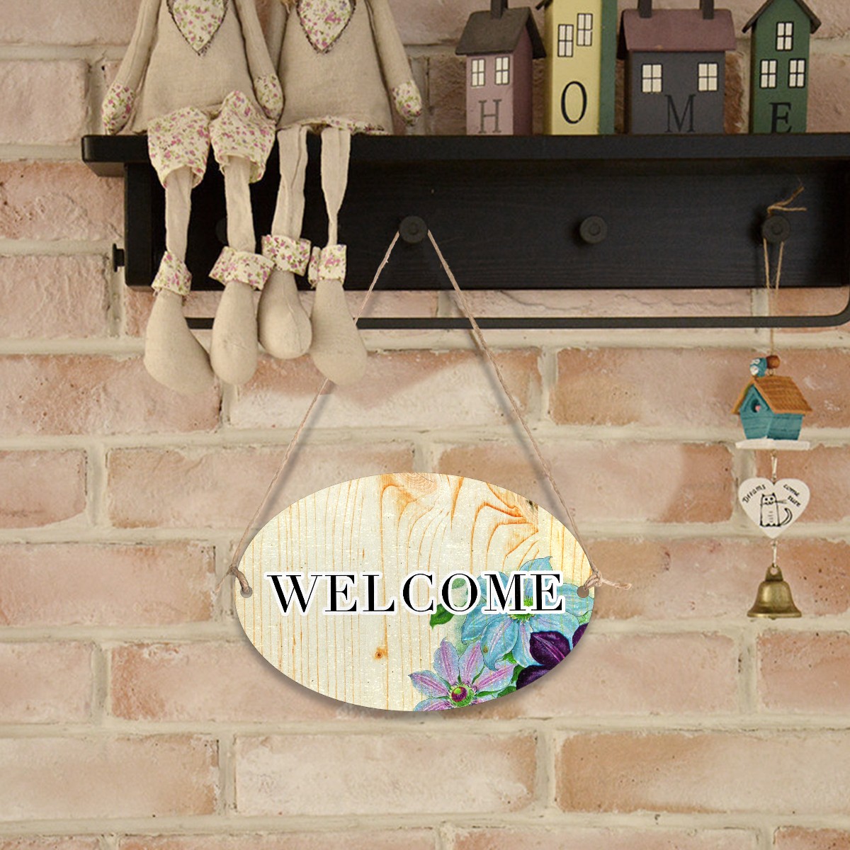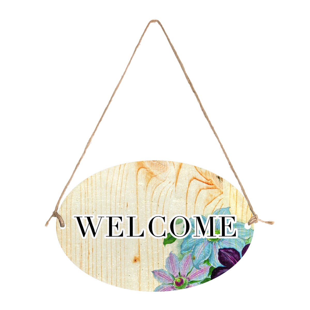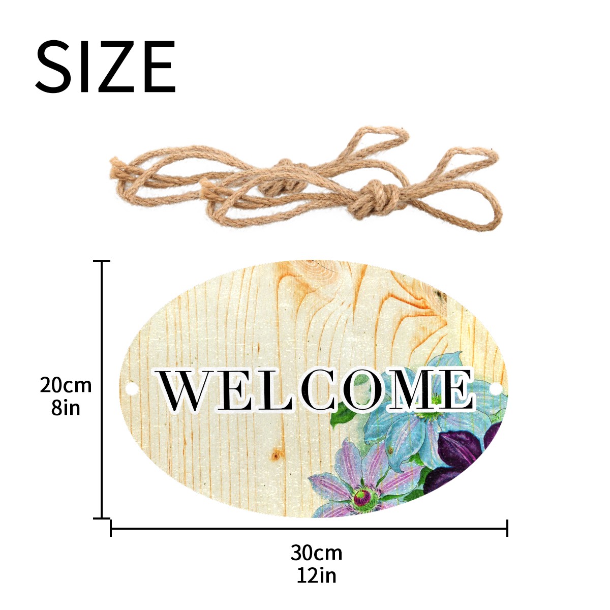 Welcome Sign Shabby Tree Wooden Floral Corner Oval Wood Printed Door Plate Plaque Wall Hanging Front Door Decor Porch Garden Decorations Home Office Yard Room 12x8in with Hang Rope