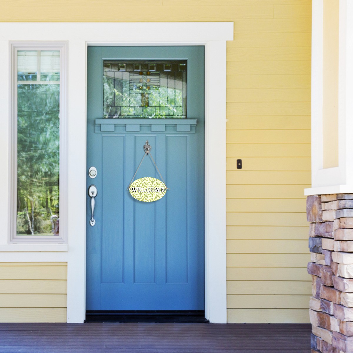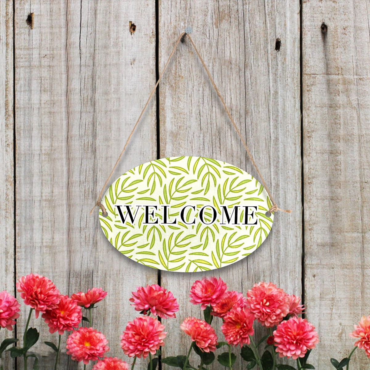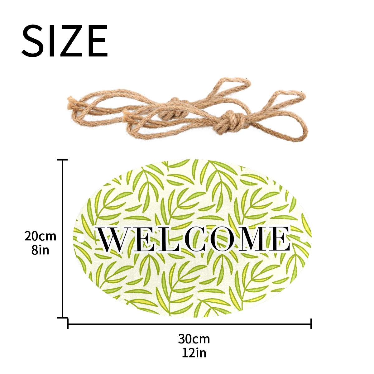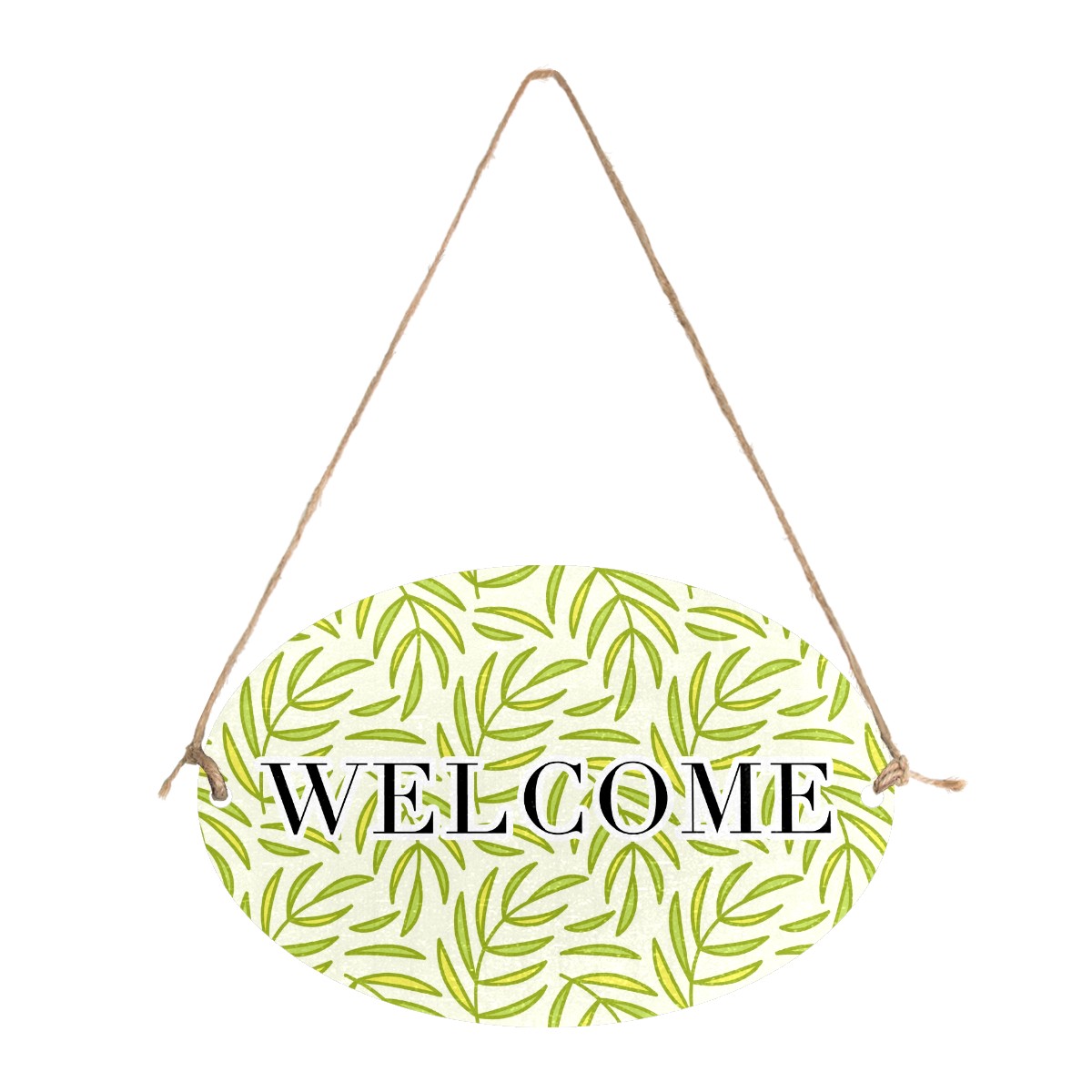Welcome Sign Green Leaves Pattern Seamless Oval Wood Printed Door Plate Plaque Wall Hanging Front Door Decor Porch Garden Decorations Home Office Yard Room 12x8in with Hang Rope