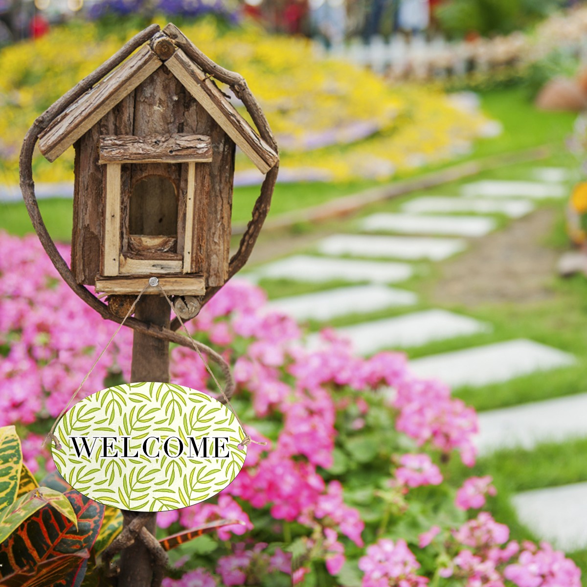 <b>FCZ Customized Welcome Sign Hanging Pendant Front Door Decor Door Hanging Sign Decorative Plaque Cafe Shop<br> Material:Environmental-friendly Fiber Wood PVC.Waterproof.Easy to clean,durable.<br> Print:One side Printed.We support customized picture,you can send us the picture or the sign on the board,we can produce it for you,customize your own welcome sign.The word "WELCOME"can be removed if you don't want it,just email us.<br> Size:12"(L) x 8"(W) x 0.2"(H).Rope Length:31.5in(80cm).Weight:170g.Porper welcome sign size for your home door,office,shop and garden.<br> Design:Two holes on the plaque for easy installation,includes two attached strong ropes to hang on your entryway<br> Perfect for home,indoor.outdoor,office,yard,garden,cafe shop,farmhouse,kitchen or any place.<br> Occasions:Suit for festival,Halloween,Christmas,Easter,Valentines,birthday party,anniversary party,wedding,New Year and etc.</b>