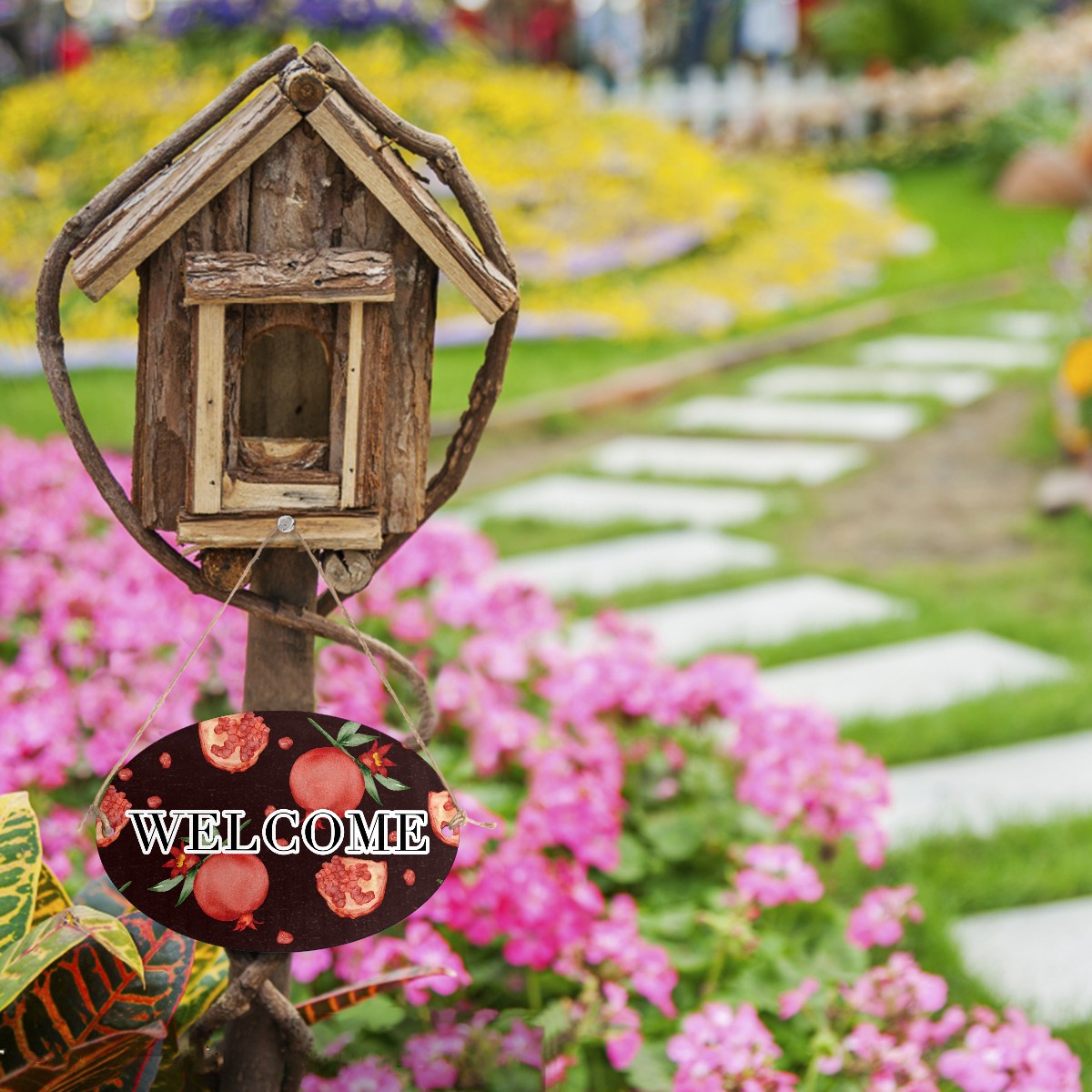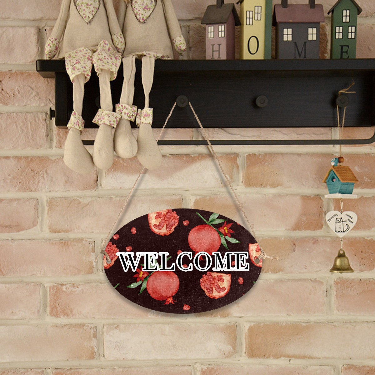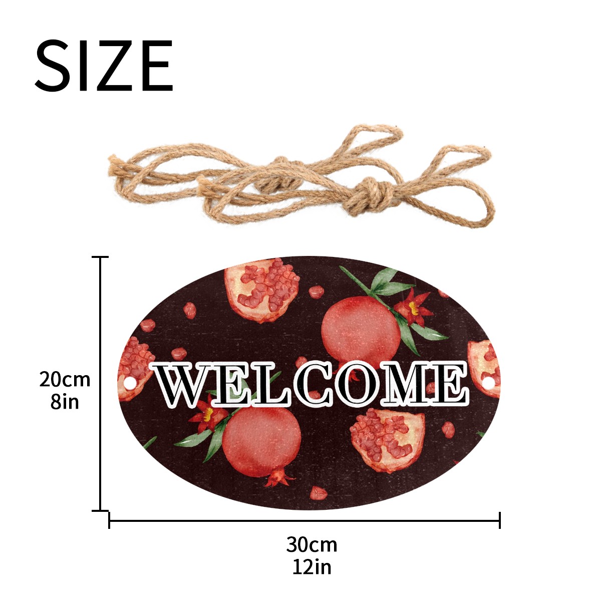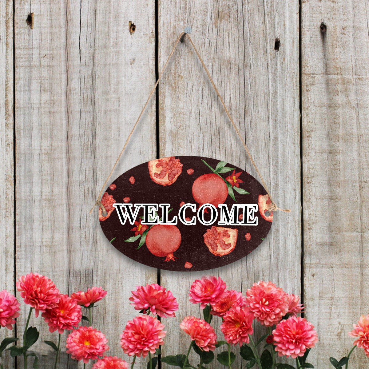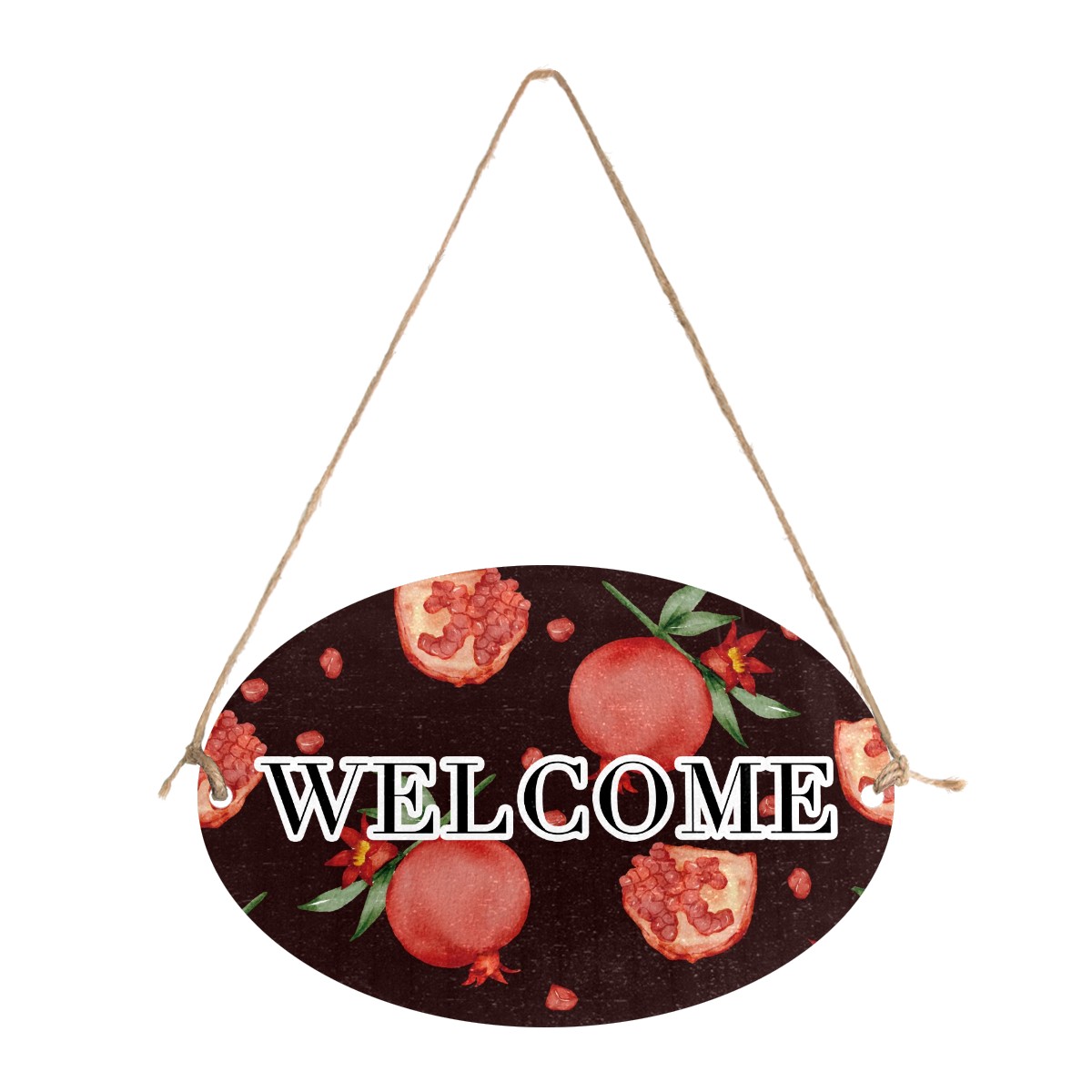 Welcome Sign Fruit Pomegranat Pattern Red Oval Wood Printed Door Plate Plaque Wall Hanging Front Door Decor Porch Garden Decorations Home Office Yard Room 12x8in with Hang Rope