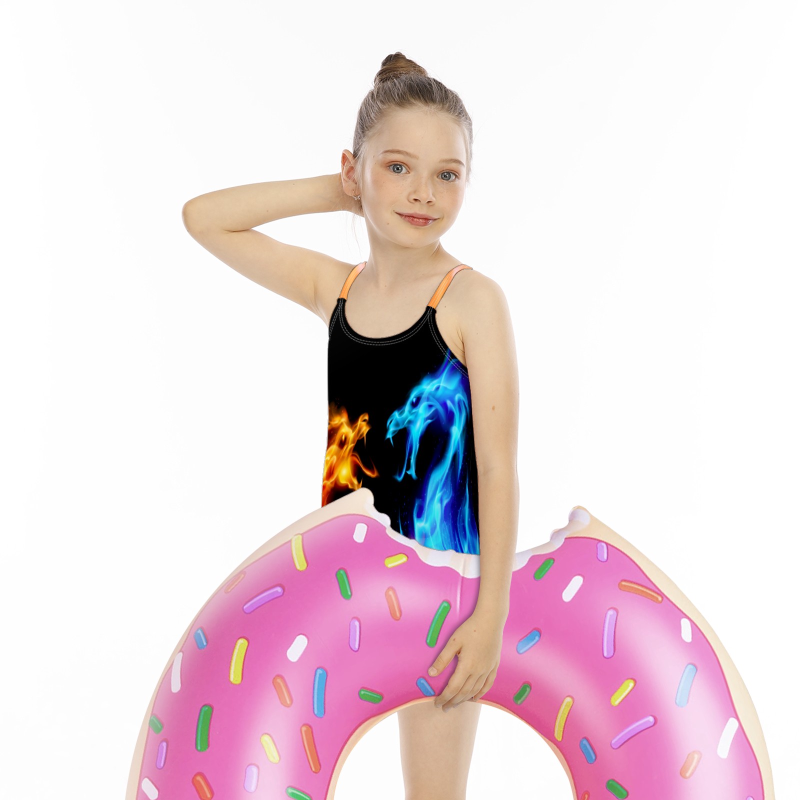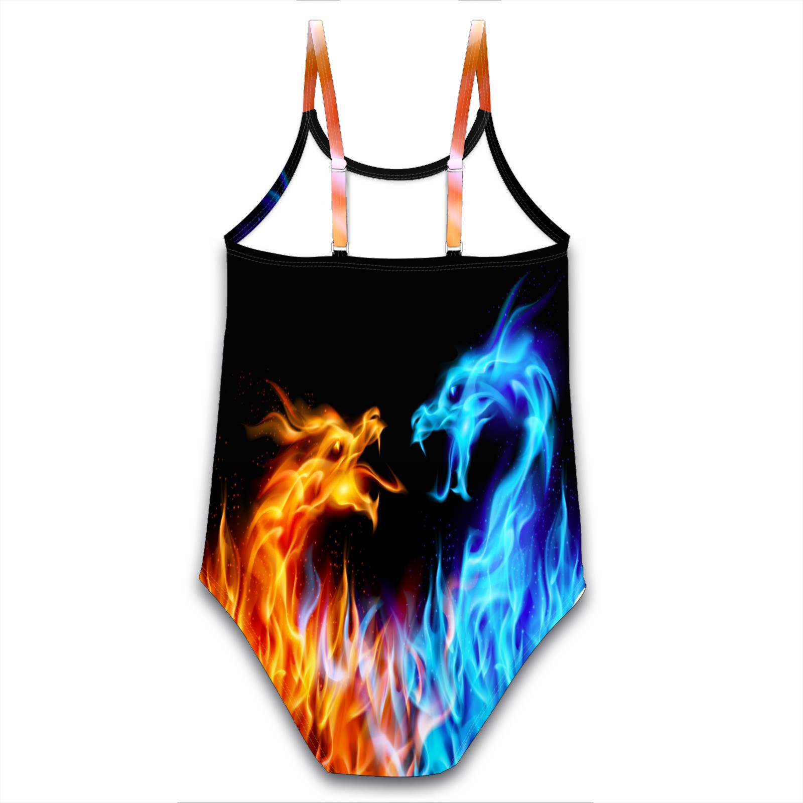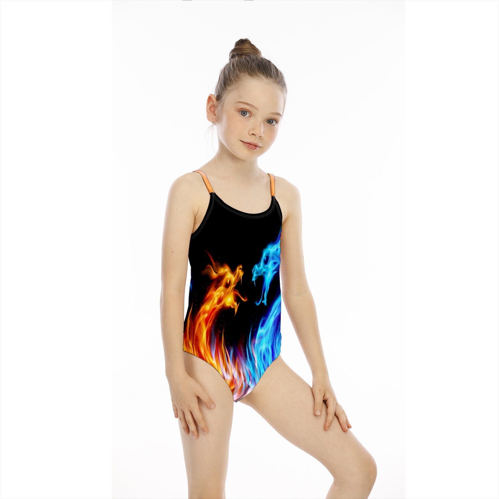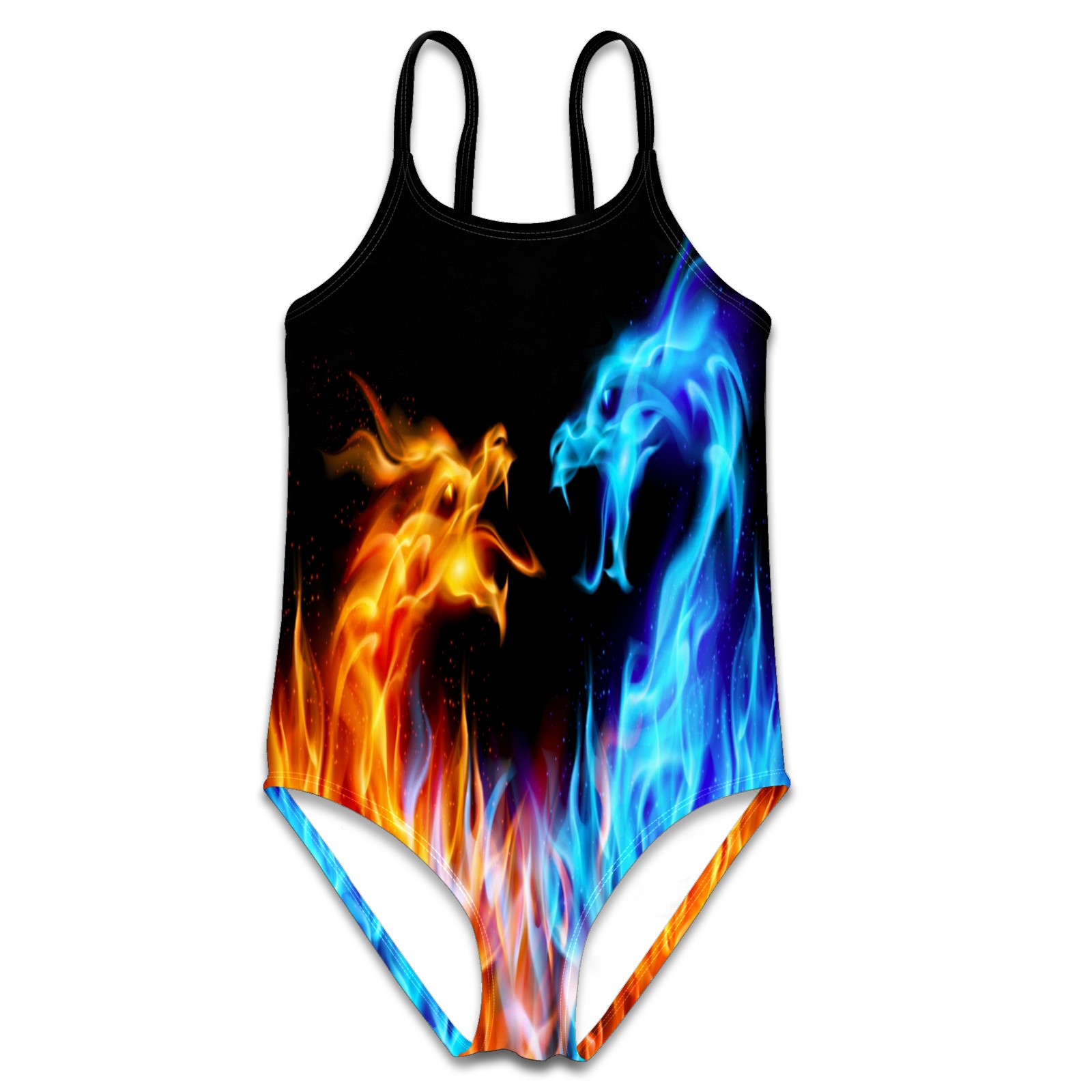 Girls Swimsuit One Piece Fire Ice Phoenix Dragon Magic Summer Swimwear Beach Sport Size 5-6 Years