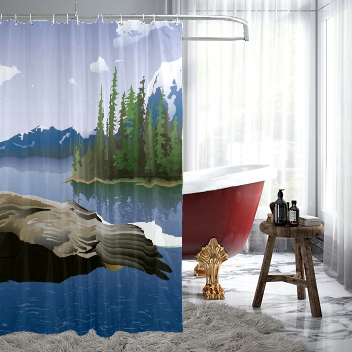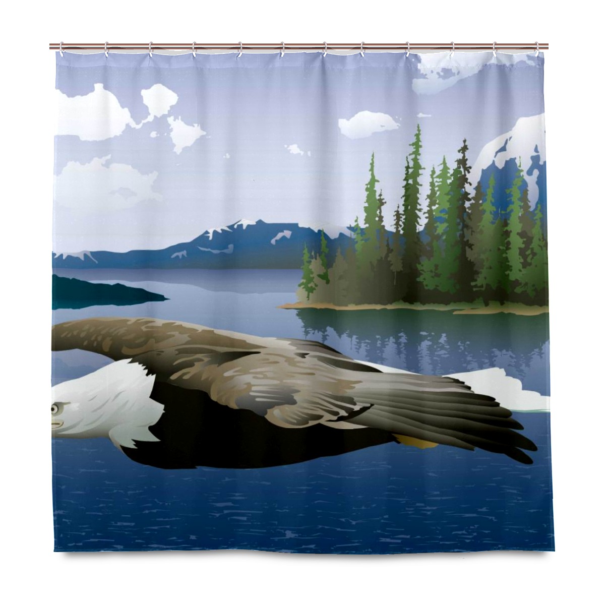 Custom Flying Eagle Water Mountain View Bath Curtain 100% Polyester Hotel Home Washable Shower Curtain 60"x72in