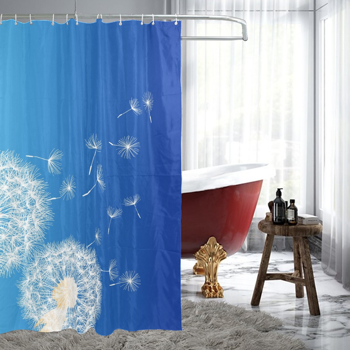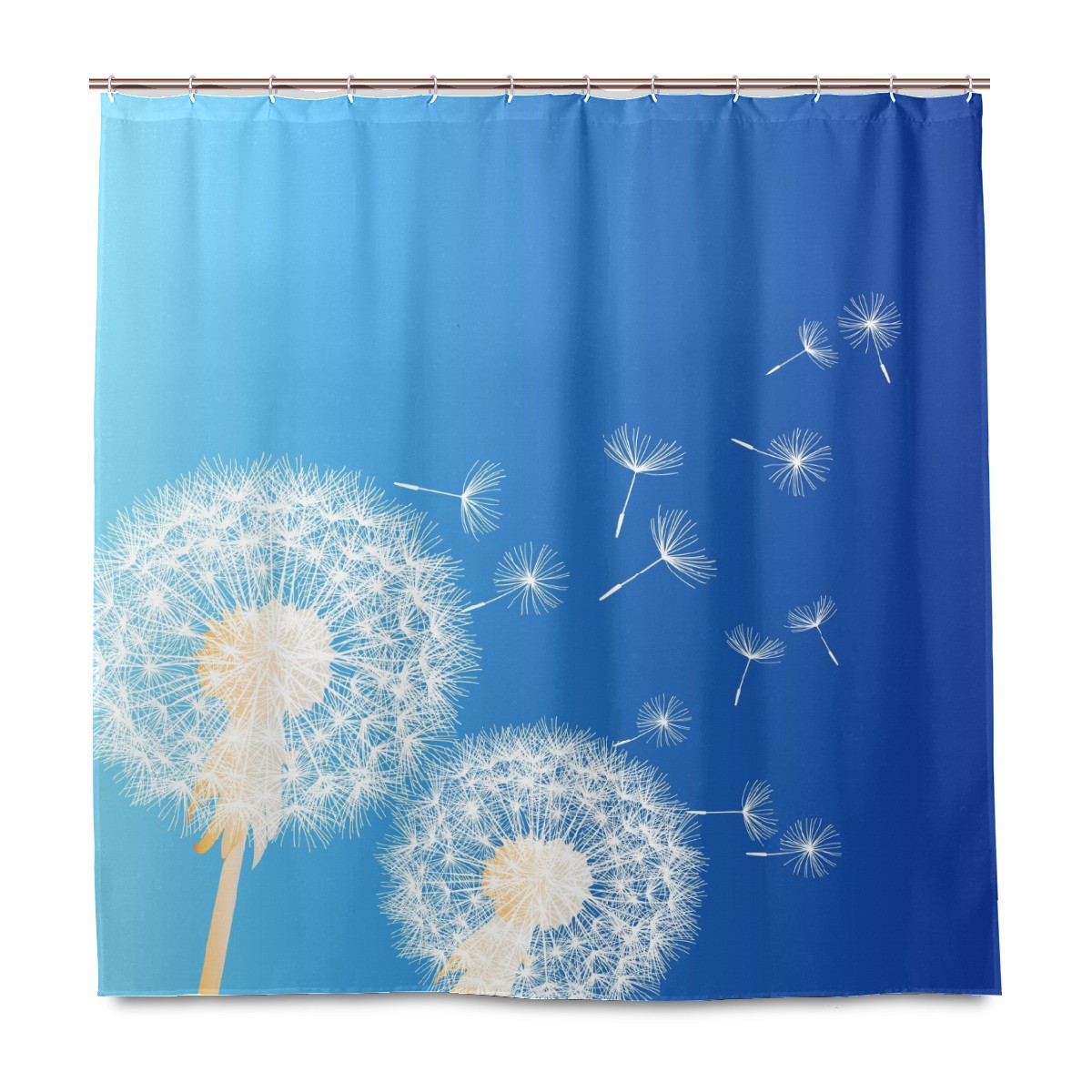 Custom Dandelion Wind Blue Background Bath Curtain 100% Polyester Hotel Home Washable Shower Curtain 60"x72in
