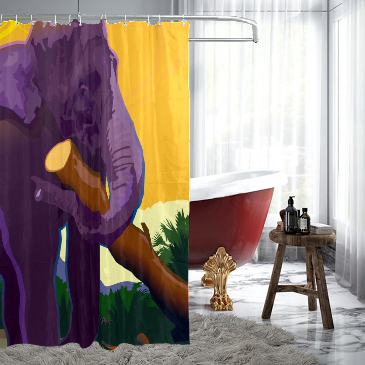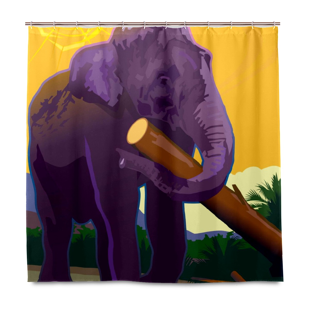 Custom Elephant Animal Playing Wood Paint Bath Curtain 100% Polyester Hotel Home Washable Shower Curtain 60"x72in