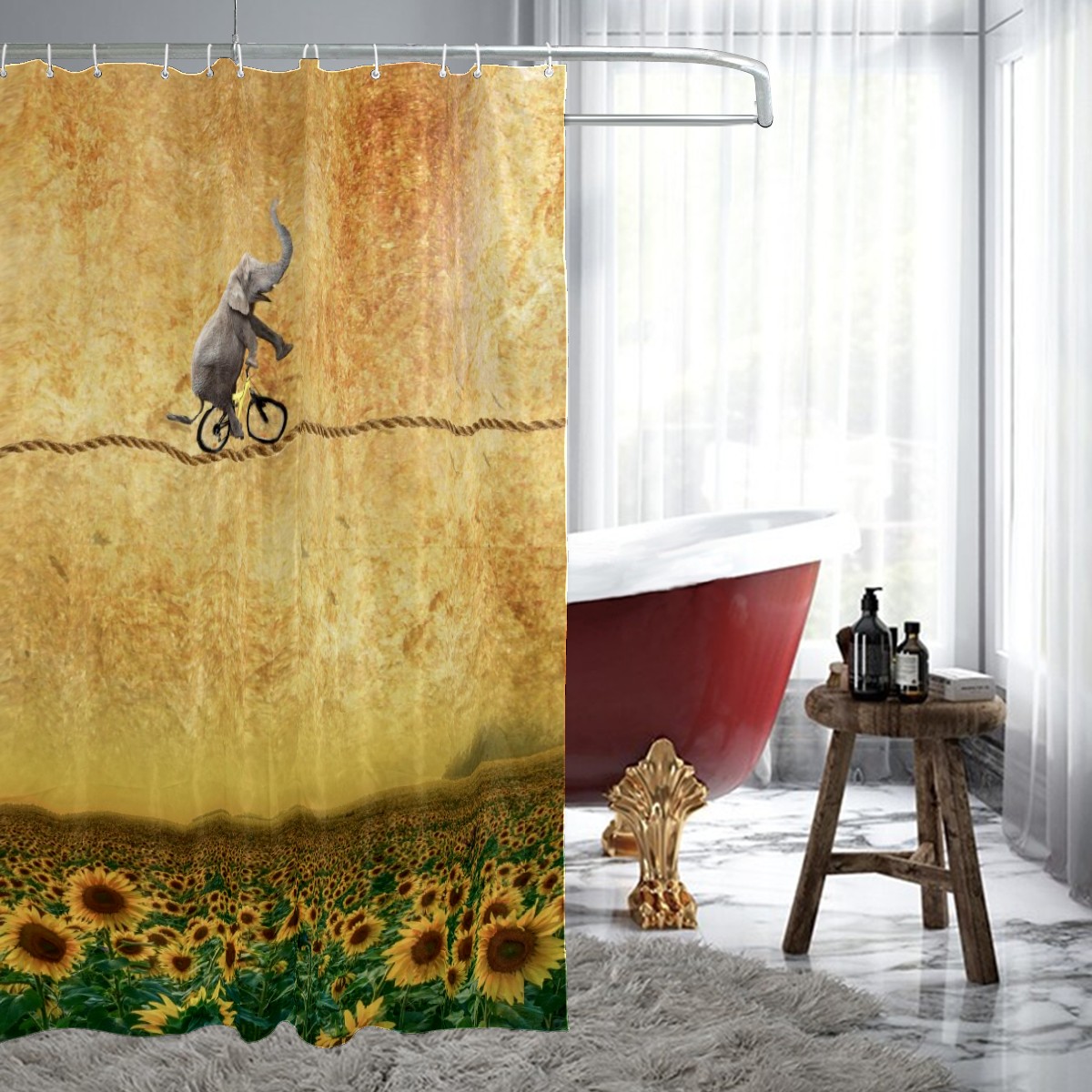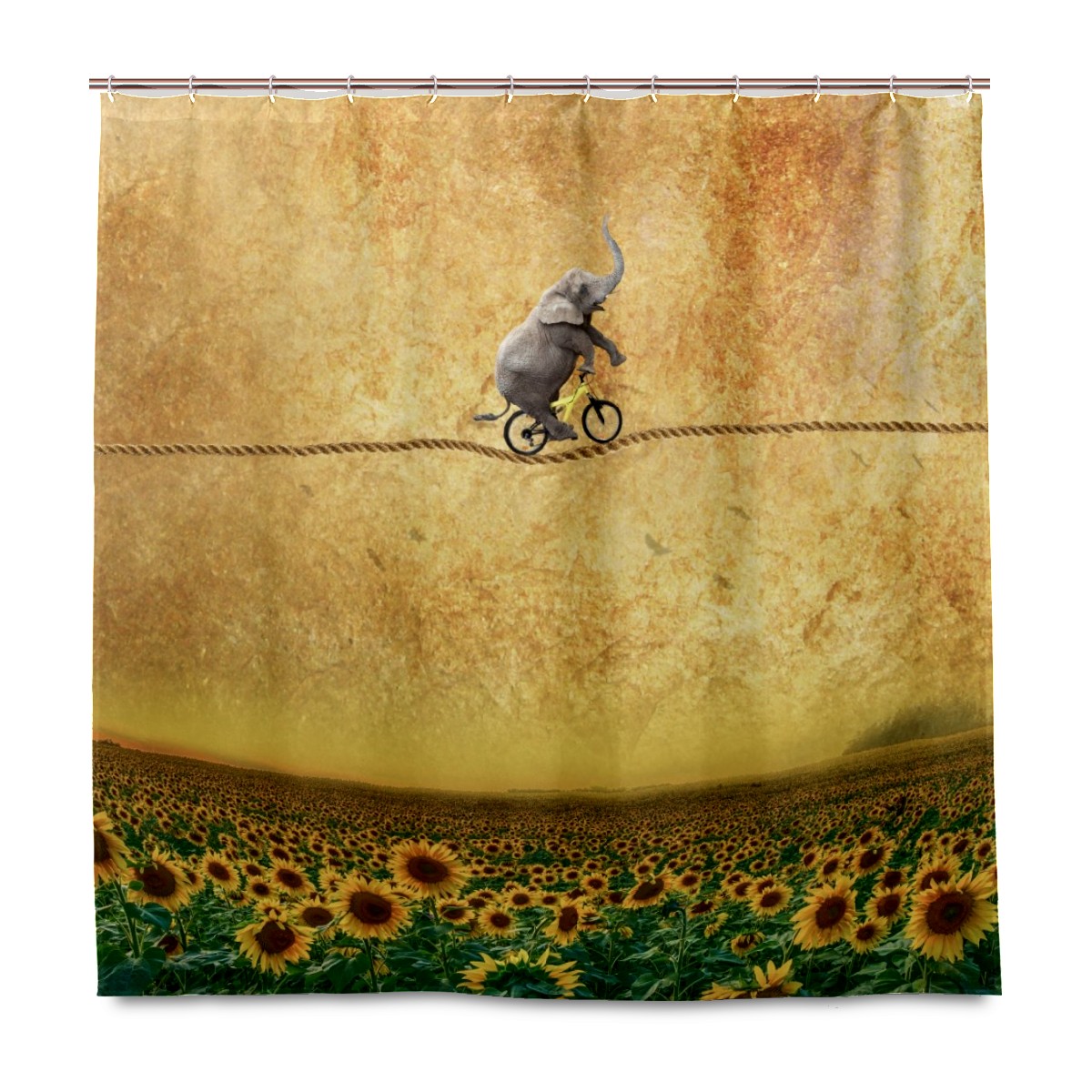 Custom Creative Sunflower Field Elephant Funny Bath Curtain 100% Polyester Hotel Home Washable Shower Curtain 60"x72in