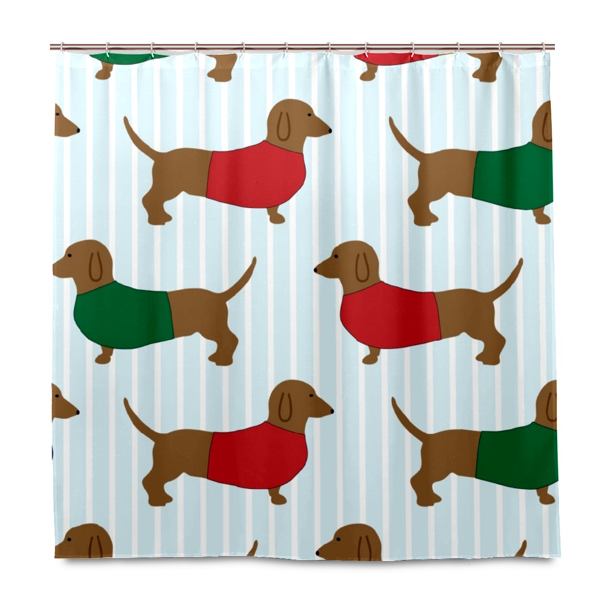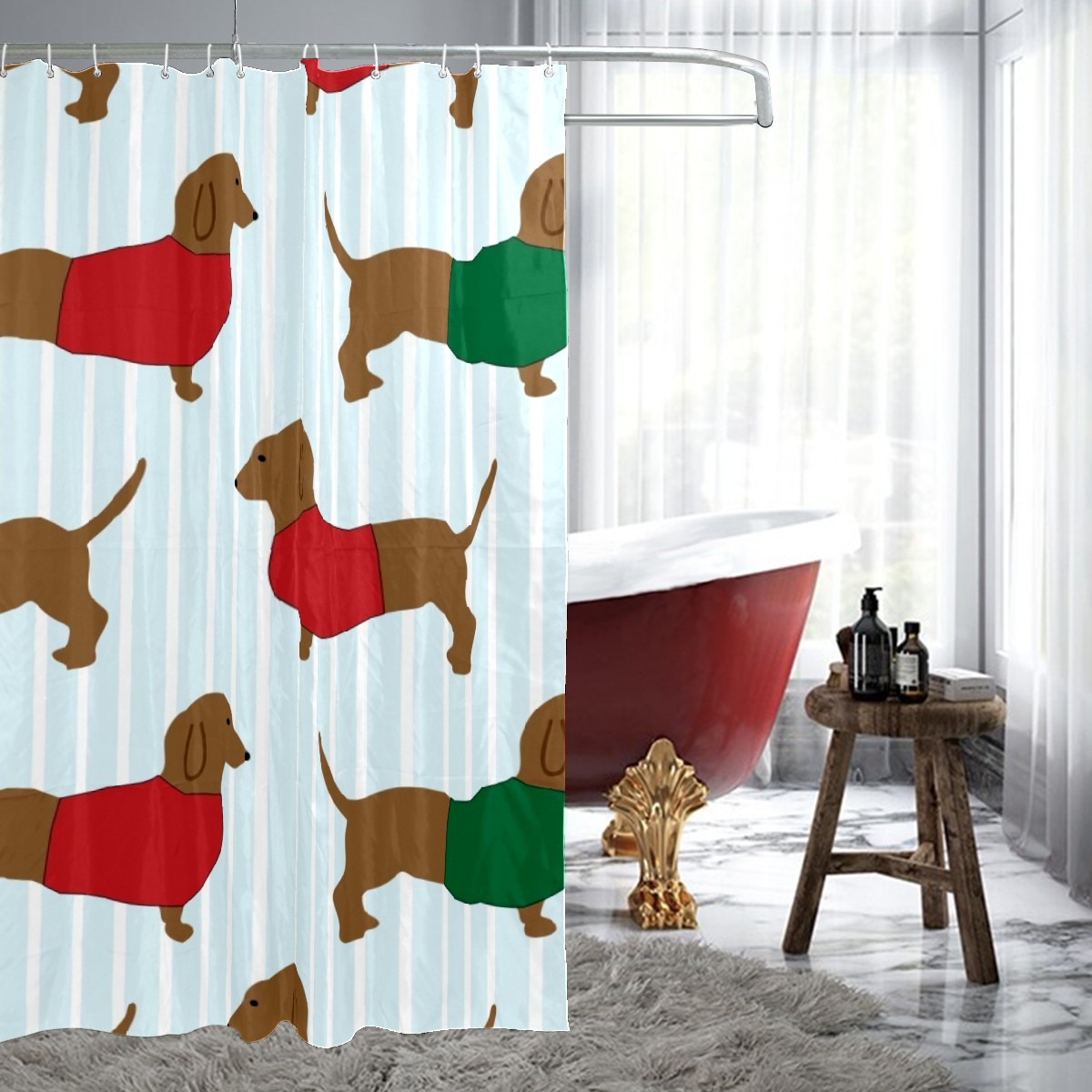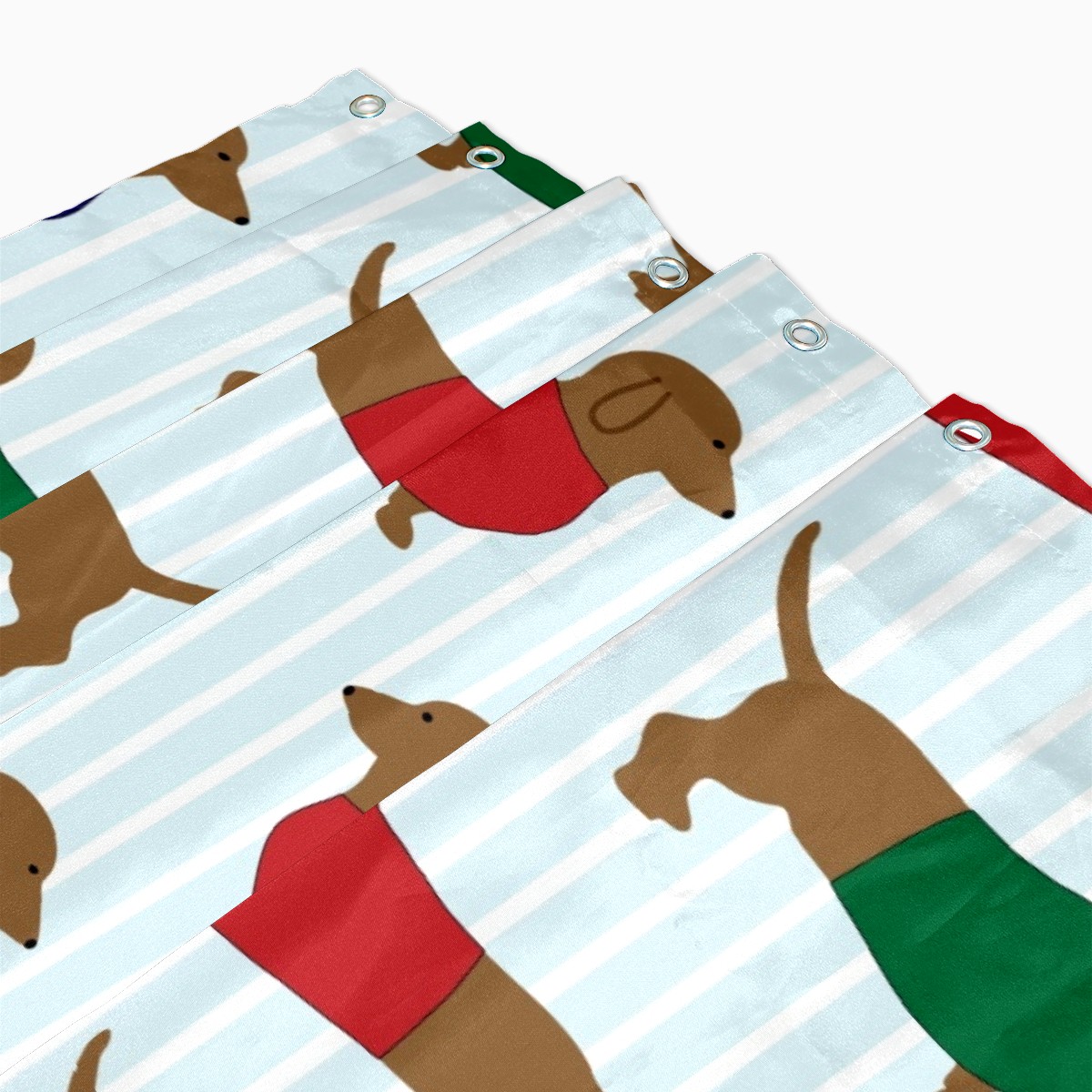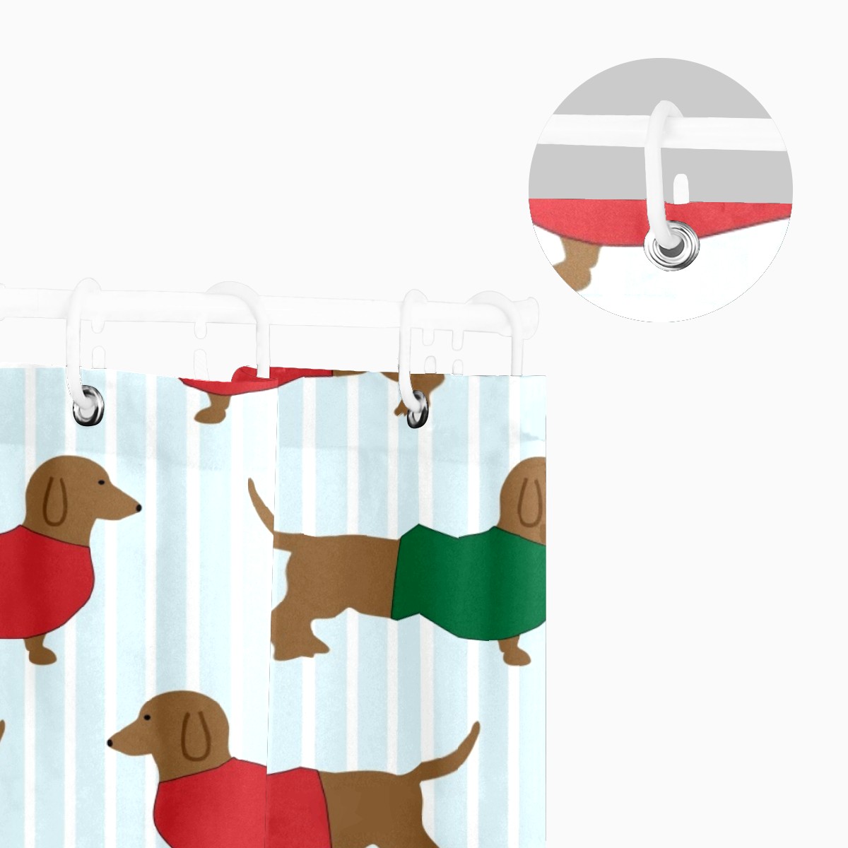 Custom Dachshund Dog Pattern Blue White Stripes Bath Curtain 100% Polyester Hotel Home Washable Shower Curtain 60"x72in