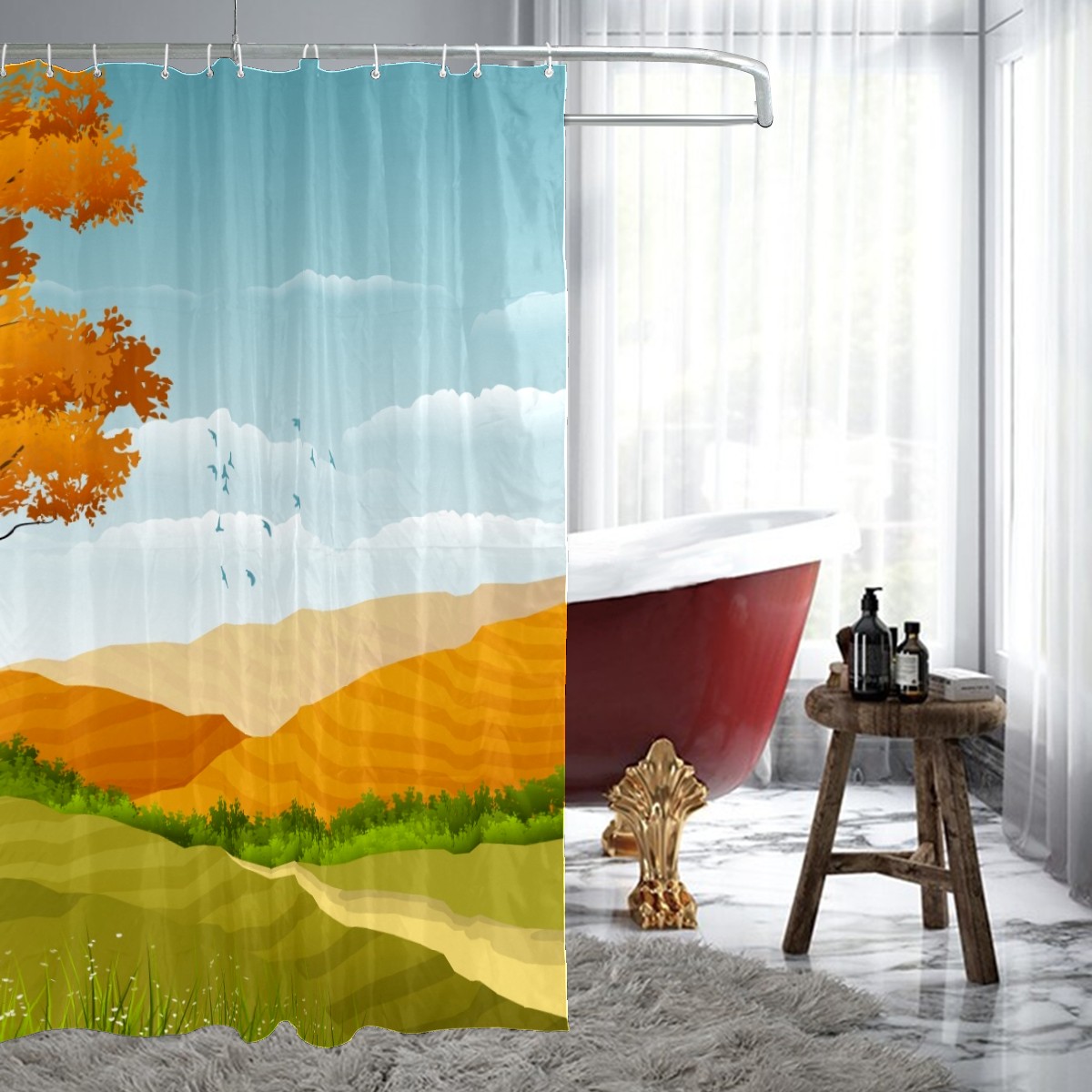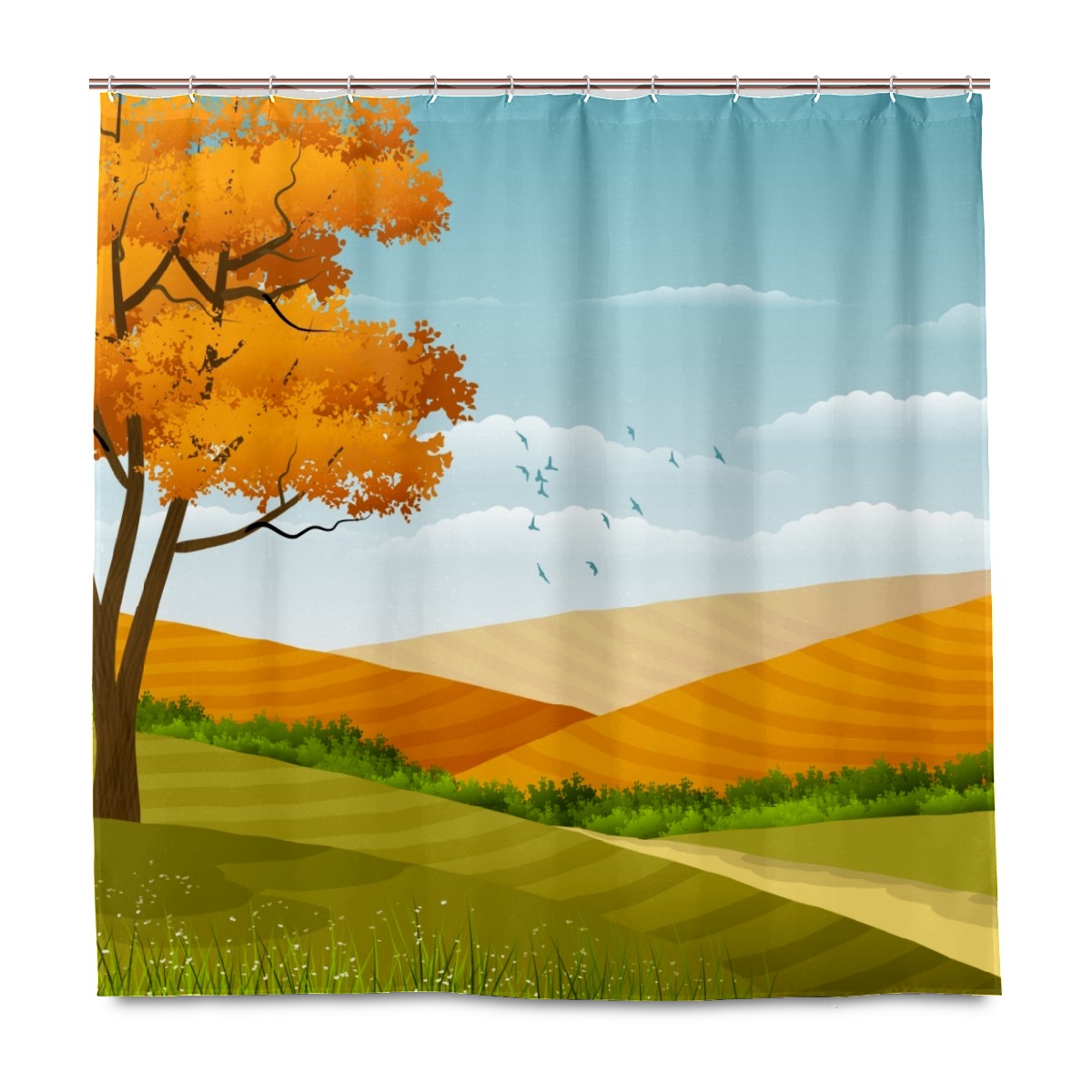 Custom Autumn View Orange Tree Field Bath Curtain 100% Polyester Hotel Home Washable Shower Curtain 60"x72in