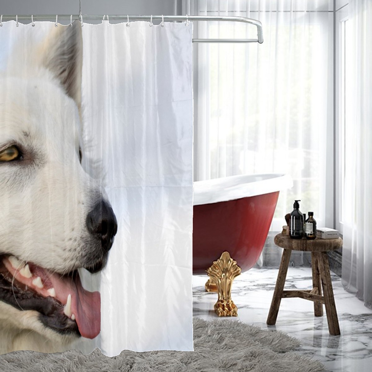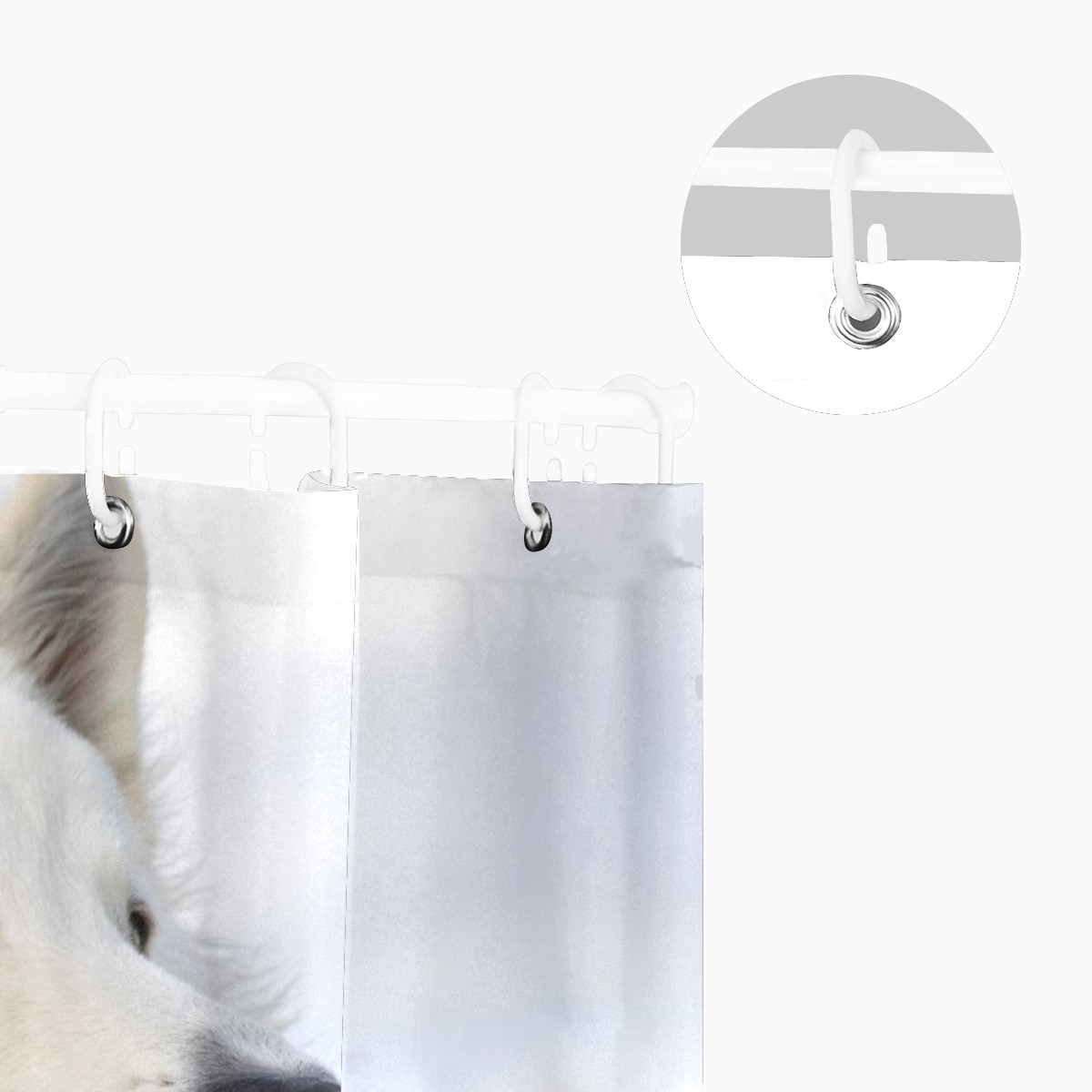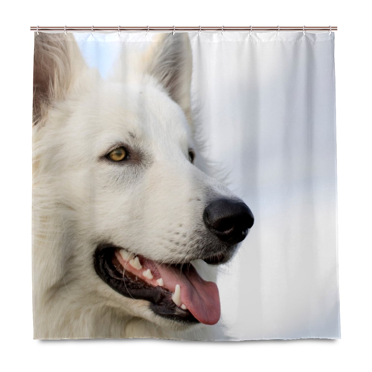 Custom White Dog Photo In Snowland Winter Bath Curtain 100% Polyester Hotel Home Washable Shower Curtain 60"x72in