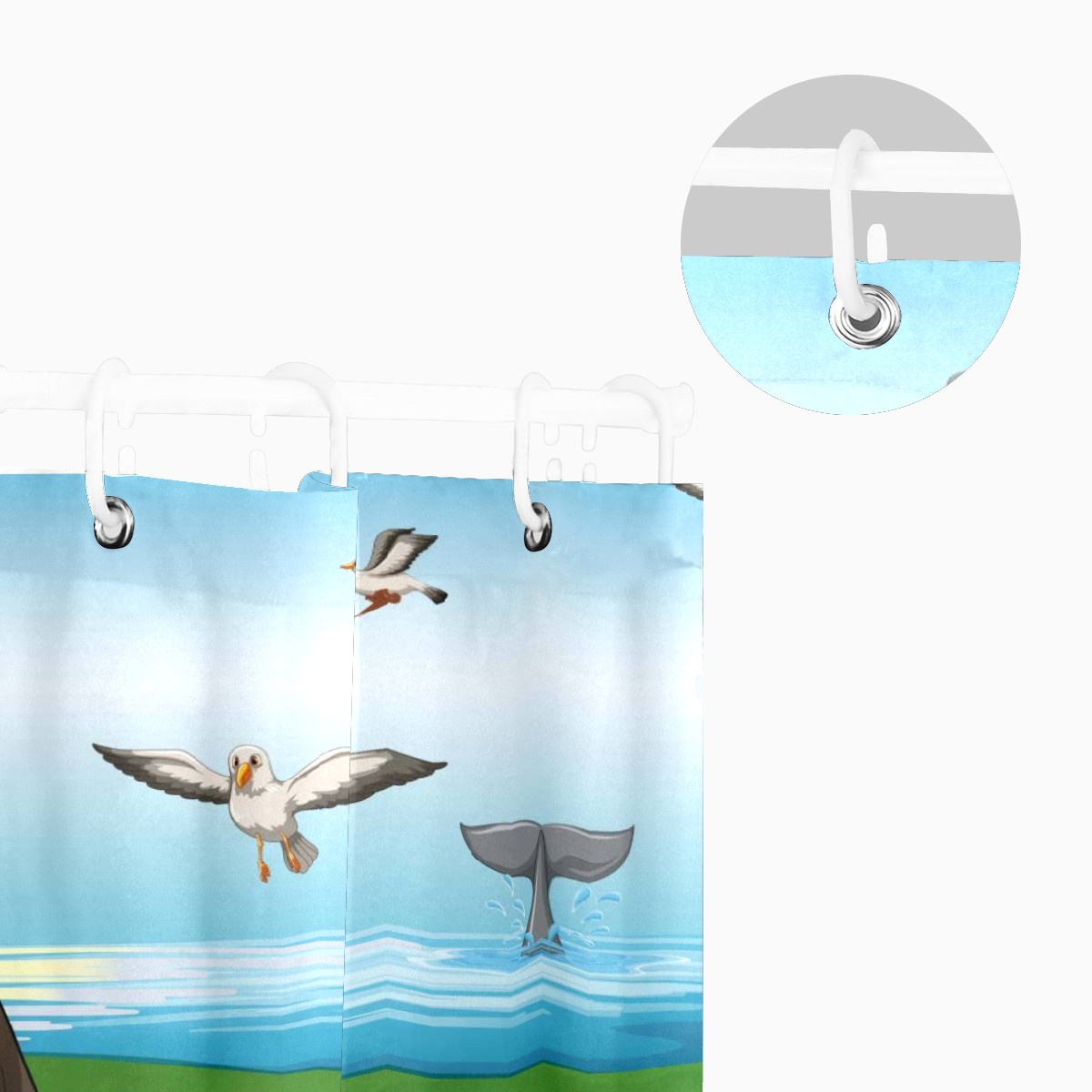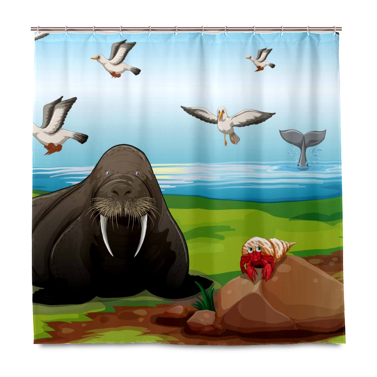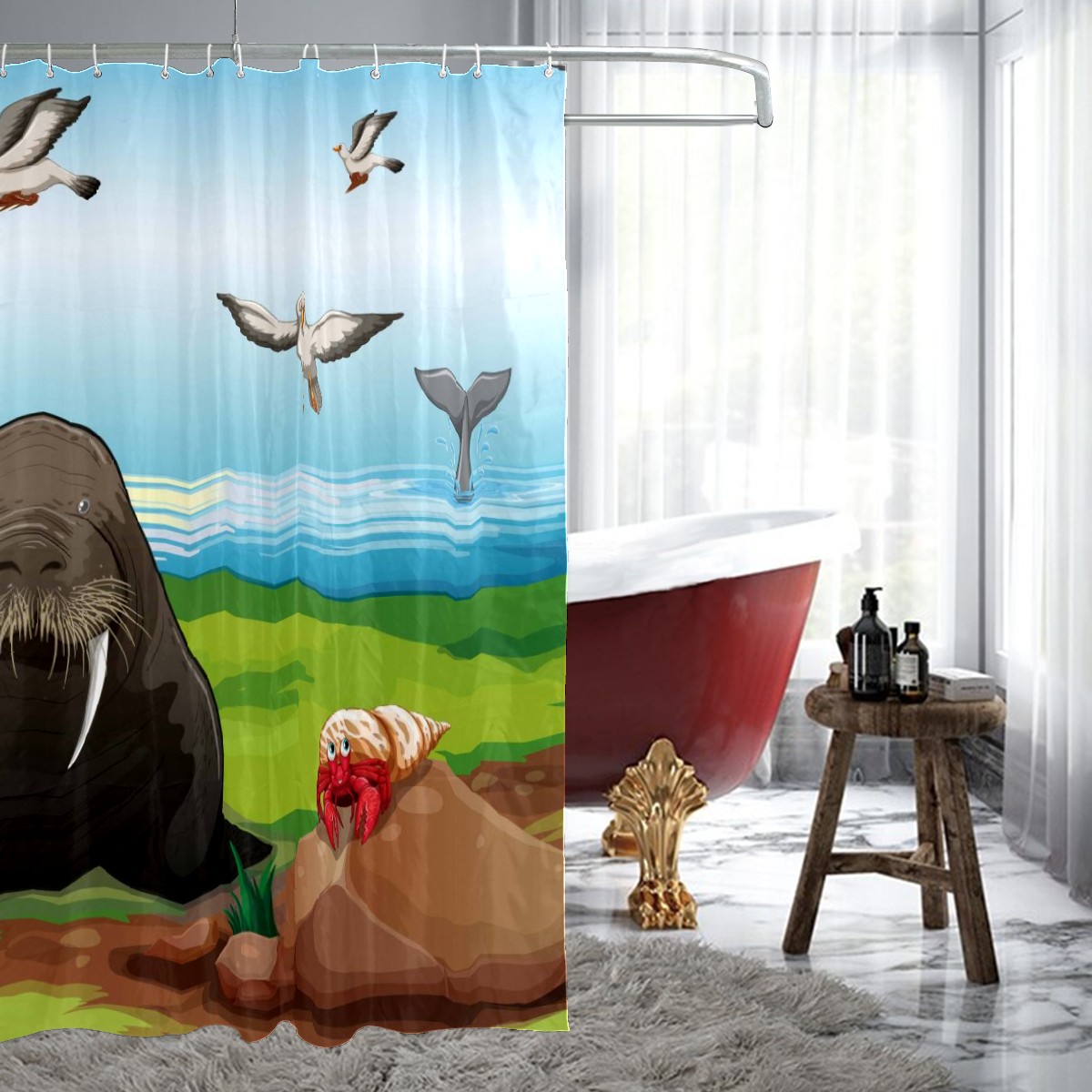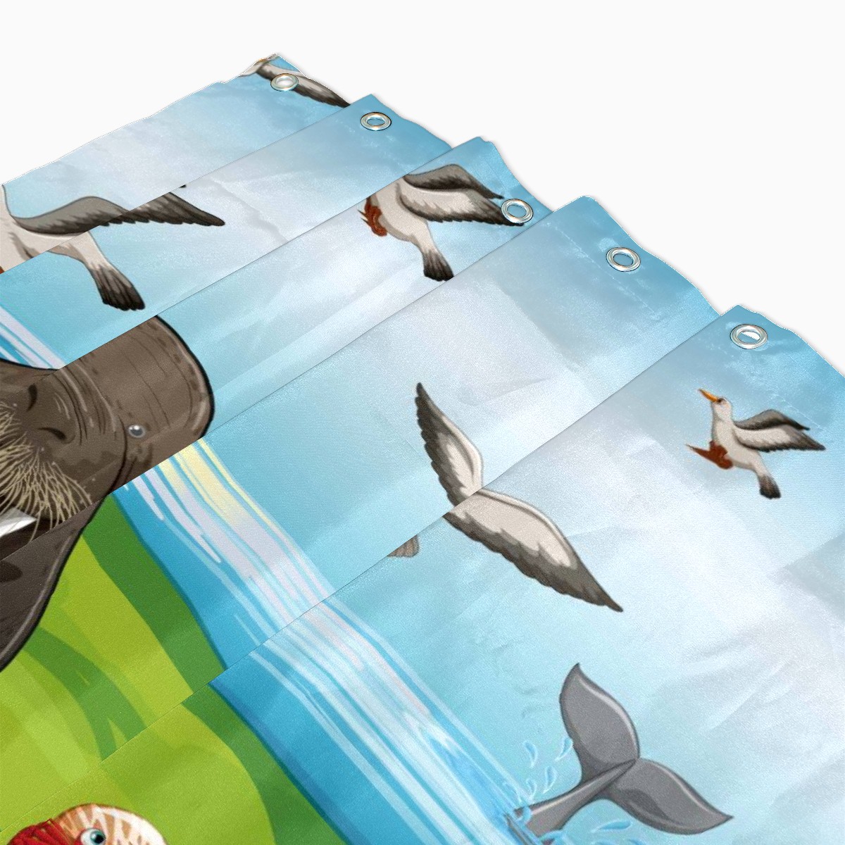 Custom Walrus Crab Ocean Animal Seagull Sea Side Bath Curtain 100% Polyester Hotel Home Washable Shower Curtain 60"x72in